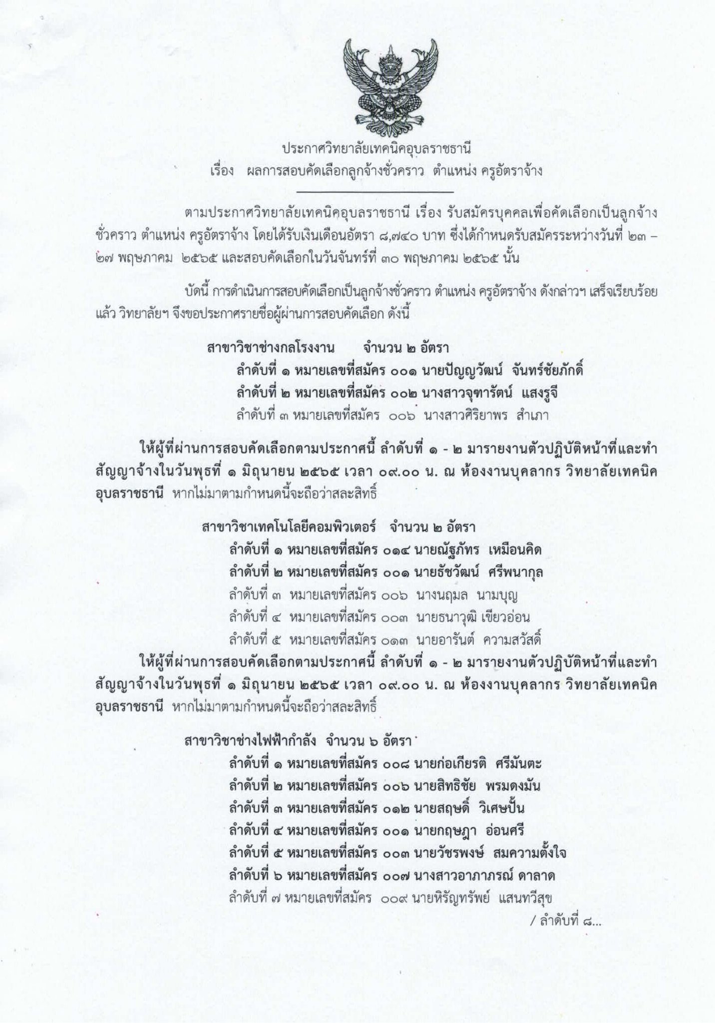 ประกาศรายชื่อผู้ที่ผ่านการสอบคัดเลือก
