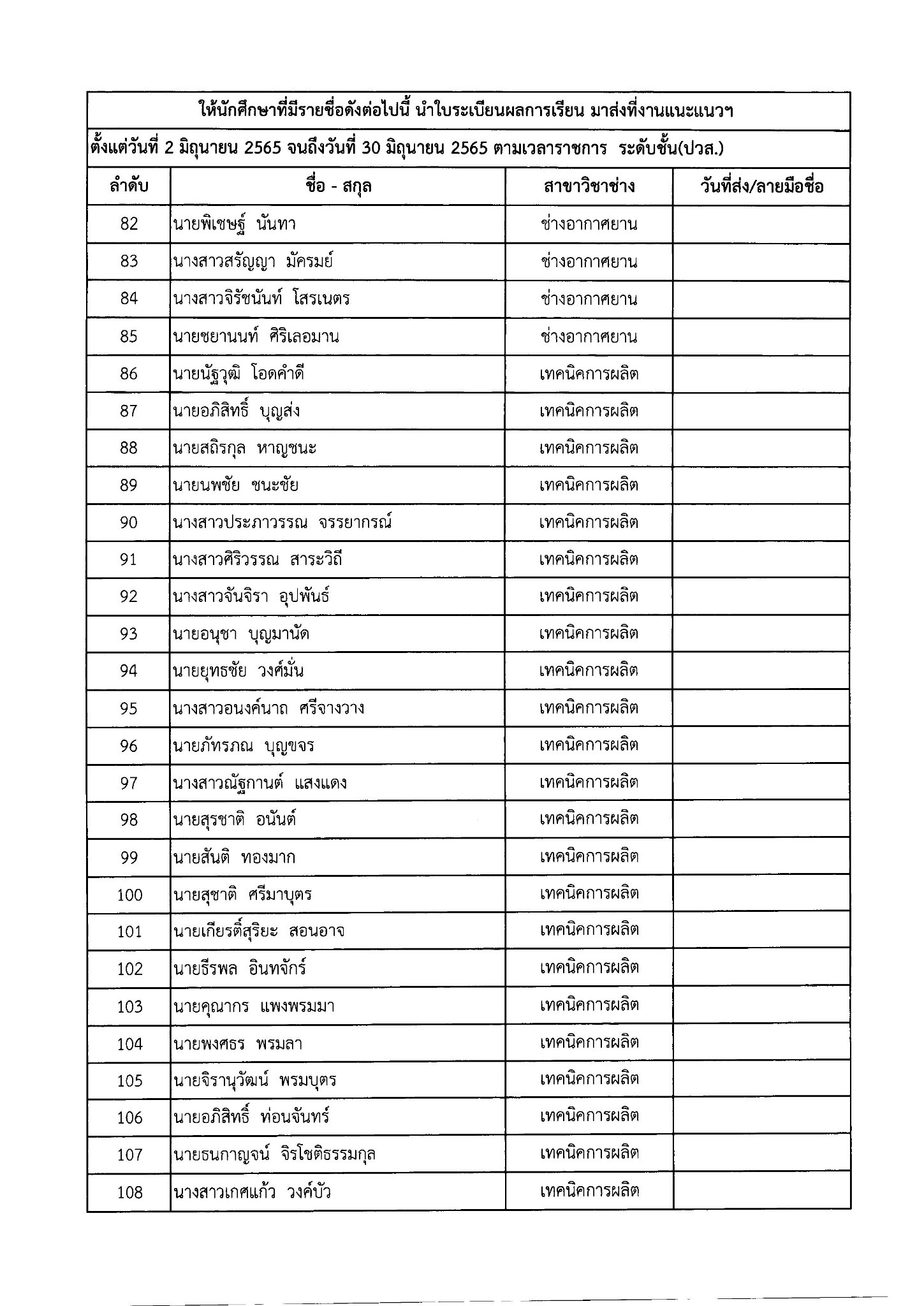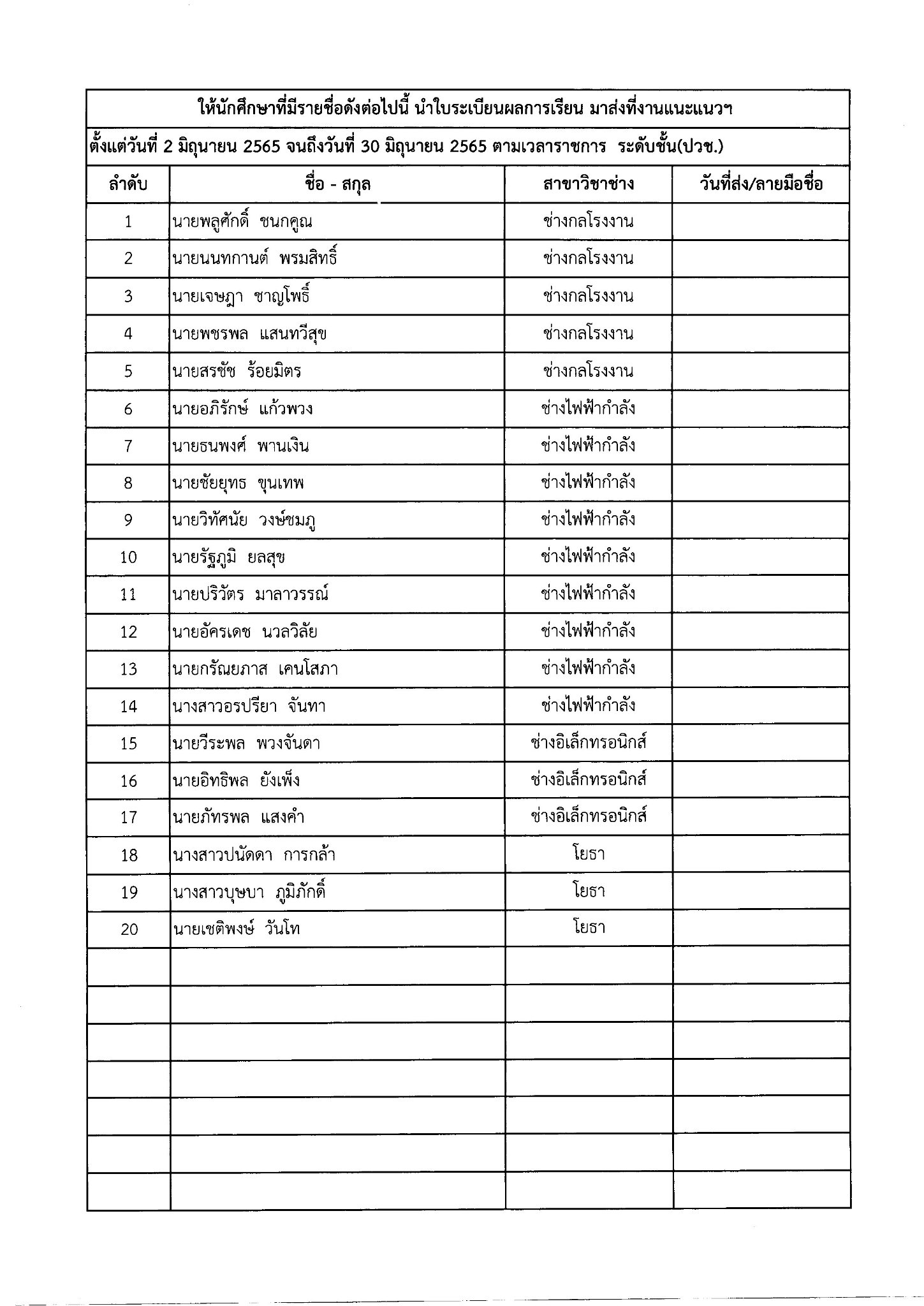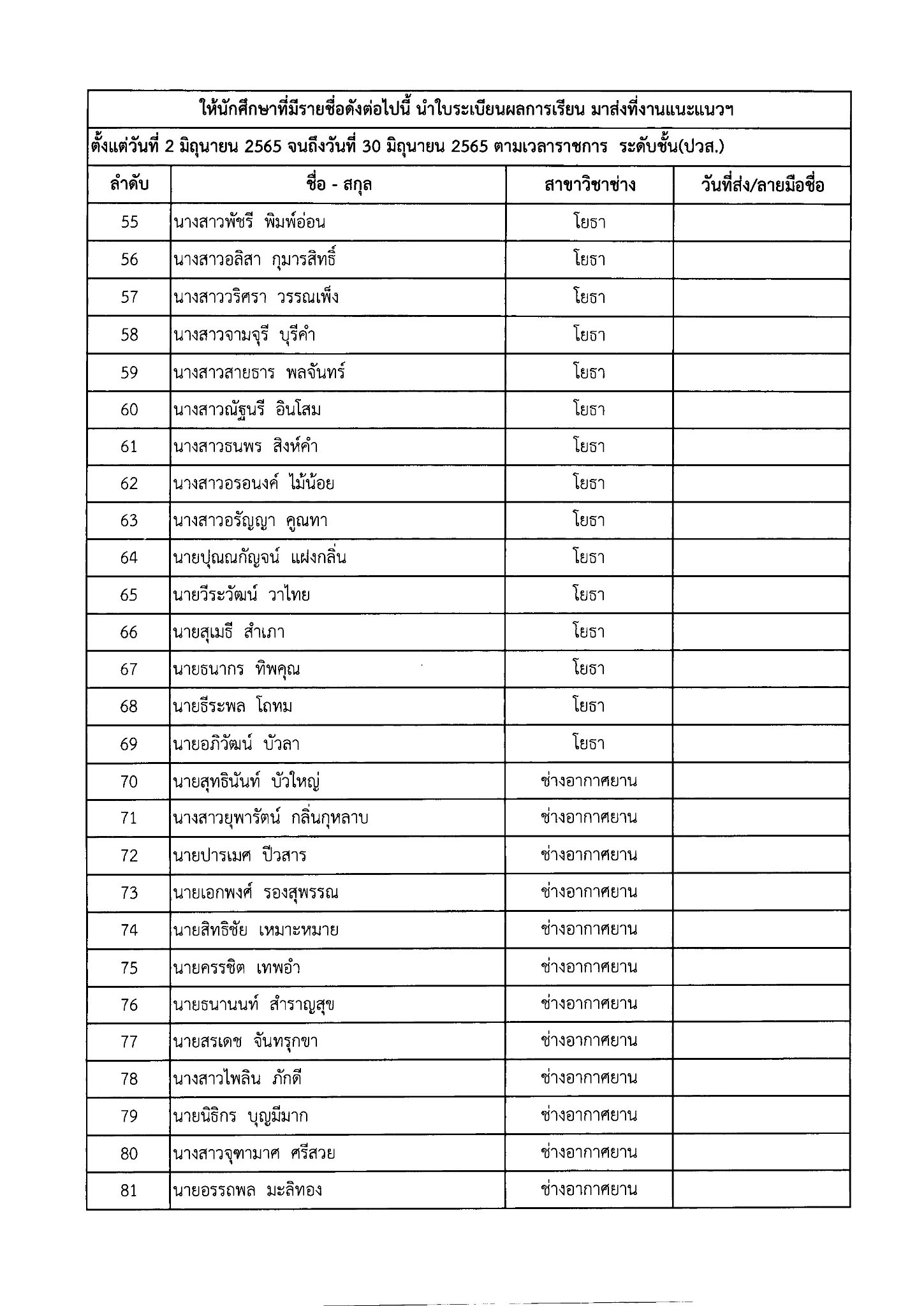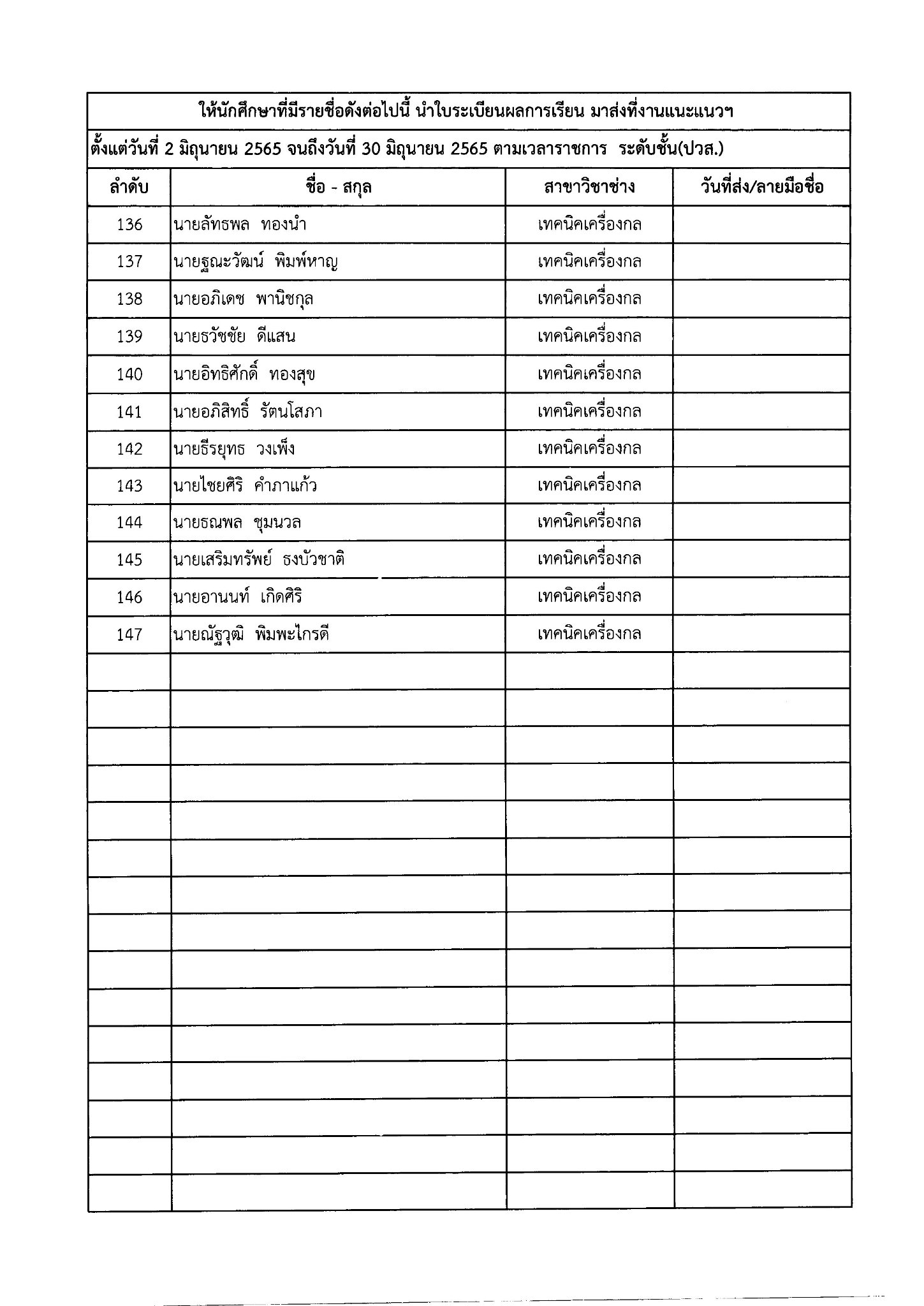ให้นักเรียน – นักศึกษา ที่มีรายชื่อดังต่อไปนี้ นำใบระเบียนผลการเรียน มาส่งที่งานแนะแนวฯ หรือสแกนระเบียนผลการเรียน แนบไฟล์ ส่งทาง