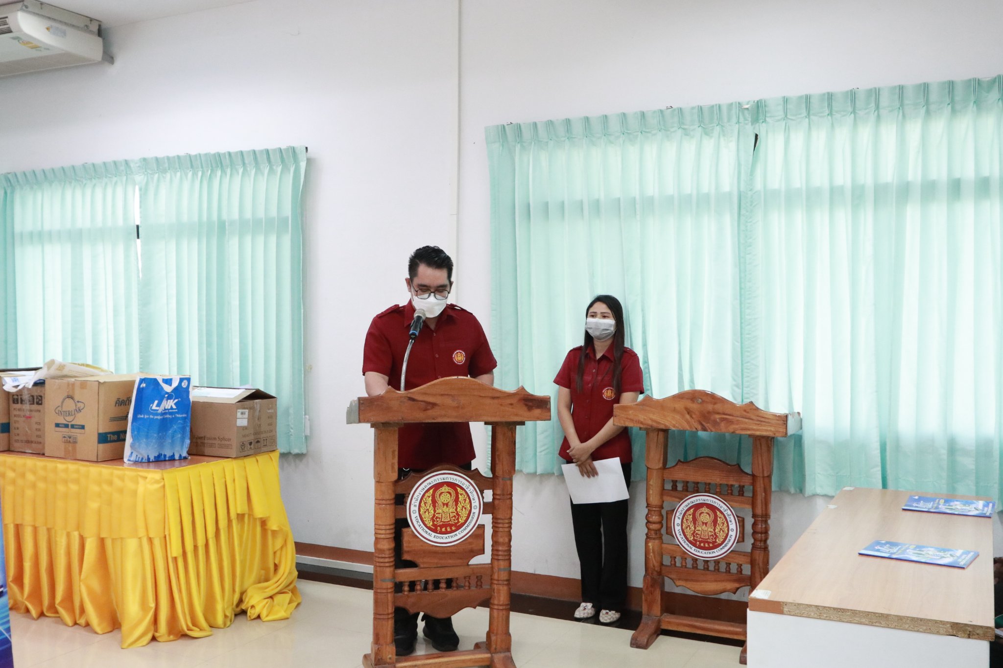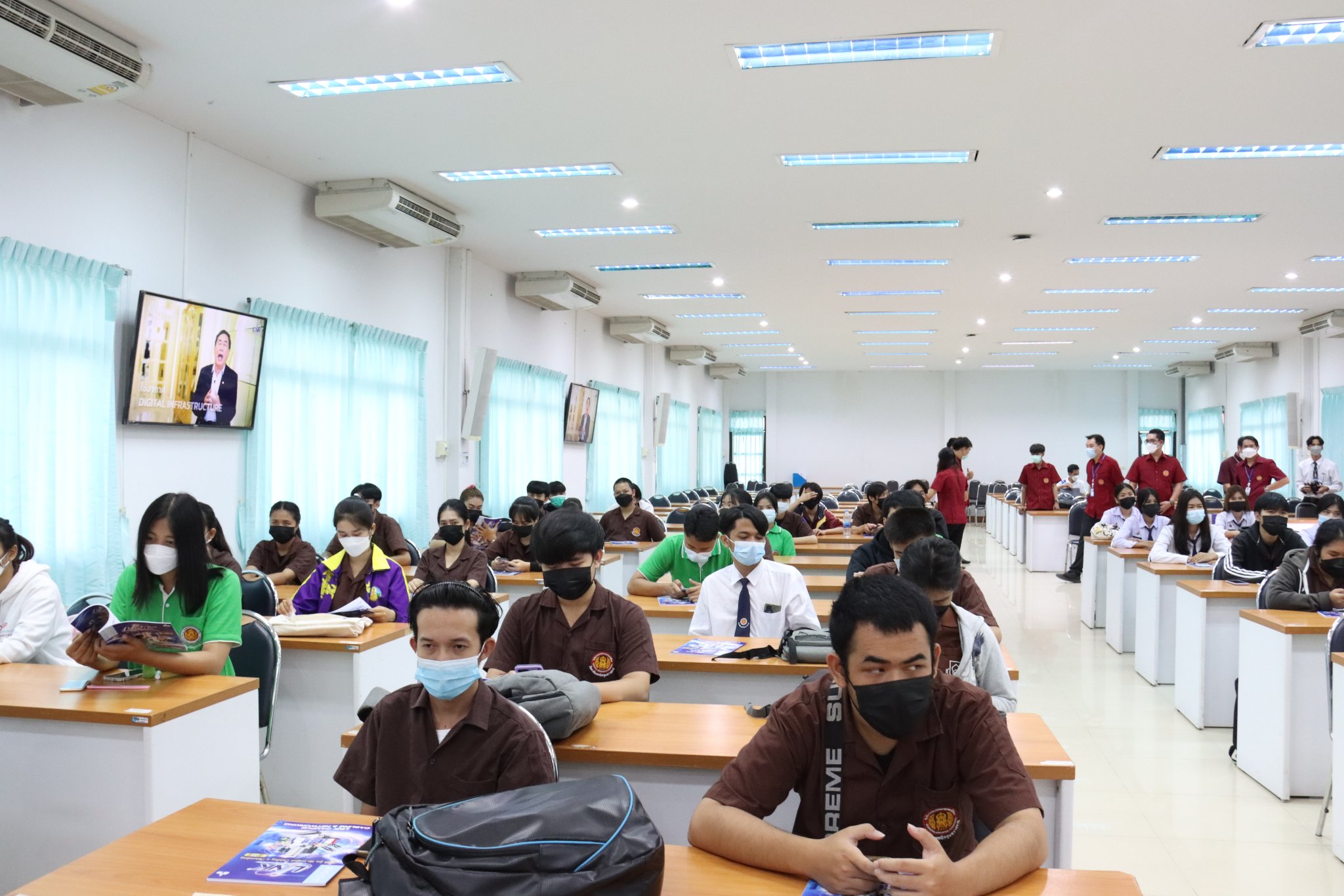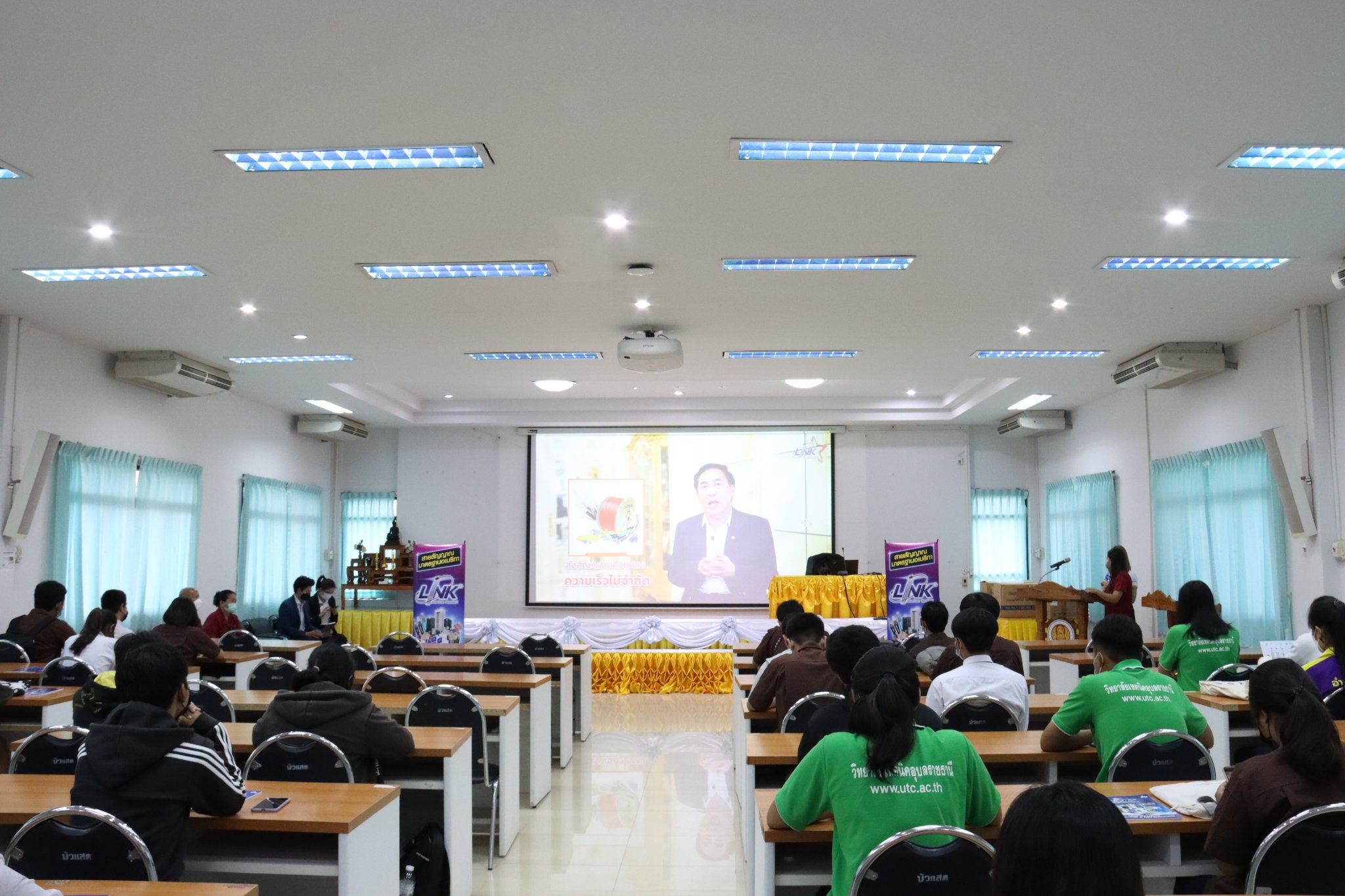 วันที่ ๘ มิถุนายน ๒๕๖๕ เวลา ๐๙.๐๐ น. นายธาตรี พิบูลมณฑา ผู้อำนวยการวิทยาลัยเทคนิคอุบลราชธานีมอบหมายให้ นายไวพจน์ ศรีธัญ รองผู้อำนวยการฝ่ายพัฒนากิจการนักเรียนนักศึกษา ให้เกียรติเป็นประธานในพิธีเปิดโครงการอบรม LINK Campus Cabling & Networking (LCCN) ณ ห้องประชุมบัวแสด วิทยาลัยเทคนิคอุบลราชธานี พร้อมด้วยนางราตรี สะดีวงศ์ รองผู้อำนวยการฝ่ายแผนงานและความร่วมมือ นายชวินทร์ พลหาญ หัวหน้าแผนกวิชาเทคโนโลยีคอมพิวเตอร์ คณะครูแผนกวิชาเทคโนโลยีคอมพิวเตอร์ และนักศึกษาระดับชั้น ปวส.๒ แผนกวิชาเทคโนโลยีคอมพิวเตอร์ เข้าร่วมกิจกรรมกันอย่างพร้อมเพรียง โดยมี นายวรุฒ บุญจันทร์ ผู้จัดการส่วนงานขายภาคตะวันออกเฉียงเหนือ บริษัท อินเตอร์ลิ้งค์ คอมมิวนิเคชั่น จำกัด (มหาชน) และ วิทยากร นางสาวกุลธิดา วงษ์ไพบูลย์ ได้ให้ความรู้เกี่ยวกับโครงการดังกล่าว ทั้งนี้เพื่อเสริมสร้างความรู้และความเข้าใจเกี่ยวกับระบบสายสัญญาณเครือข่ายพื้นฐาน ความสำคัญของระบบสายสัญญาณ และความเข้าใจพื้นฐานในระบบสื่อสารอินเตอร์เน็ต ซึ่งการจัดกิจกรรมในครั้งนี้เป็นไปตามมาตรการป้องกันการแพร่ระบาดของโรคติดเชื้อไวรัสโคโรนา ๒๐๑๙ (COVID-19) อย่างเคร่งครัด(ข่าว ปชส.วท.อบ.วันนี้)