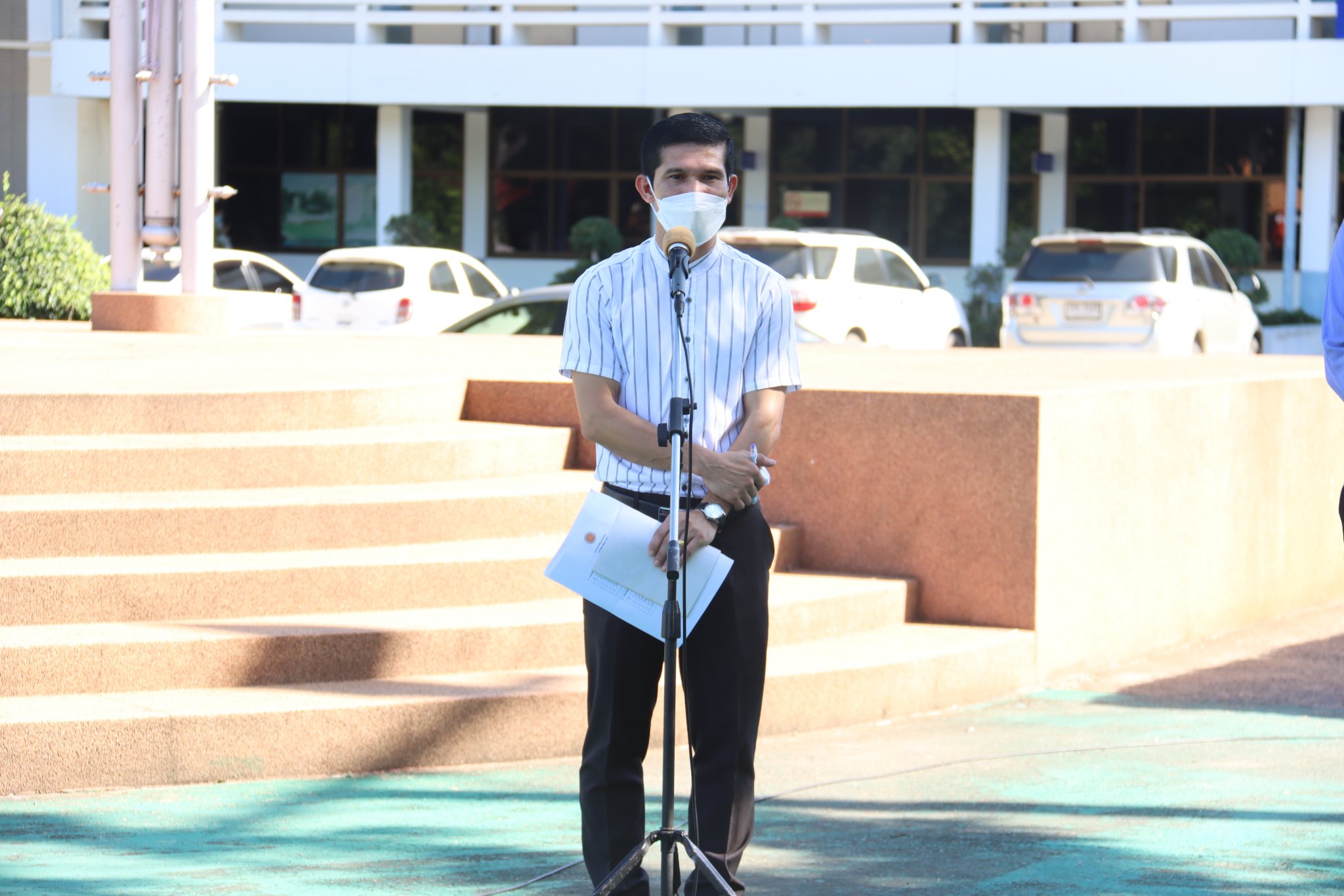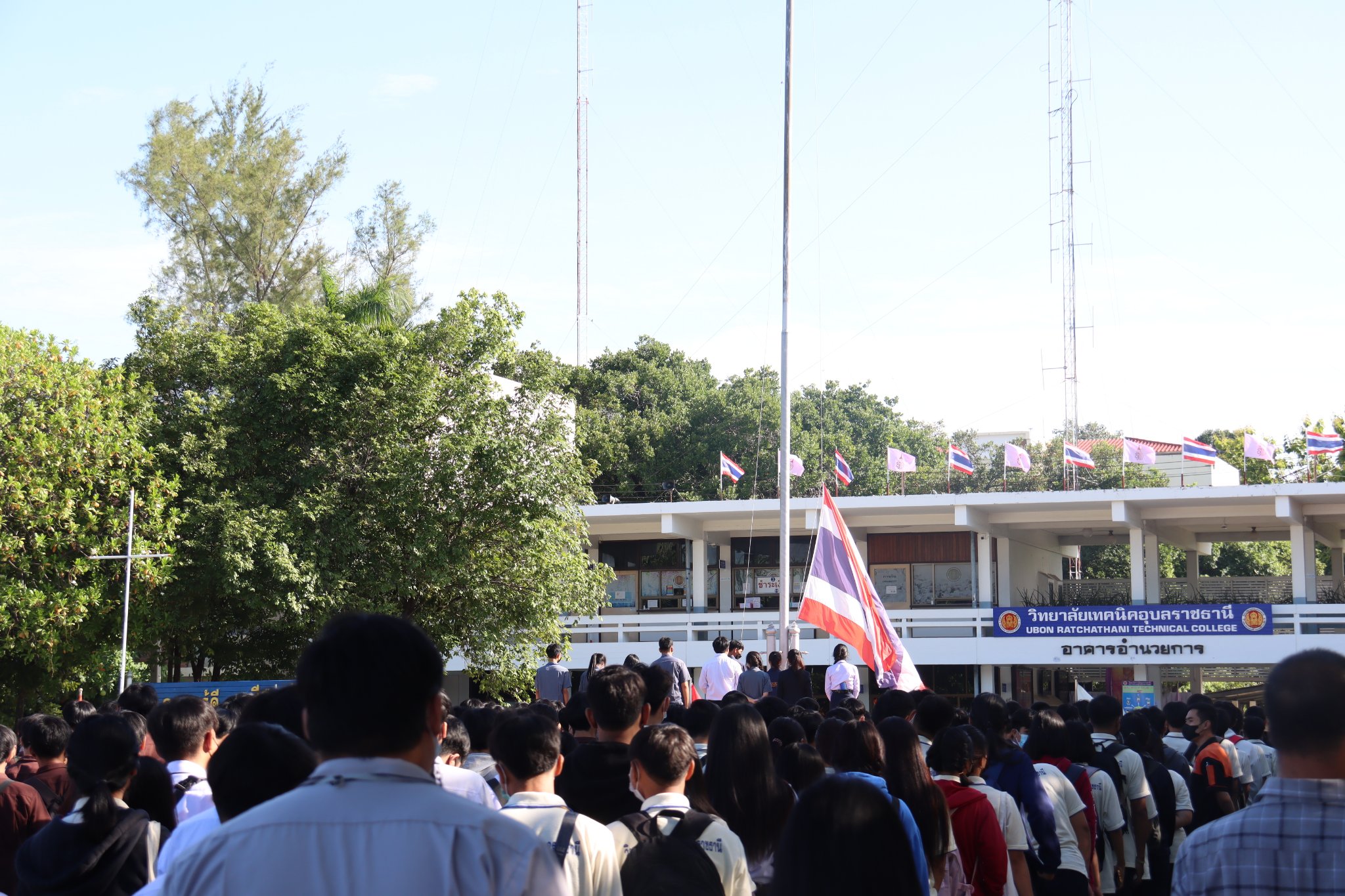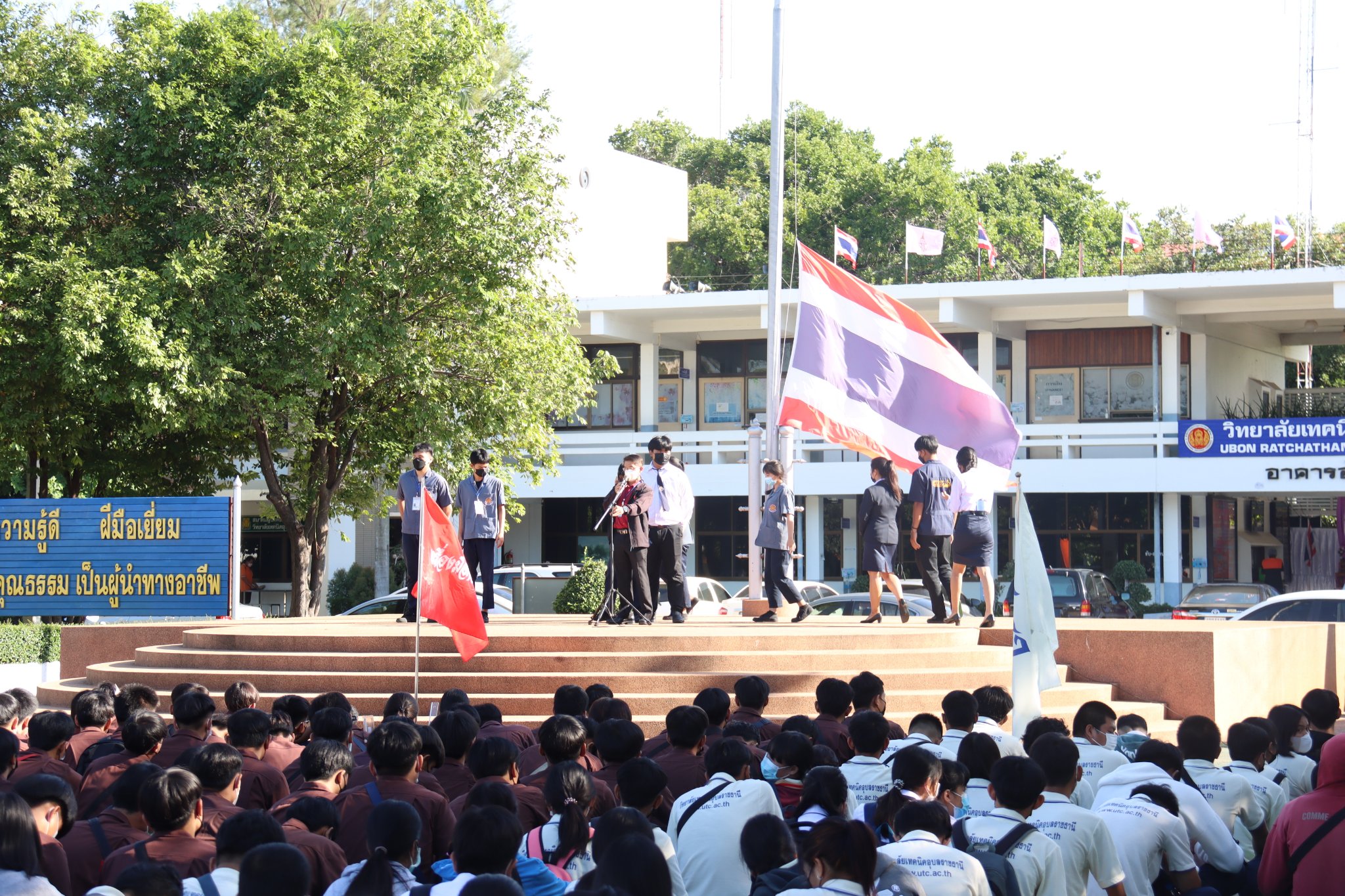 นายธาตรี พิบูลมณฑา ผู้อำนวยการวิทยาลัยเทคนิคอุบลราชธานี ให้เกียรติให้โอวาทแก่นักศึกษาระดับชั้น ปวส.๑ เนื่องในโอกาสเปิดภาคเรียนใหม่ (เมื่อวันที่ ๑๗ พฤษภาคม ๒๕๖๕) ที่ผ่านมา ซึ่งในวันนี้เป็นการจัดกิจกรรมหน้าเสาธงเป็นวันที่สี่ของภาคเรียนที่ ๑ ปีการศึกษา ๒๕๖๕ โดยมี นางราตรี สะดีวงศ์ รองผู้อำนวยการฝ่ายแผนงานและความร่วมมือ นายไวพจน์ ศรีธัญ รองผู้อำนวยการฝ่ายพัฒนากิจการนักเรียนนักศึกษา คณะครู บุคลากร และนักศึกษาระดับชั้น ปวส.๑ เข้าร่วมกิจกรรมกันอย่างพร้อมเพรียง ในการนี้ผู้อำนวยการวิทยาลัยเทคนิคอุบลราชธานี ได้ให้โอวาทเกี่ยวกับ การเช็กชื่อเข้าแถวหน้าเสาธงผ่านระบบดูแลช่วยเหลือนักเรียนนักศึกษา (Student Care) และการดูแลรักษาความสะอาดภายในสถานศึกษา ซึ่งการจัดกิจกรรมในครั้งนี้เป็นไปตามมาตรการป้องกันการแพร่ระบาดของโรคติดเชื้อไวรัสโคโรนา ๒๐๑๙ (COVID-19) อย่างเคร่งครัด