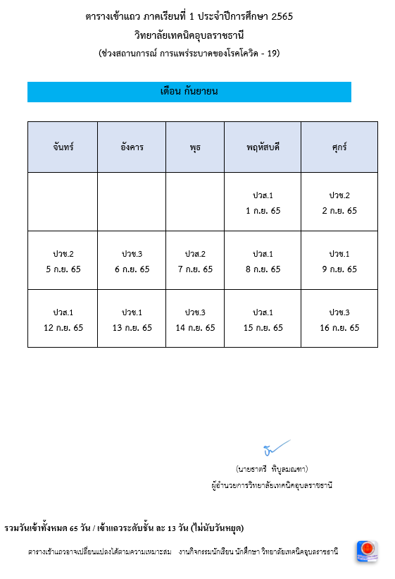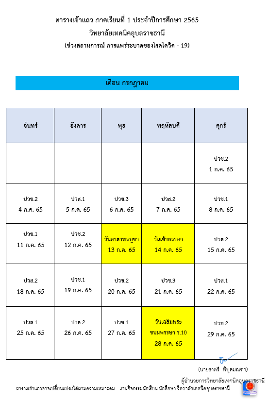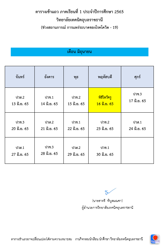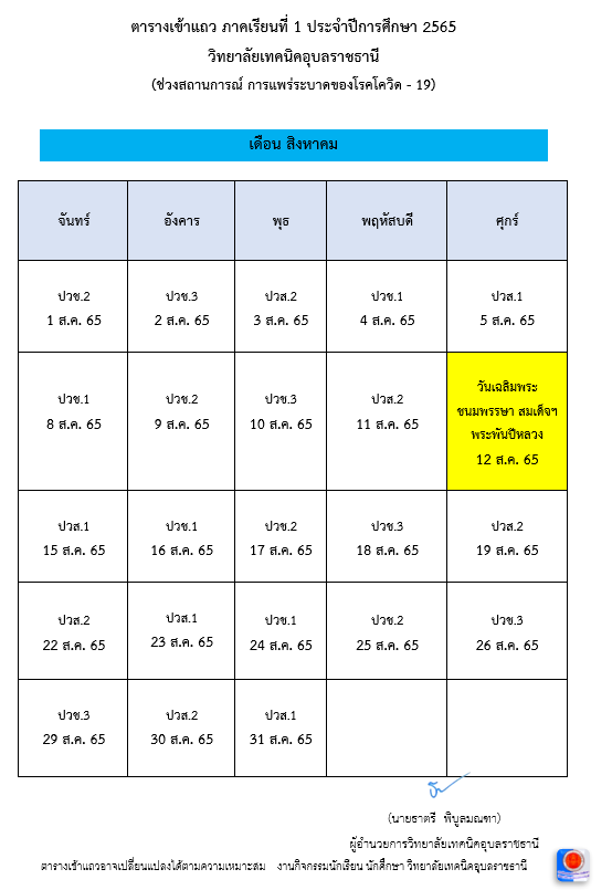 แจ้งเปลี่ยนแปลงตารางเข้าแถว