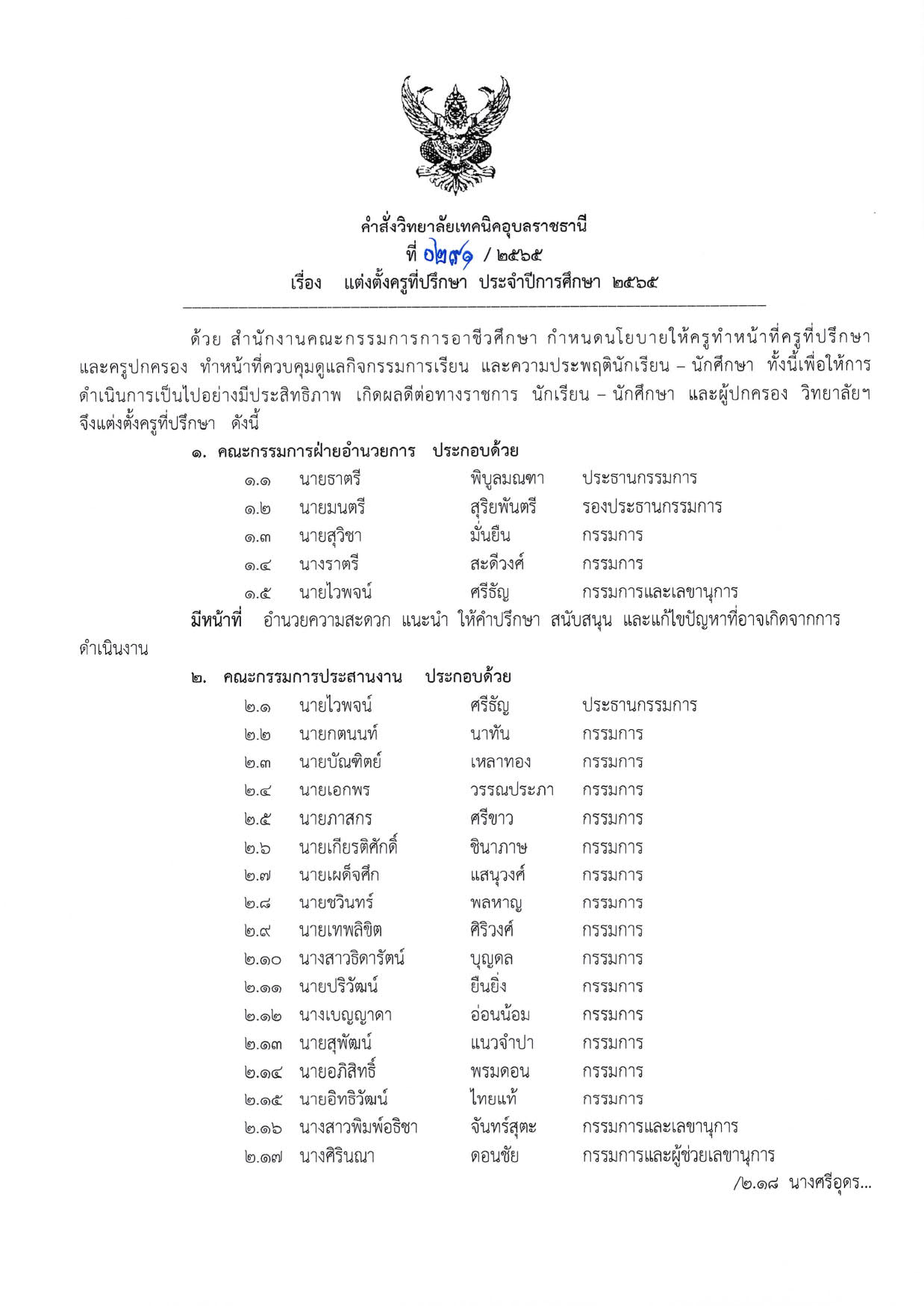 แต่งตั้งครูที่ปรึกษา ประจำปีการศึกษา 2565