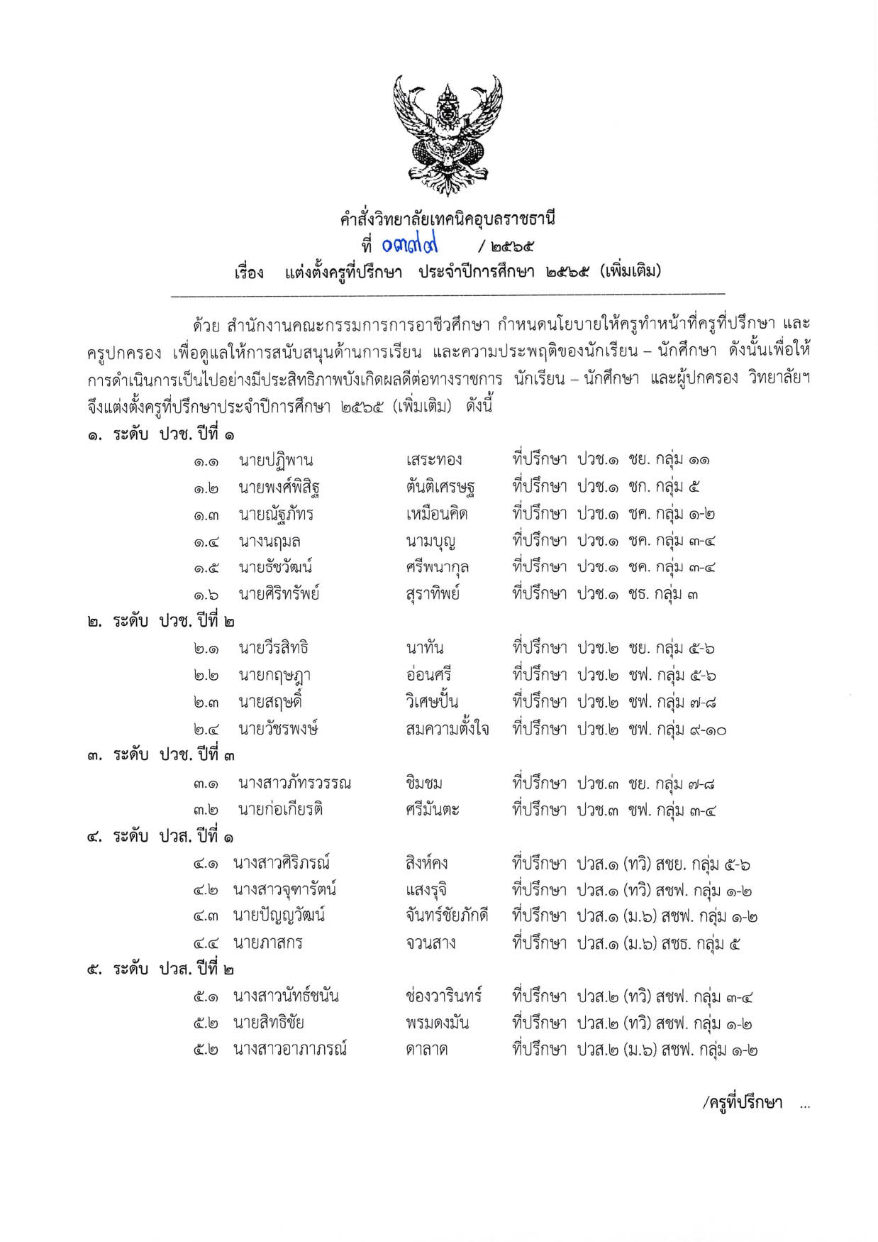 แต่งตั้งครูที่ปรึกษา ประจำปีการศึกษา 2565 (เพิ่มเติม)