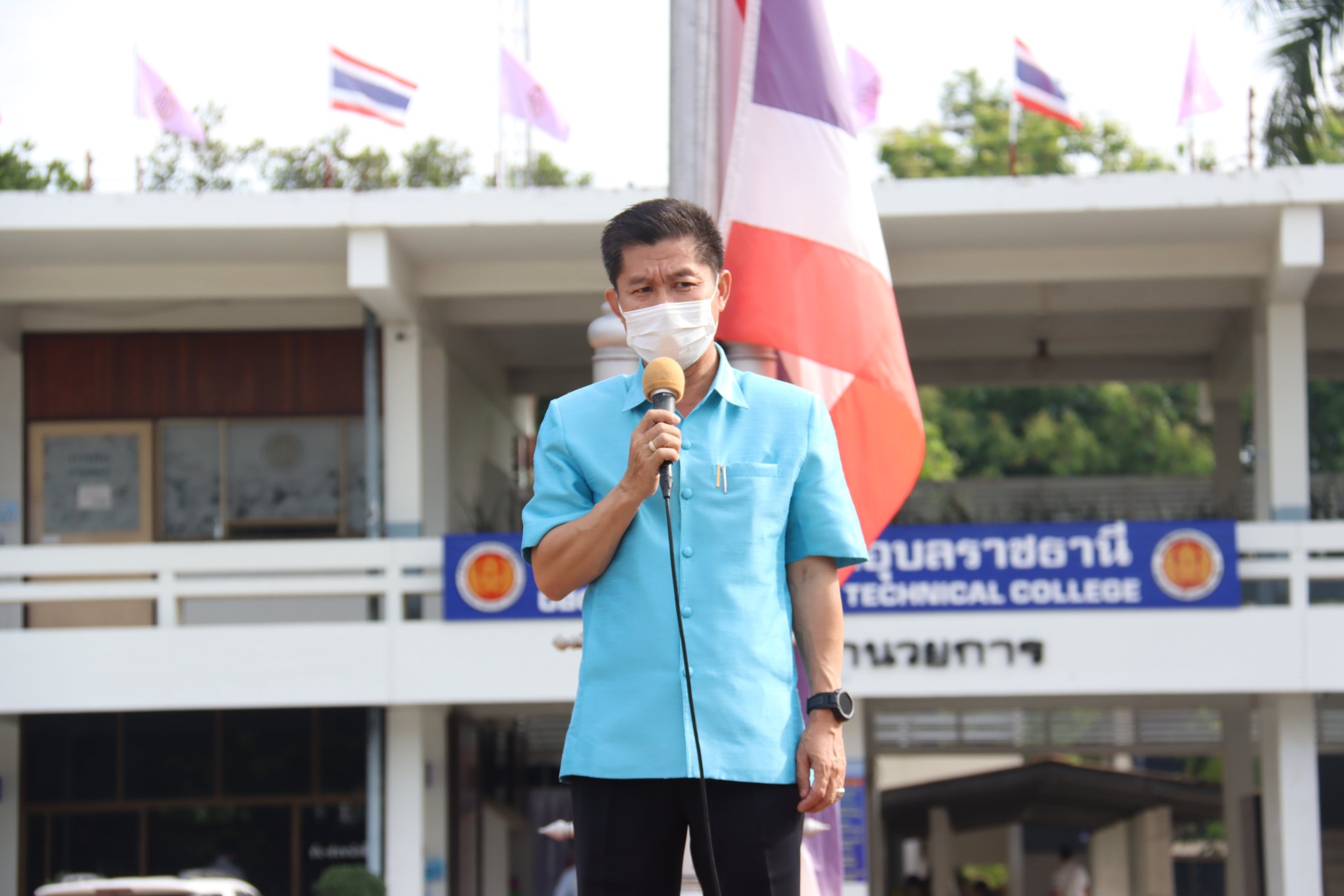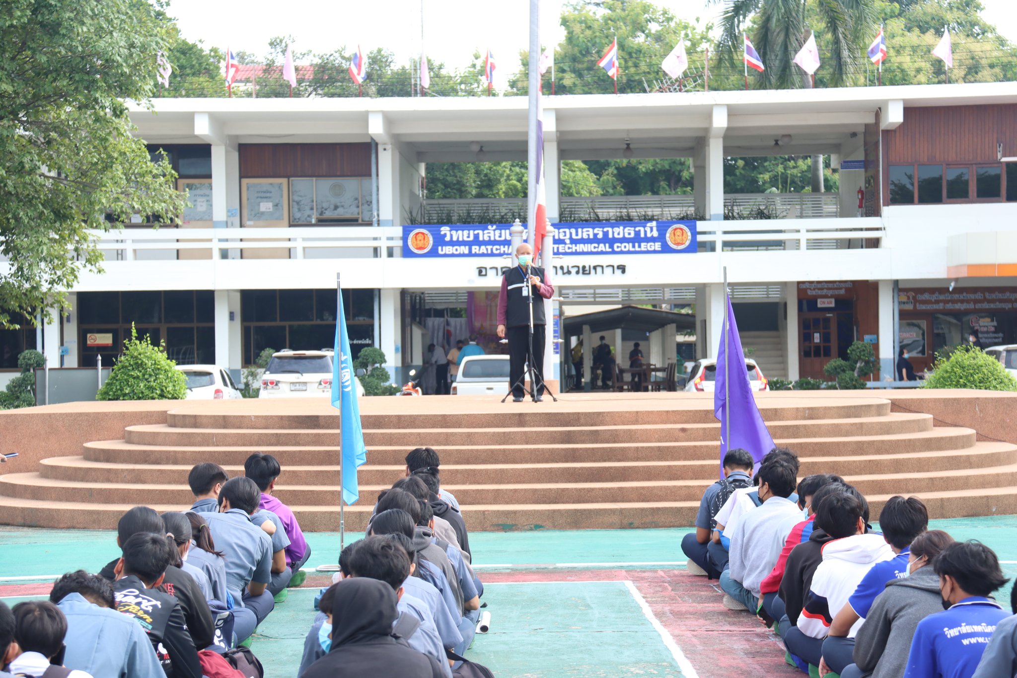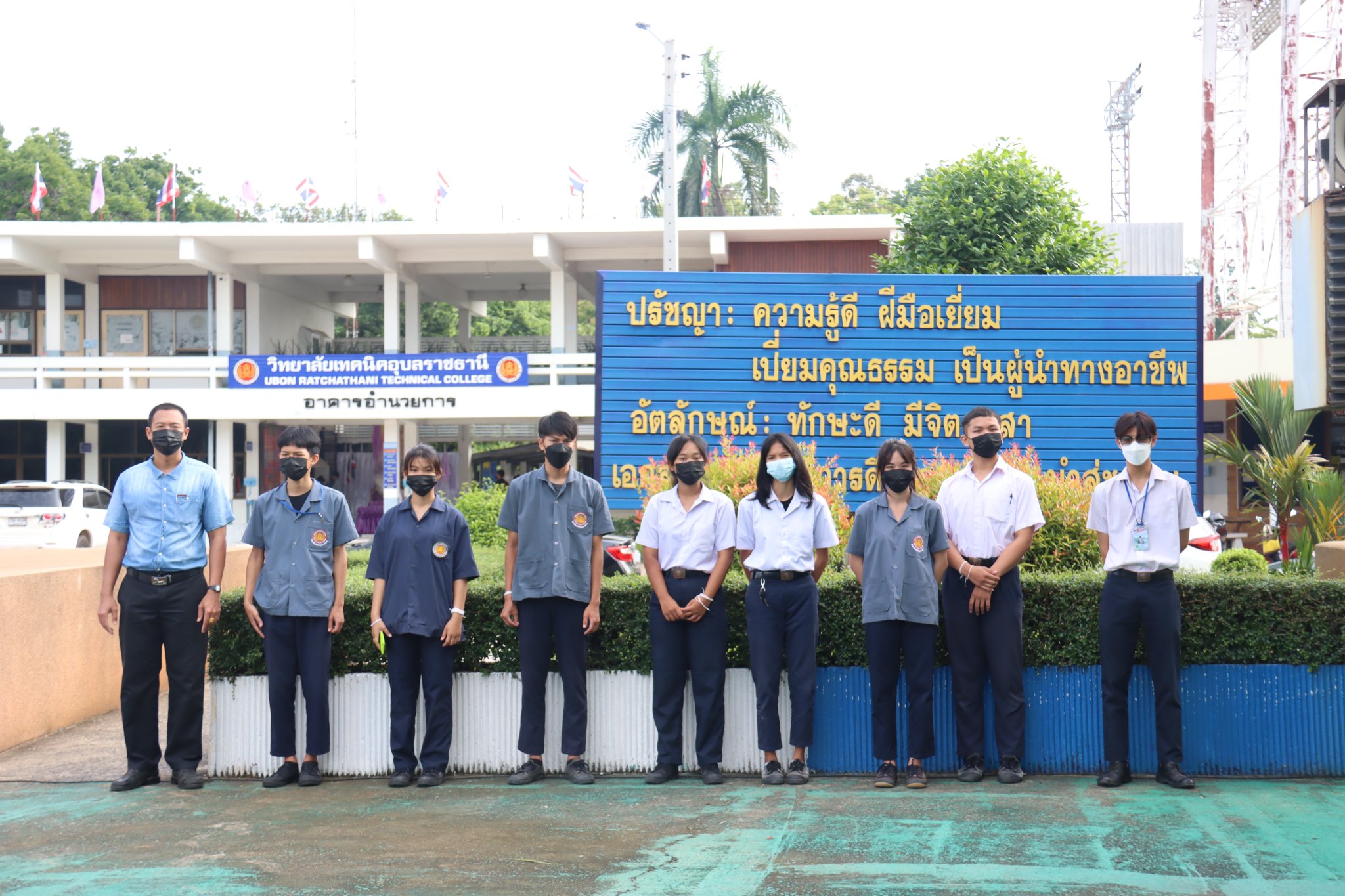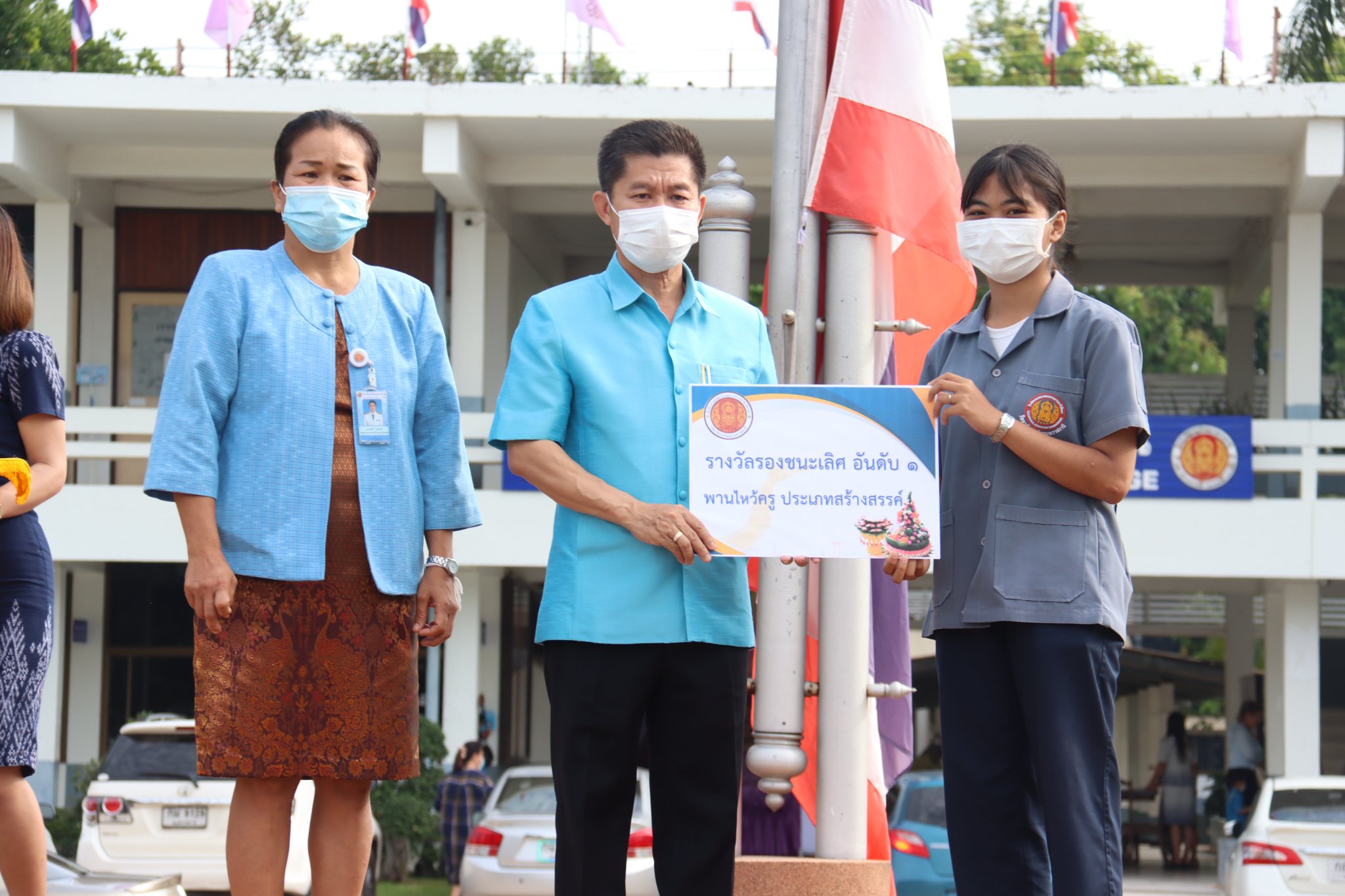 วันที่ ๑๗ มิถุนายน ๒๕๖๕ เวลา ๐๗.๓๐ น. นายธาตรี พิบูลมณฑา ผู้อำนวยการวิทยาลัยเทคนิคอุบลราชธานีให้เกียรติเป็นประธานในพิธีมอบรางวัลให้แก่ตัวแทนนักเรียน นักศึกษาที่ได้รับรางวัลจากการประกวดพานไหว้ครู เนื่องในวันไหว้ครู ประจำปีการศึกษา ๒๕๖๕ ที่จัดขึ้นเมื่อวันที่ ๑๖ มิถุนายน ๒๕๖๕ ที่ผ่านมา พร้อมทั้งให้โอวาทแก่นักเรียนนักศึกษา โดยการประกวดพานไหว้ครูในปีนี้แบ่งออกเป็น ๒ ประเภท ได้แก่ ประเภทสวยงาม และประเภทสร้างสรรค์ มีผลการประกวดดังนี้ประเภทสวยงาม รางวัลชนะเลิศ เป็นของนักศึกษาระดับชั้น ปวส.๒ แผนกวิชาช่างอากาศยาน รางวัลรองชนะเลิศ อันดับ ๑ เป็นของนักศึกษาระดับชั้น ปวส.๒ แผนกวิชาโยธา รางวัลรองชนะเลิศ อันดับ ๒ เป็นของนักศึกษาระดับชั้น ปวส.๑ แผนกวิชาโยธา และประเภทสร้างสรรค์ รางวัลชนะเลิศ เป็นของนักศึกษาระดับชั้น ปวส.๑ แผนกวิชาช่างอากาศยานรางวัลรองชนะเลิศ อันดับ ๑ เป็นของนักเรียนระดับชั้น ปวช.๒ แผนกวิชาอิเล็กทรอนิกส์ และรางวัลรองชนะเลิศ อันดับ ๒ เป็นของนักศึกษาระดับชั้น ปวส.๒ แผนกวิชาเทคโนโลยีสารสนเทศ ทั้งนี้มีคณะผู้บริหารครู บุคลากร นักเรียน นักศึกษา ร่วมแสดงความยินดีกับผู้ที่ได้รับรางวัลดังกล่าว ณ บริเวณหน้าเสาธง วิทยาลัยเทคนิคอุบลราชธานี