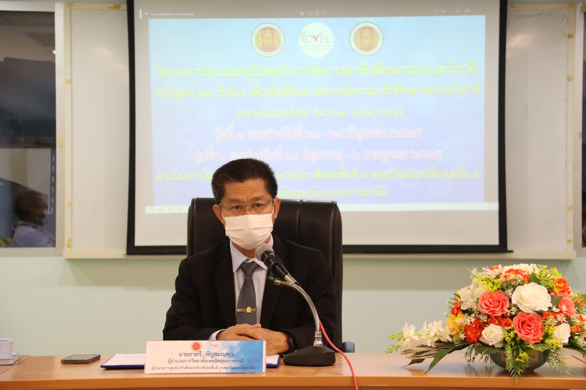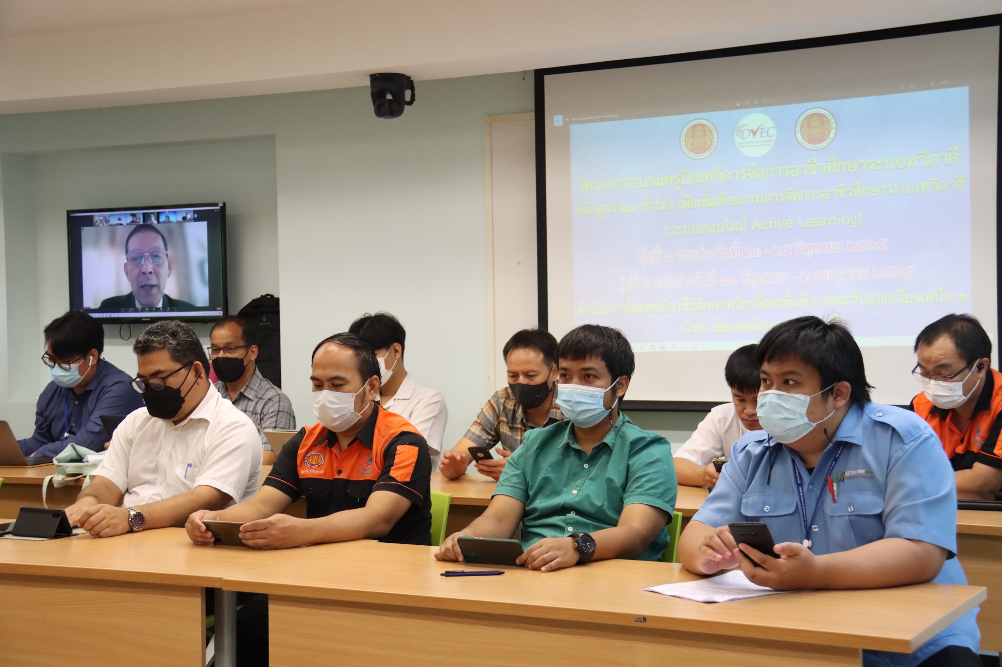 วันที่ ๒๓ มิถุนายน๒๕๖๕ เวลา ๐๘.๓๐ น. นายธาตรี พิบูลมณฑา ประธานกรรมการอาชีวศึกษาจังหวัดอุบลราชธานี/ผู้อำนวยการศูนย์อาชีวศึกษาทวิภาคีเขตพื้นที่ ภาคตะวันออกเฉียงเหนือ ๓ ให้เกียรติกล่าวรายงานโครงการอบรมครูนิเทศก์การจัดการอาชีวศึกษาระบบทวิภาคี หลักสูตร ๒๑ ชั่วโมง เพื่อเพิ่มศักยภาพการจัดการอาชีวศึกษาระบบทวิภาคี (ระบบออนไลน์ Active Learning) รุ่นที่ ๑ ระหว่างวันที่ ๒๓ – ๒๕ มิถุนายน ๒๕๖๕ และรุ่นที่ ๒ ระหว่างวันที่ ๓๐ มิถุนายน – ๒ กรกฎาคม ๒๕๖๕ ณ ห้อง Smart Classroom วิทยาลัยเทคนิคอุบลราชธานี ทั้งนี้ได้รับเกียรติจากนายสุรัตน์ จั่นแย้ม ที่ปรึกษาพิเศษสำนักงานคณะกรรมการการอาชีวศึกษา เป็นประธานในพิธีเปิดโครงการ โดยมีนายสุวิชา มั่นยืน รองผู้อำนวยการฝ่ายวิชาการ และคณะผู้บริหารสถานศึกษาในเขตพื้นที่ ๗ จังหวัด ให้เกียรติเข้าร่วมในพิธีเปิดโครงการ ซึ่งมีผู้เข้ารับการอบรม รุ่นที่ ๑ จำนวน ๒๗๖ คน และรุ่นที่ ๒ จำนวน ๒๗๖ คน โดยมีวัตถุประสงค์เพื่อให้ครูนิเทศก์มีความรู้ความเข้าใจเกี่ยวกับแนวคิด กระบวนการนิเทศก์ติดตามการฝึกอาชีพของผู้เรียนในสถานประกอบการ ได้อย่างมีประสิทธิภาพต่อไป