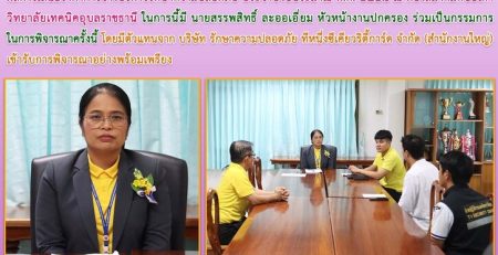 FacebookTwitterLineวันที่ 2 ตุลาคม 2568 เวลา 07.30 น. นายธาตรี พิบูลมณฑา ผู้อำนวยการวิทยาลัยเทคนิคอุบลราชธานี มอบหมายให้ นายไวพจน์ ศรีธัญ รองผู้อำนวยการฝ่ายพัฒนากิจการนักเรียน (เพิ่มเติม…)