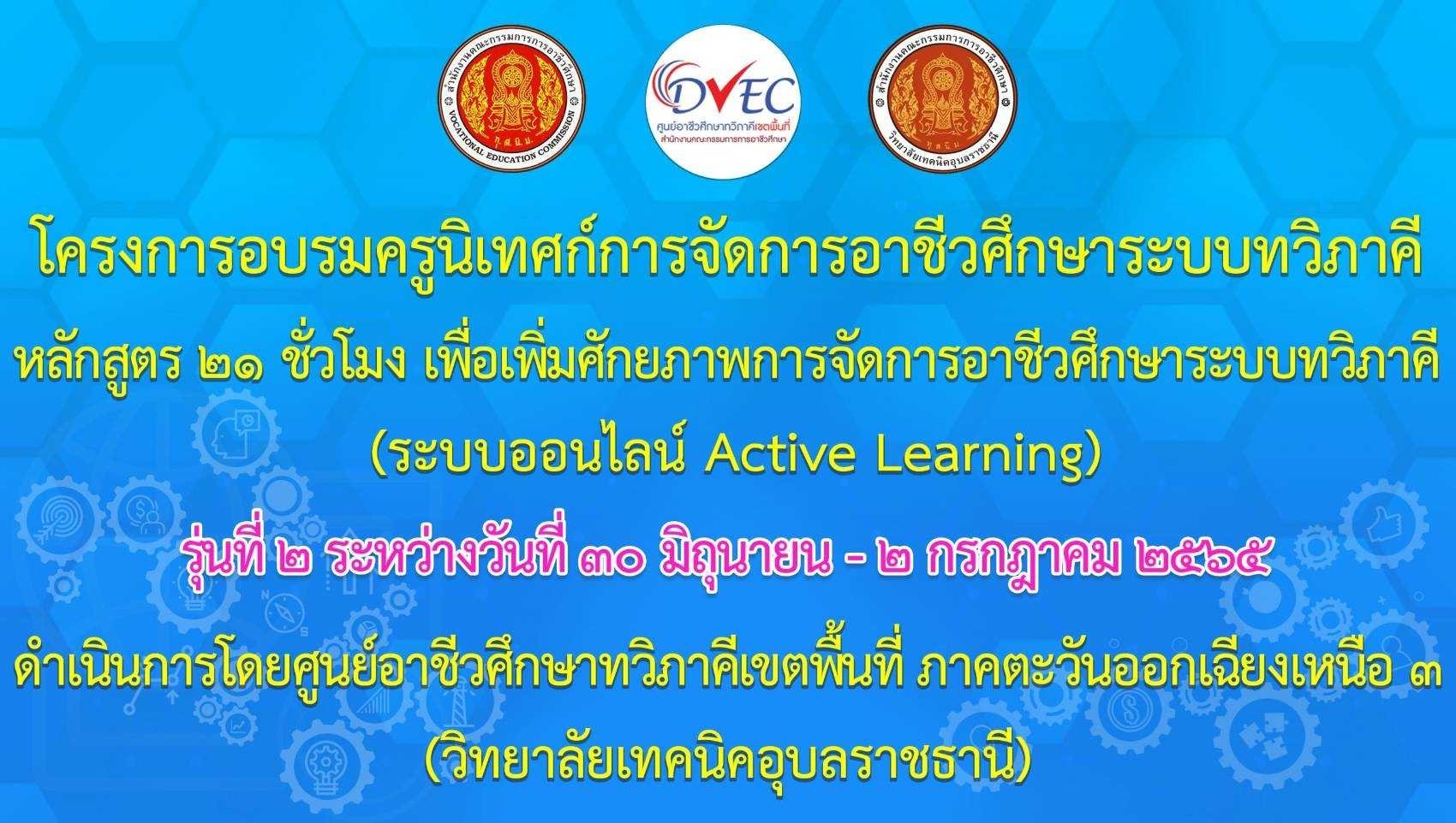 ผู้อำนวยการวิทยาลัยเทคนิคอุบลราชธานี/ผู้อำนวยการศูนย์อาชีวศึกษาทวิภาคีเขตพื้นที่ ภาคตะวันออกเฉียงเหนือ ๓ มอบหมายให้ นายสุวิชา มั่นยืน รองผู้อำนวยการฝ่ายวิชาการ ให้เกียรติเข้าร่วมโครงการอบรมครูนิเทศก์การจัดการอาชีวศึกษาระบบทวิภาคี หลักสูตร ๒๑ ชั่วโมง เพื่อเพิ่มศักยภาพการจัดการอาชีวศึกษาระบบทวิภาคี (ระบบออนไลน์ Active Learning) รุ่นที่ ๒ ระหว่างวันที่ ๓๐ มิถุนายน – ๒ กรกฎาคม ๒๕๖๕ จำนวน ๒๗๘ คน ณ ห้องศูนย์พัฒนาสื่อดิจิทัล : DMDC วิทยาลัยเทคนิคอุบลราชธานี โดยได้รับเกียรติจากวิทยากร ประกอบด้วย นายสุรัตน์ จั่นแย้ม ที่ปรึกษาพิเศษสำนักงานคณะกรรมการการอาชีวศึกษา นายประทีป จุฬาเลิศ ผู้อำนวยการวิทยาลัยเทคนิคบ้านค่าย นางสาวเบญจมาศ รัตนโนภาส รองผู้อำนวยการวิทยาลัยการอาชีพวังไกลกังวล นายพลภัทร เลาหสูต รองผู้อำนวยการวิทยาลัยการอาชีพบางแก้วฟ้า (หลวงพ่อเปิ่นอุปถัมภ์) นายยศพนธ์ อินทร์จันทร์ ครูวิทยาลัยเทคนิคบ้านค่าย นายมงคล แก่กล้า ครูวิทยาลัยเทคนิคบ้านค่าย และนางสุภาพ เถื่อนเมือง ครูวิทยาลัยพณิชยการบางนา ทั้งนี้เพื่อให้ครูนิเทศก์มีความรู้ความเข้าใจเกี่ยวกับแนวคิดกระบวนการนิเทศติดตามการฝึกอาชีพของผู้เรียนในสถานประกอบการ ได้อย่างมีประสิทธิภาพต่อไป
