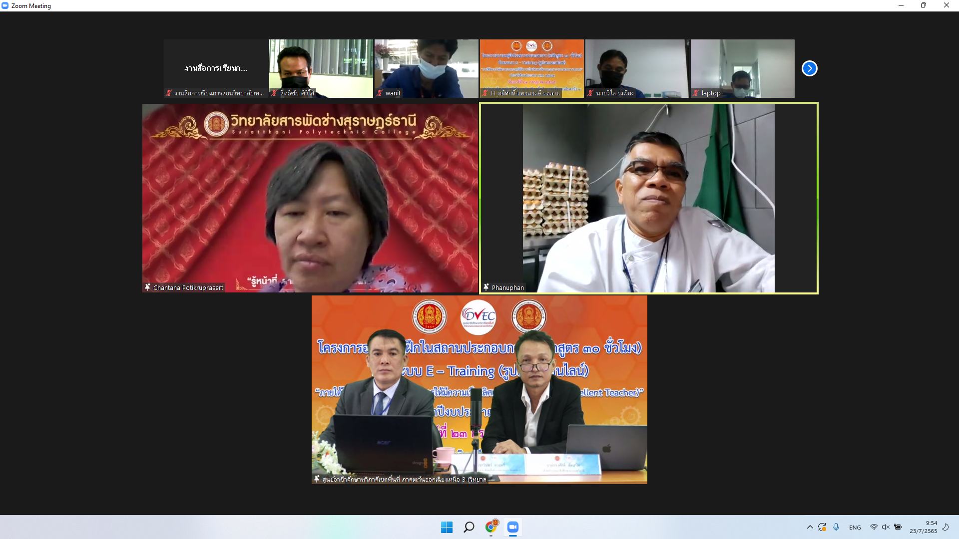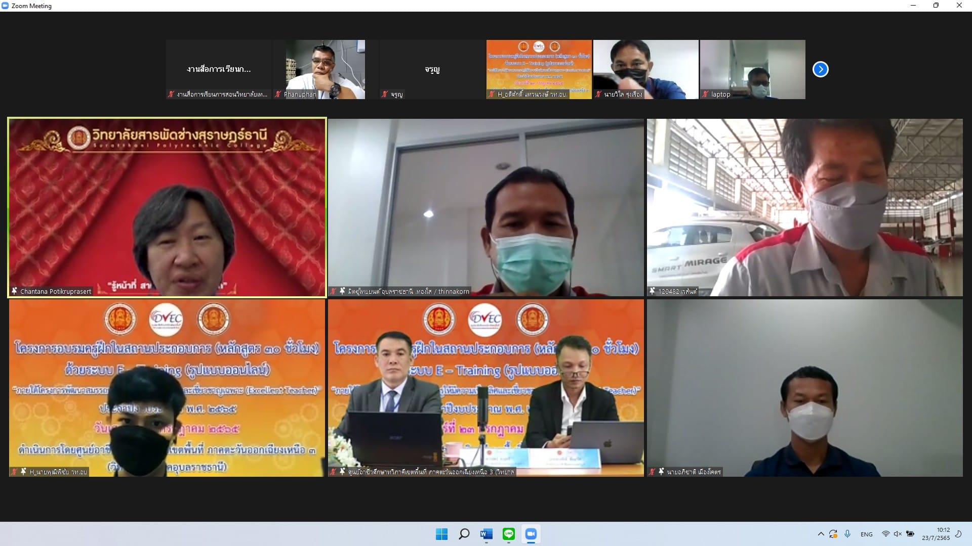 วันที่ ๒๓ กรกฎาคม ๒๕๖๕ เวลา ๐๘.๐๐ น. นายธาตรีพิบูลมณฑา ผู้อำนวยการวิทยาลัยเทคนิคอุบลราชธานีผู้อำนวยการศูนย์อาชีวศึกษาทวิภาคีเขตพื้นที่ ภาคตะวันออกเฉียงเหนือ ๓ ให้เกียรติเป็นประธานในพิธีเปิดโครงการอบรมครูฝึกในสถานประกอบการ (หลักสูตร ๓๐ ชั่วโมง) ด้วยระบบ E-Training (รูปแบบออนไลน์)ณ ห้องศูนย์พัฒนาสื่อดิจิทัล : DMDC วิทยาลัยเทคนิคอุบลราชธานี พร้อมด้วยนายสุวิชา มั่นยืน รองผู้อำนวยการฝ่ายวิชาการ นายชารินทร์ ลาฤทธิ์ หัวหน้าสำนักงานศูนย์อาชีวศึกษาทวิภาคีเขตพื้นที่ ภาคตะวันออกเฉียงเหนือ ๓ และนายทรงศักดิ์ สัตนาโค หัวหน้างานอาชีวศึกษาระบบทวิภาคี ซึ่งดำเนินการจัดการอบรมโดยศูนย์อาชีวศึกษาทวิภาคีเขตพื้นที่ ภาคตะวันออกเฉียงเหนือ ๓ (วิทยาลัยเทคนิคอุบลราชธานี) ทั้งนี้มีครูฝึกในสถานประกอบการ เข้ารับการอบรม จำนวน ๑๔๘ คน โดยมีวัตถุประสงค์เพื่อสร้างความเข้าใจเรื่องมาตรฐานครูฝึกในสถานประกอบการ การพัฒนาครูฝึกในสถานประกอบการให้สามารถวางแผนการจัดการ และกำหนดกิจกรรมการเรียนการสอนสำหรับนักศึกษาระบบทวิภาคีได้อย่างเหมาะสม