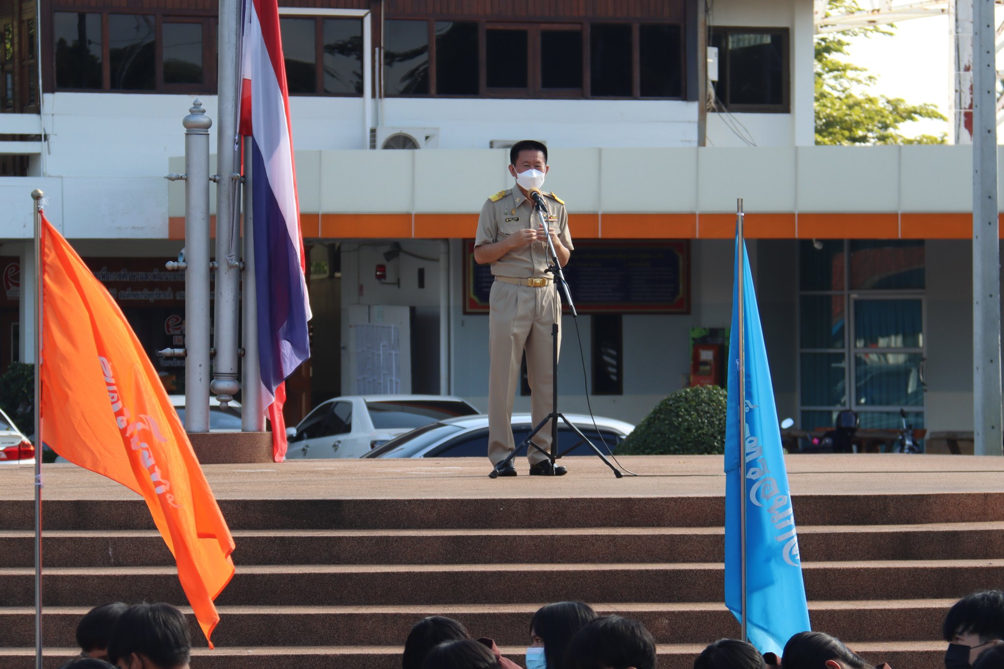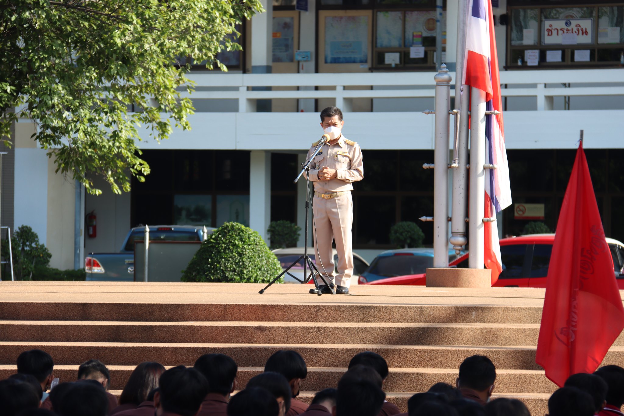 วันที่ ๒๕ กรกฎาคม ๒๕๖๕ เวลา ๐๗.๓๐ น. นายธาตรี พิบูลมณฑา ผู้อำนวยการวิทยาลัยเทคนิคอุบลราชธานี ให้เกียรติกล่าวให้โอวาทแก่นักศึกษาระดับชั้น ปวส.๑ ณ ลานกิจกรรมหน้าเสาธง โดยเน้นย้ำเรื่องความรับผิดชอบต่อหน้าที่ของการเป็นนักศึกษา การตั้งใจศึกษาเล่าเรียนเพื่ออนาคตที่ดีของตนเองและครอบครัว พร้อมทั้งถือโอกาสกล่าวแสดงความยินดีกับ นายมนตรี สุริยพันตรี รองผู้อำนวยการฝ่ายบริหารทรัพยากร ที่ได้รับการบรรจุและแต่งตั้งให้ดำรงตำแหน่งผู้อำนวยการสถานศึกษา ณ วิทยาลัยเกษตรและเทคโนโลยีศูนย์ศิลปาชีพบางไทร จังหวัดพระนครศรีอยุธยา ในการนี้ได้ถือโอกาสให้ นายมนตรี สุริยพันตรี รองผู้อำนวยการฝ่ายบริหารทรัพยากร กล่าวแสดงความรู้สึกและกล่าวอำลาแก่นักเรียน นักศึกษา เพื่อไปปฏิบัติหน้าที่ราชการแห่งใหม่ในวันที่ ๒๗ กรกฎาคม ๒๕๖๕ ทั้งนี้มีคณะผู้บริหาร ครู บุคลากร และนักศึกษา เข้าร่วมกิจกรรมหน้าเสาธงอย่างพร้อมเพรียง