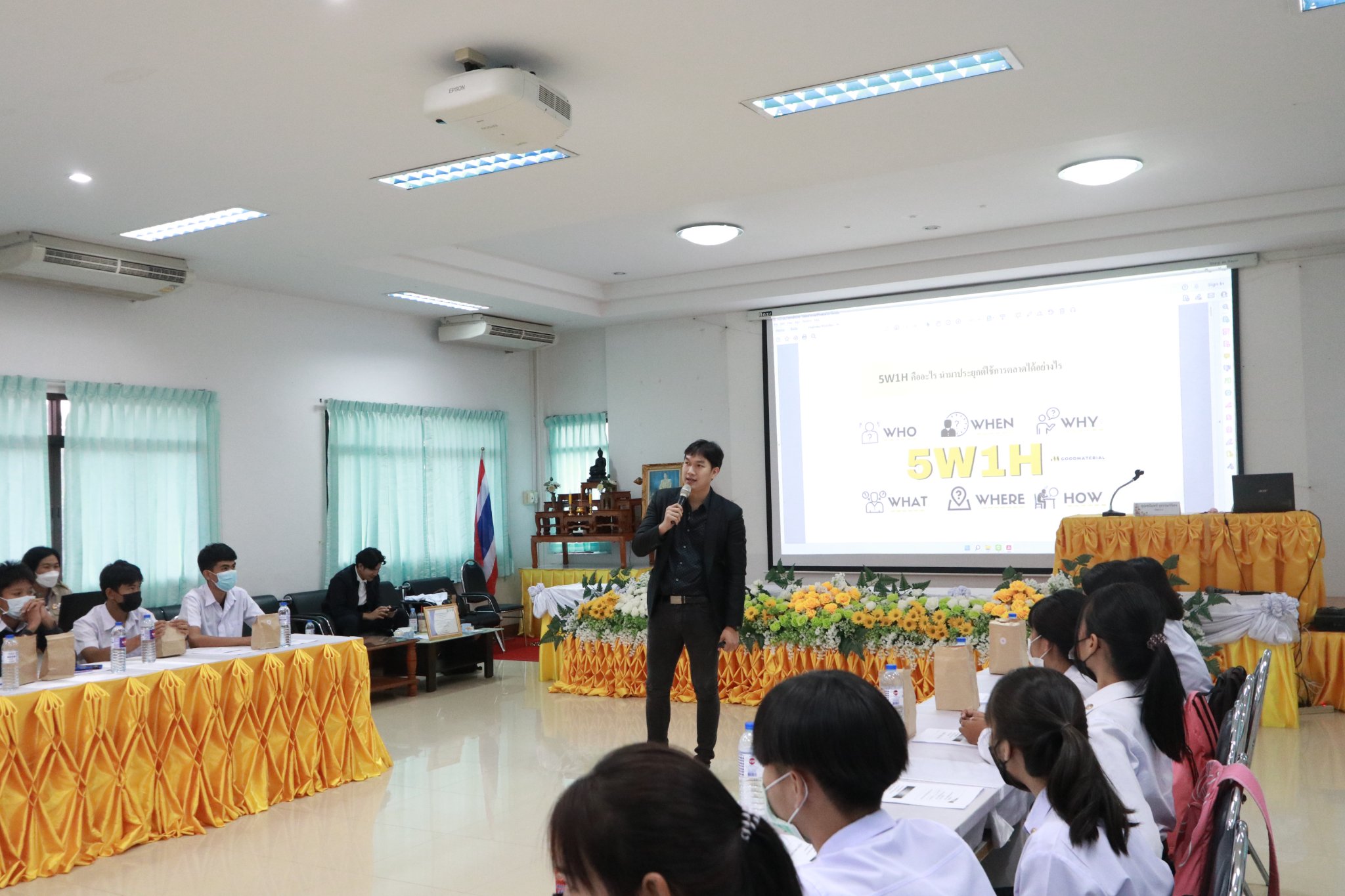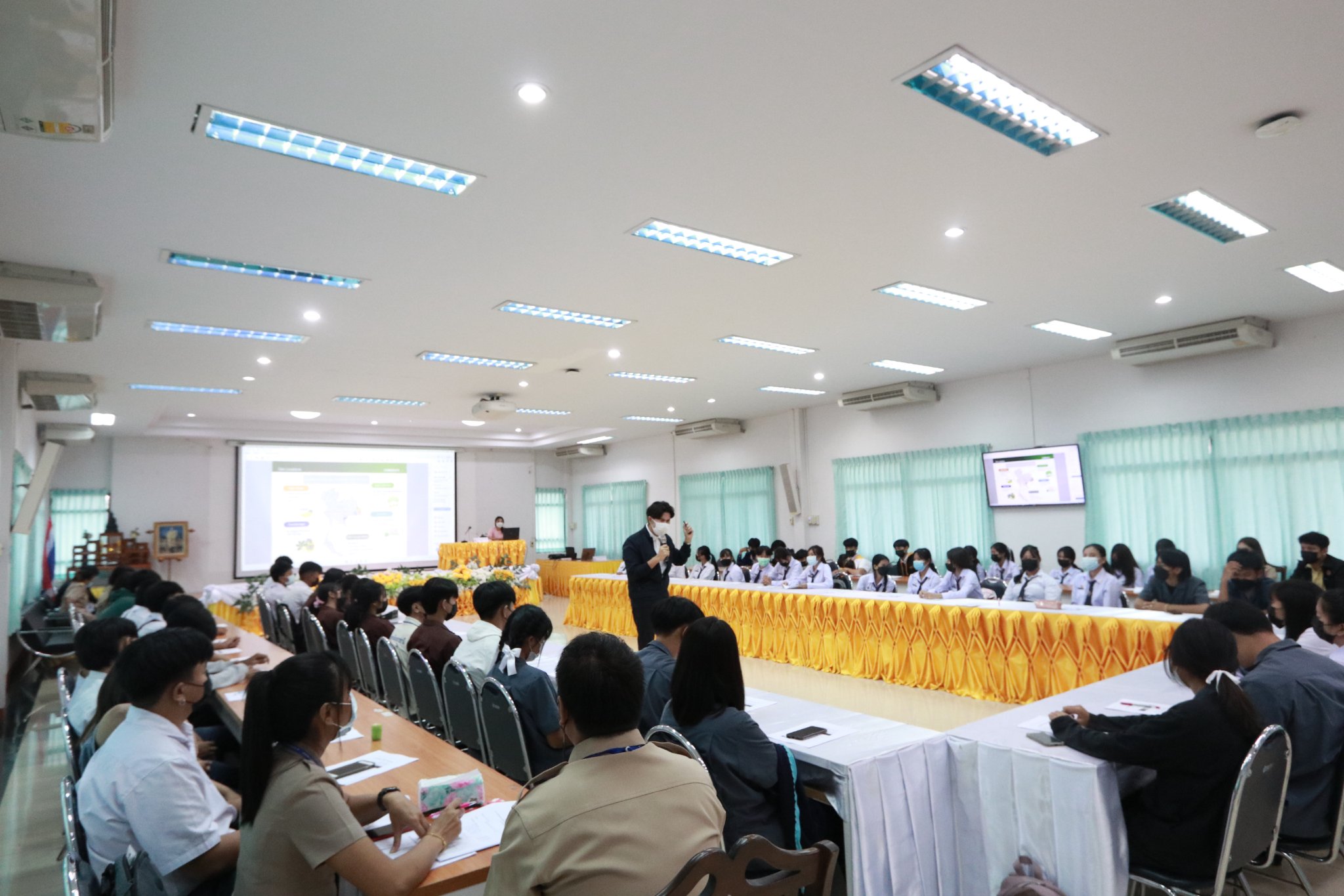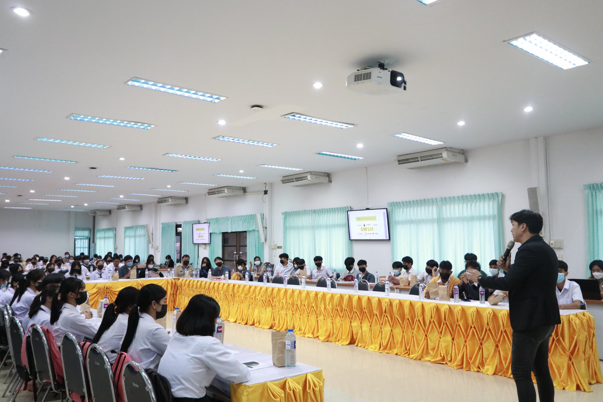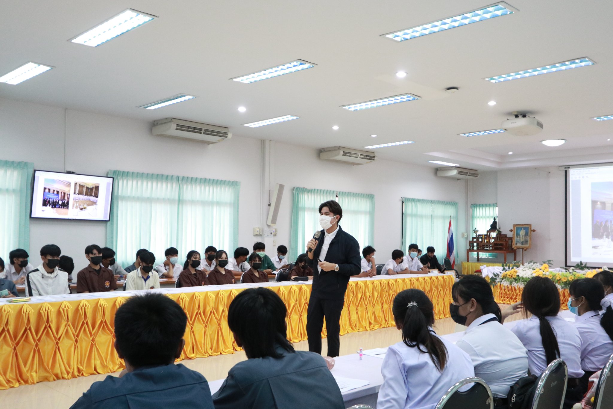 วันที่ ๒๕ กรกฎาคม ๒๕๖๕ เวลา ๐๘.๓๐ น. นายธาตรี พิบูลมณฑา ผู้อำนวยการวิทยาลัยเทคนิคอุบลราชธานี ได้มอบหมายให้ นางราตรีสะดีวงศ์ รองผู้อำนวยการฝ่ายแผนงานและความร่วมมือ เป็นประธานในพิธีเปิดโครงการส่งเสริมการประกอบอาชีพอิสระในกลุ่มผู้เรียนอาชีวศึกษา ระหว่างวันที่ ๒๕ – ๒๖ กรกฎาคม ๒๕๖๕ ณ ห้องประชุมบัวแสด ดำเนินการโดย งานส่งเสริมผลิตผล การค้า และประกอบธุรกิจ ฝ่ายแผนงานและความร่วมมือ โดยได้รับความอนุเคราะห์วิทยากรจากหน่วยงานภายนอก จำนวน ๓ ท่าน คือ ๑. นายวสวรรธน์ พวงพรศรี กรรมการผู้จัดการฝ่ายการตลาด บริษัทเอี่ยมบูรพา ให้เกียรติบรรยายเรื่อง แหล่งเงินทุน และการเขียนแผนธุรกิจ ในช่วงเช้า ๒. นายชนินทร์ สุธรรมวิจิตร เจ้าของธุรกิจเครื่องดื่มและโครงการบ้านจัดสรร ให้เกียรติบรรยายเรื่อง แนวทางธุรกิจในยุคดิจิทัล ในช่วงบ่าย ของวันที่ ๒๕ กรกฎาคม ๒๕๖๕ และ ๓. อาจารย์ชวพจน์ ศุภสาร อาจารย์ประจำคณะบริหารธุรกิจ มหาวิทยาลัยอุบลราชธานี ให้เกียรติบรรยายเรื่อง ความเป็นไปได้ของแผนธุรกิจ ในวันที่ ๒๖ กรกฎาคม ๒๕๖๕ ตลอดทั้งวัน ทั้งนี้มี นางสุภาพร ไชยชนะ หัวหน้างานส่งเสริมผลิตผล การค้า และการประกอบธุรกิจ ครู บุคลากรที่เกี่ยวข้อง และตัวแทนนักเรียน นักศึกษา เข้าร่วมการอบรมเชิงปฏิบัติการอย่างพร้อมเพรียง