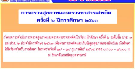 FacebookTwitterLineวันที่ ๑๗ กุมภาพันธ์ ๒๕๖๔ วิทยาลัยเทคนิคอุบลราชธานี จัดโครงการตรวจสุขภาพและตรวจหาสารเสพติดครั้งที่ ๒ ปีการศึกษา ๒๕๖๓ (เพิ่มเติม…) FacebookTwitterLine read more