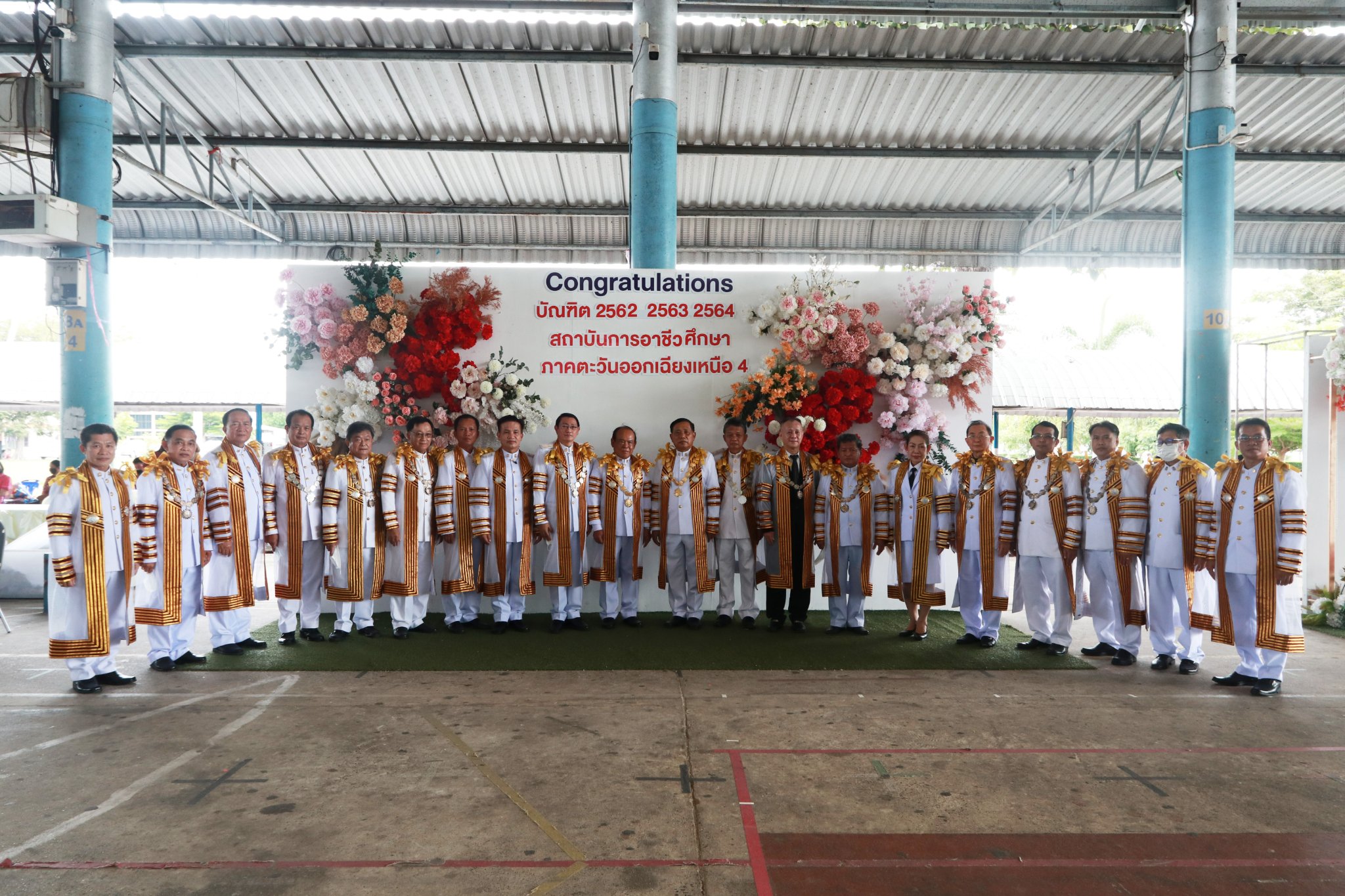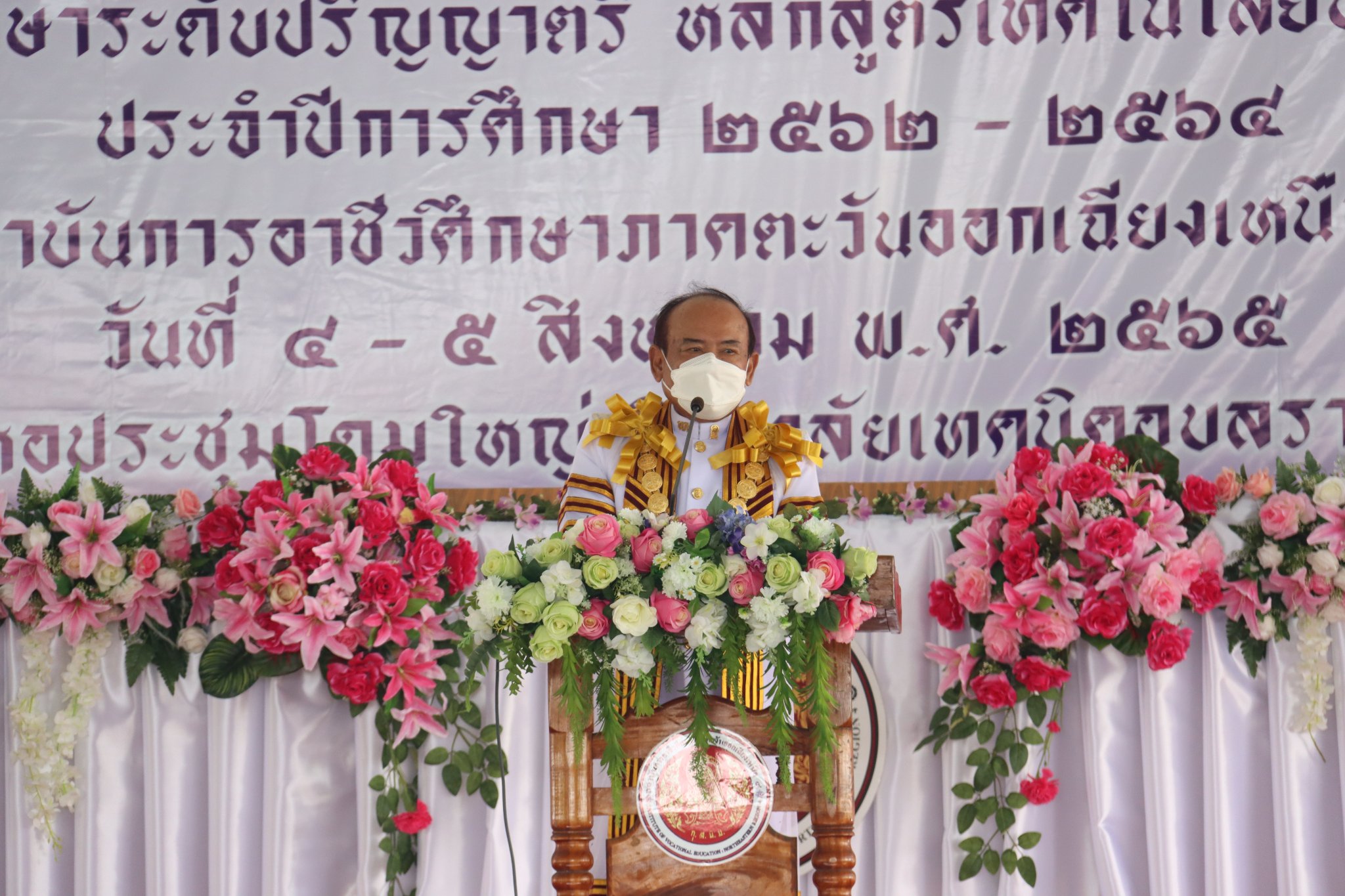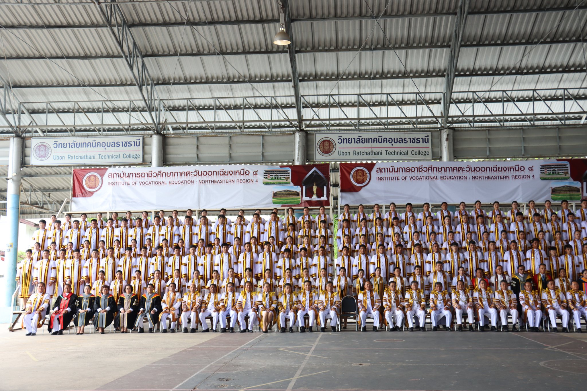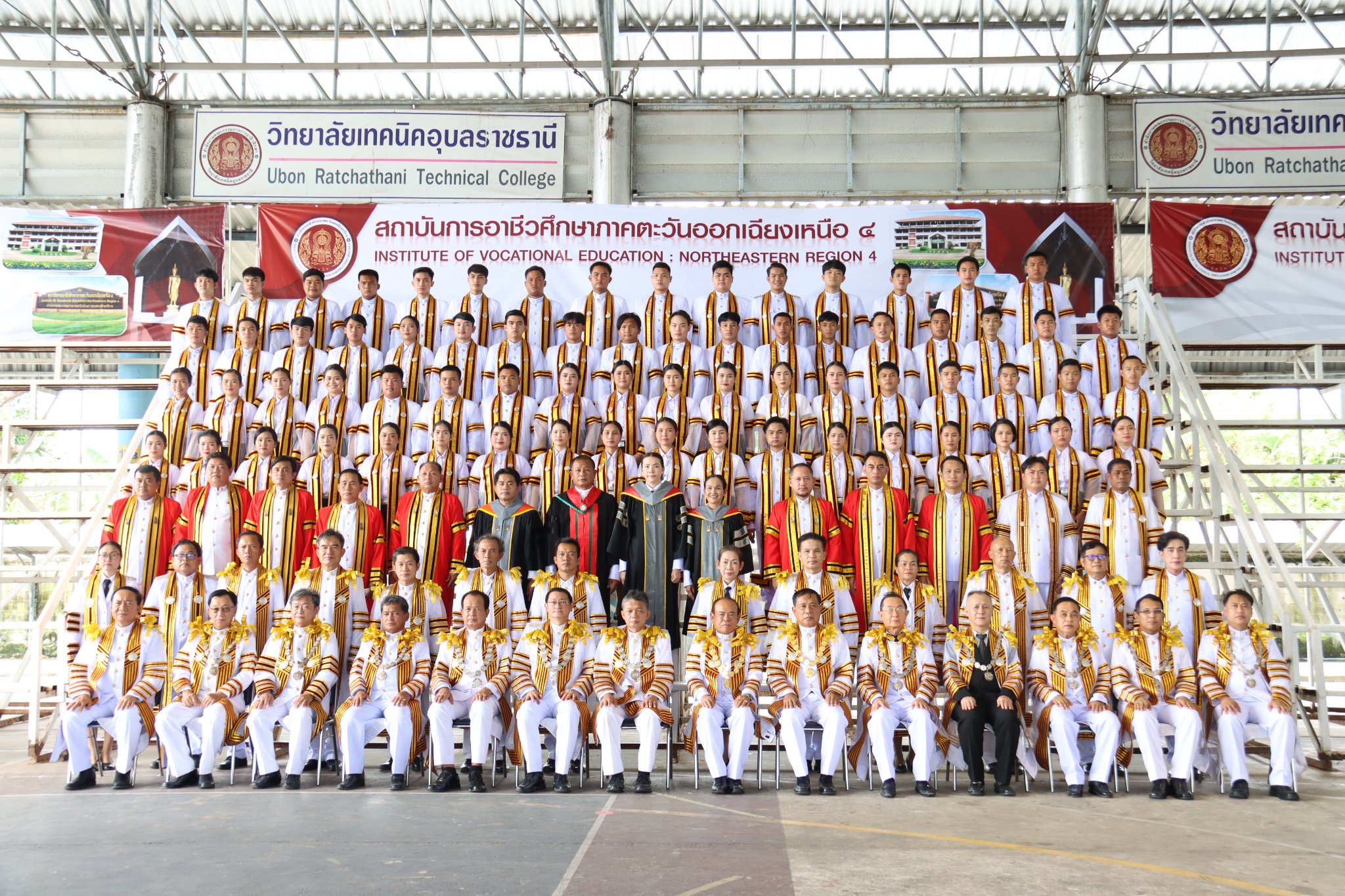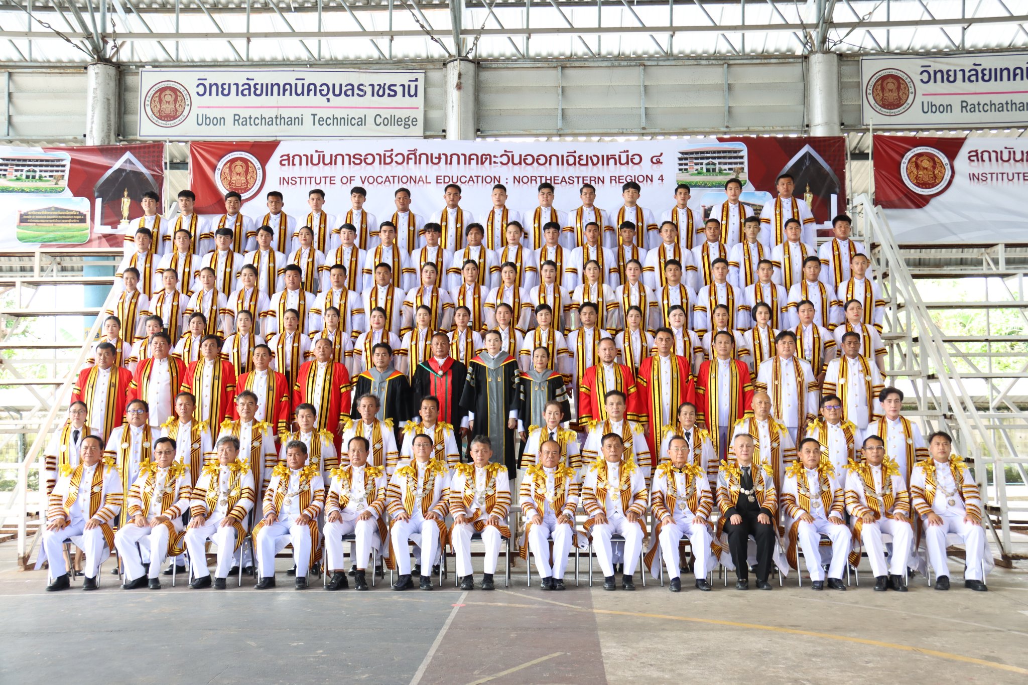 วันที่ ๕ สิงหาคม ๒๕๖๕เวลา ๐๙.๐๐ น. นายธาตรี พิบูลมณฑา ผู้อำนวยการวิทยาลัยเทคนิคอุบลราชธานีประธานกรรมการอาชีวศึกษาจังหวัดอุบลราชธานี พร้อมด้วยนายไวพจน์ ศรีธัญ รองผู้อำนวยการฝ่ายพัฒนากิจการนักเรียนนักศึกษา ปฏิบัติหน้าที่ รองผู้อำนวยการฝ่ายบริหารทรัพยากร นางราตรี สะดีวงศ์ รองผู้อำนวยการฝ่ายแผนงานและความร่วมมือ และนายสุวิชา มั่นยืน รองผู้อำนวยการฝ่ายวิชาการ คณะครู และบุคลากรทางการศึกษาที่เกี่ยวข้อง เข้าร่วมพิธีซ้อมย่อยรับพระราชทานปริญญาบัตร ผู้สำเร็จการศึกษาระดับปริญญาตรี หลักสูตรเทคโนโลยีบัณฑิต (ทล.บ.) ประจำปีการศึกษา ๒๕๖๒ – ๒๕๖๔ จัดขึ้นระหว่างวันที่ ๔ – ๕ สิงหาคม ๒๕๖๕ ณ หอประชุมโดมใหญ่ วิทยาลัยเทคนิคอุบลราชธานี โดยได้รับเกียรติจาก นายนิยม ศรีวิเศษ นายกสภาสถาบันการอาชีวศึกษาภาคตะวันออกเฉียงเหนือ ๔ กล่าวต้อนรับ แสดงความยินดี และให้โอวาทแก่ผู้สำเร็จการศึกษา โอกาสนี้ นายลิขิต พลเหลา ผู้อำนวยการสถาบันการอาชีวศึกษาภาคตะวันออกเฉียงเหนือ ๔ ได้ให้เกียรติกล่าวแสดงความยินดี และพบปะผู้สำเร็จการศึกษาที่เข้าร่วมพิธีในครั้งนี้ ซึ่งพิธีซ้อมย่อยรับพระราชทานปริญญาบัตรนั้น จัดขึ้นเพื่อให้นักศึกษาระดับปริญญาตรีที่สำเร็จการศึกษาได้เตรียมพร้อมสำหรับพิธีการรับพระราชทานปริญญาบัตรในวันที่ ๓๐ – ๓๑ สิงหาคม ๒๕๖๕ ณ วิทยาลัยการอาชีวศึกษาปทุมธานี จังหวัดปทุมธานี ต่อไป