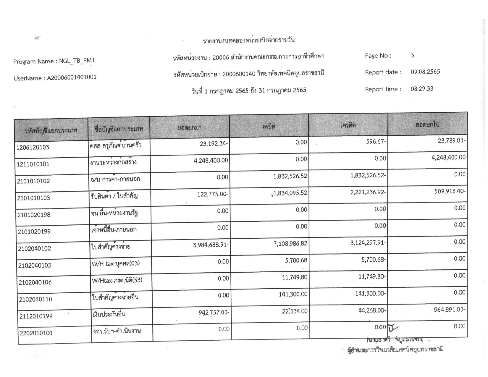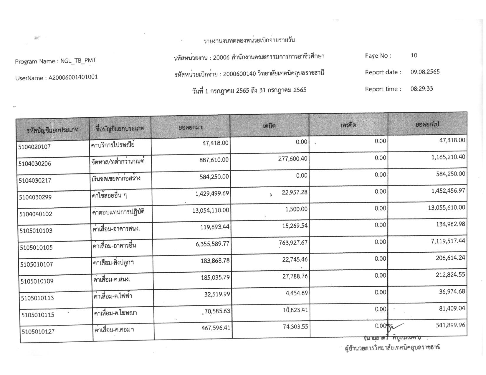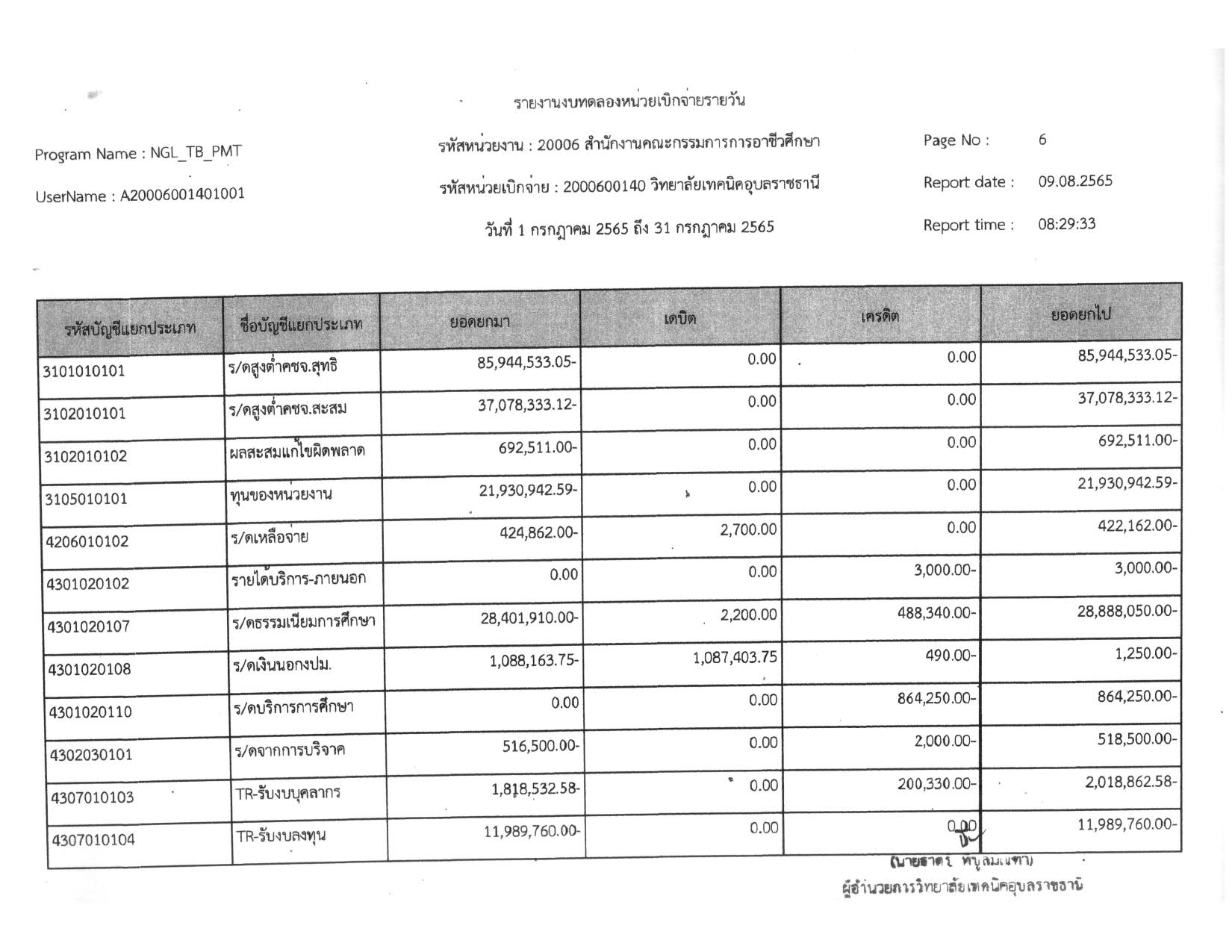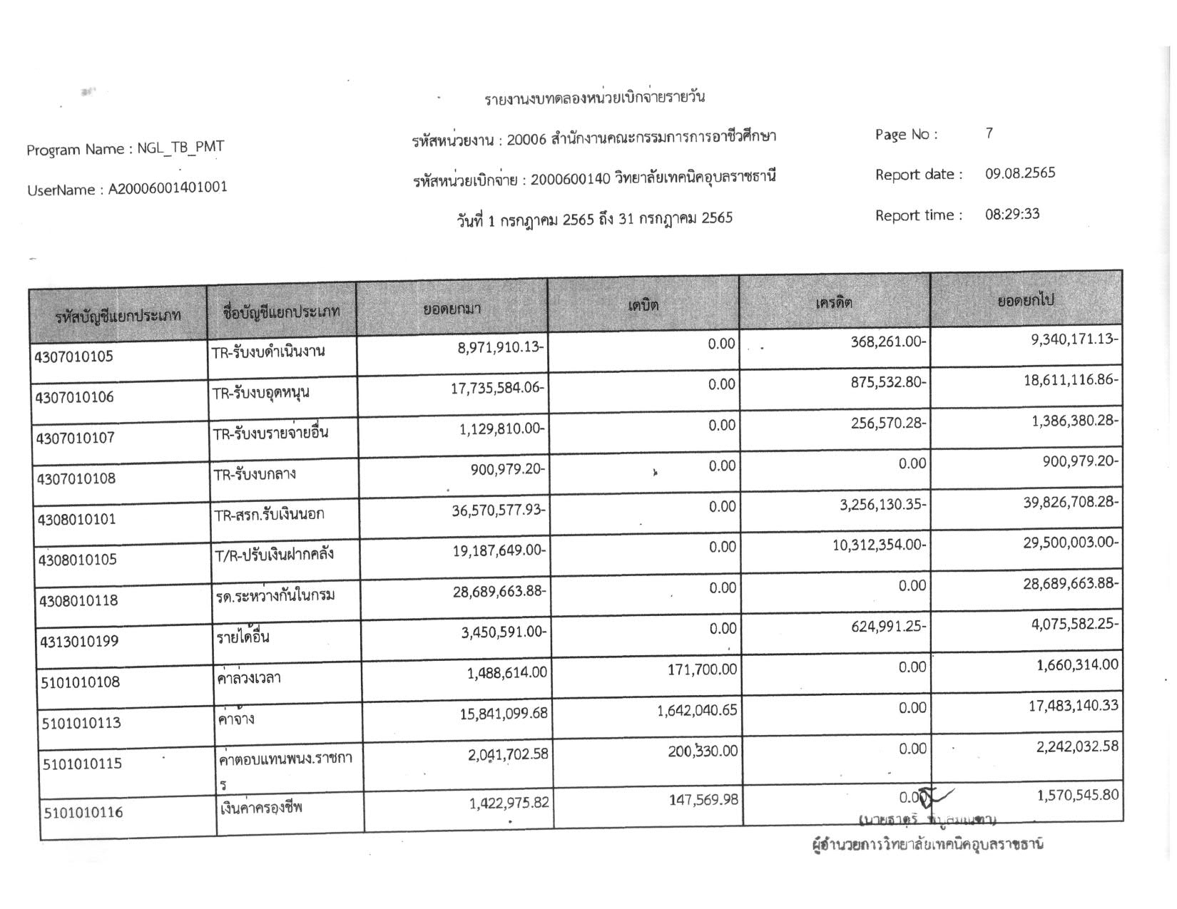 รายงานงบทดลองประจำเดือน กรกฎาคม 2565