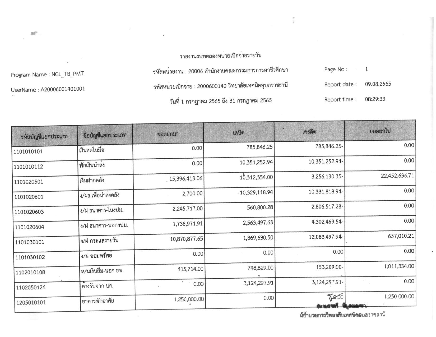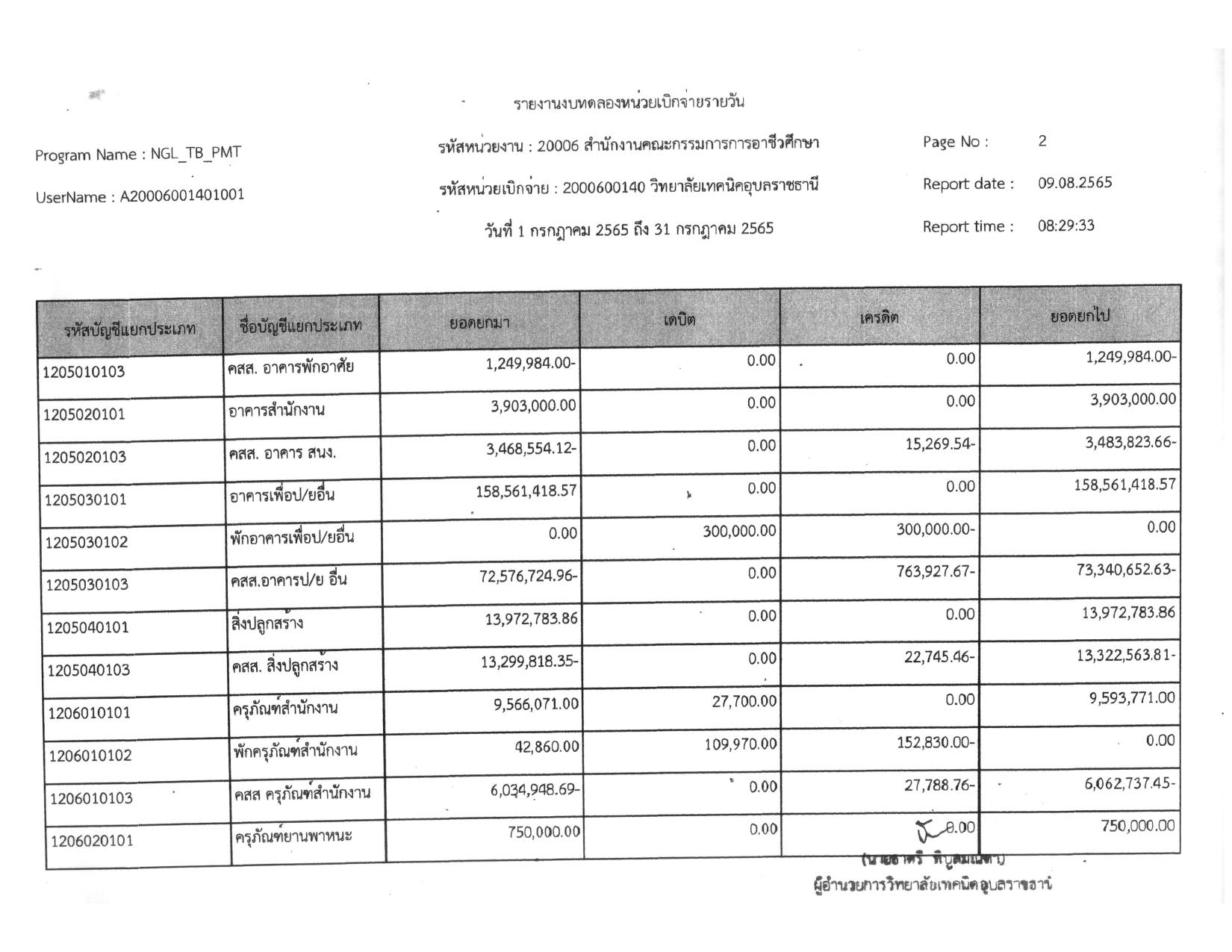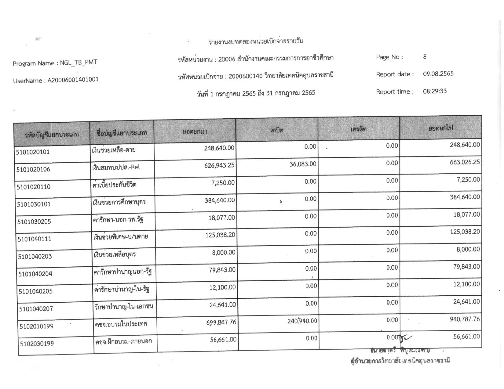 รายงานงบทดลองประจำเดือน กรกฎาคม 2565