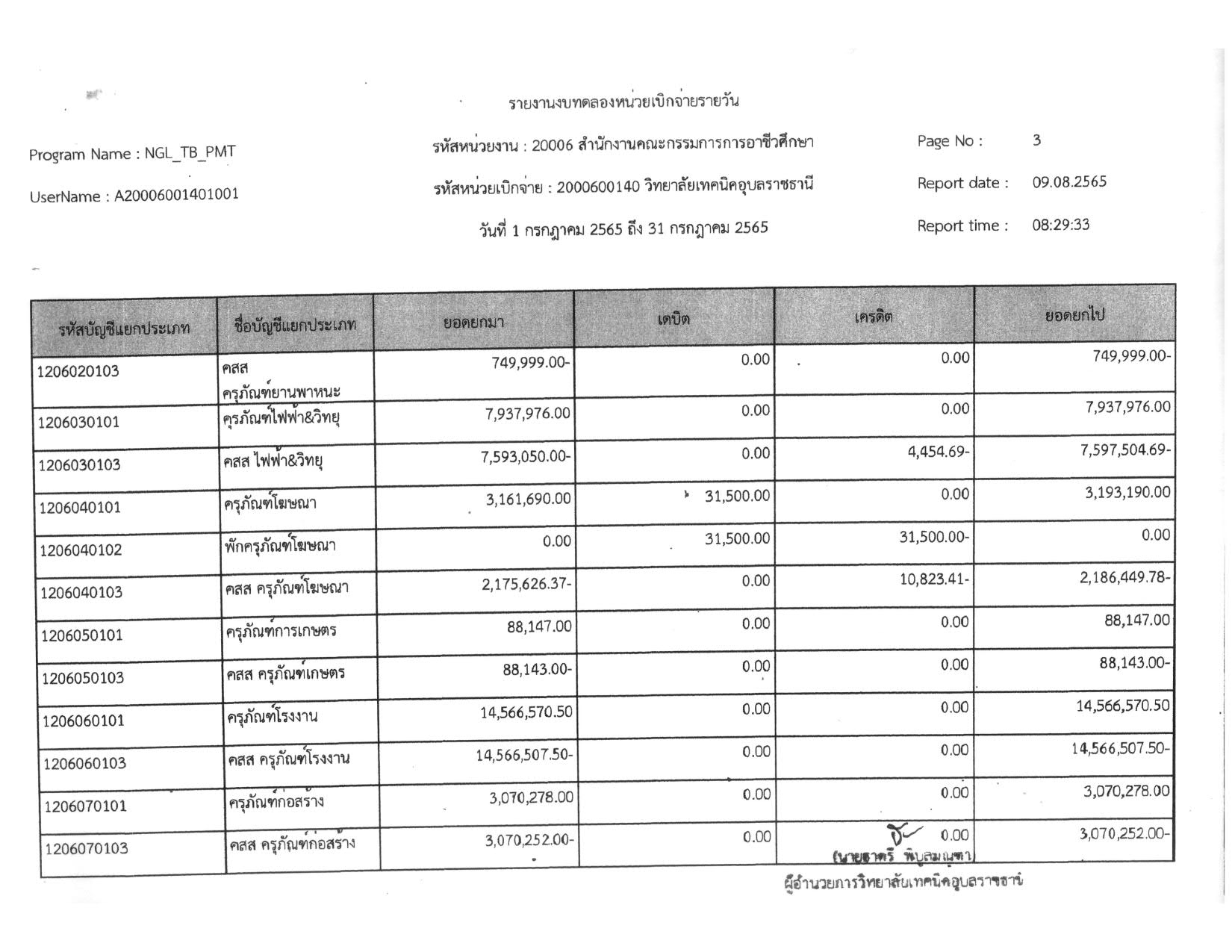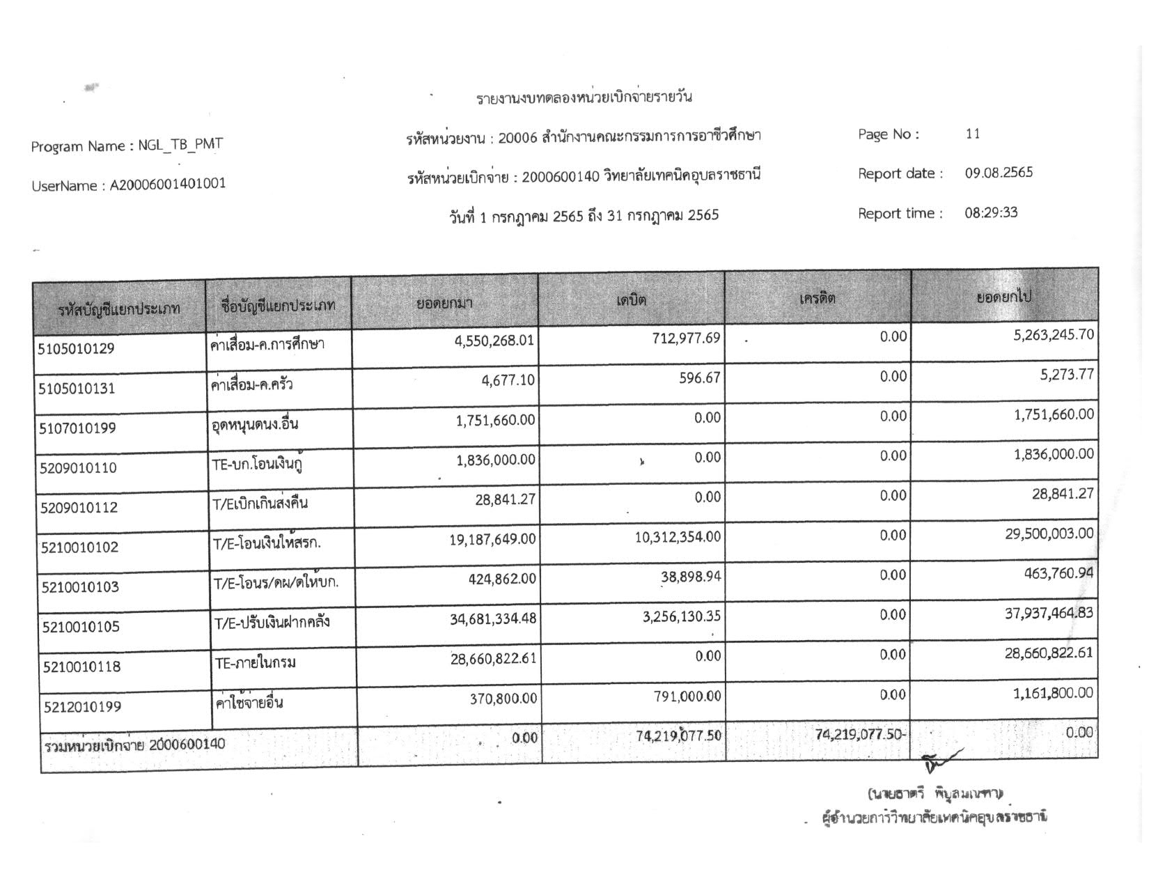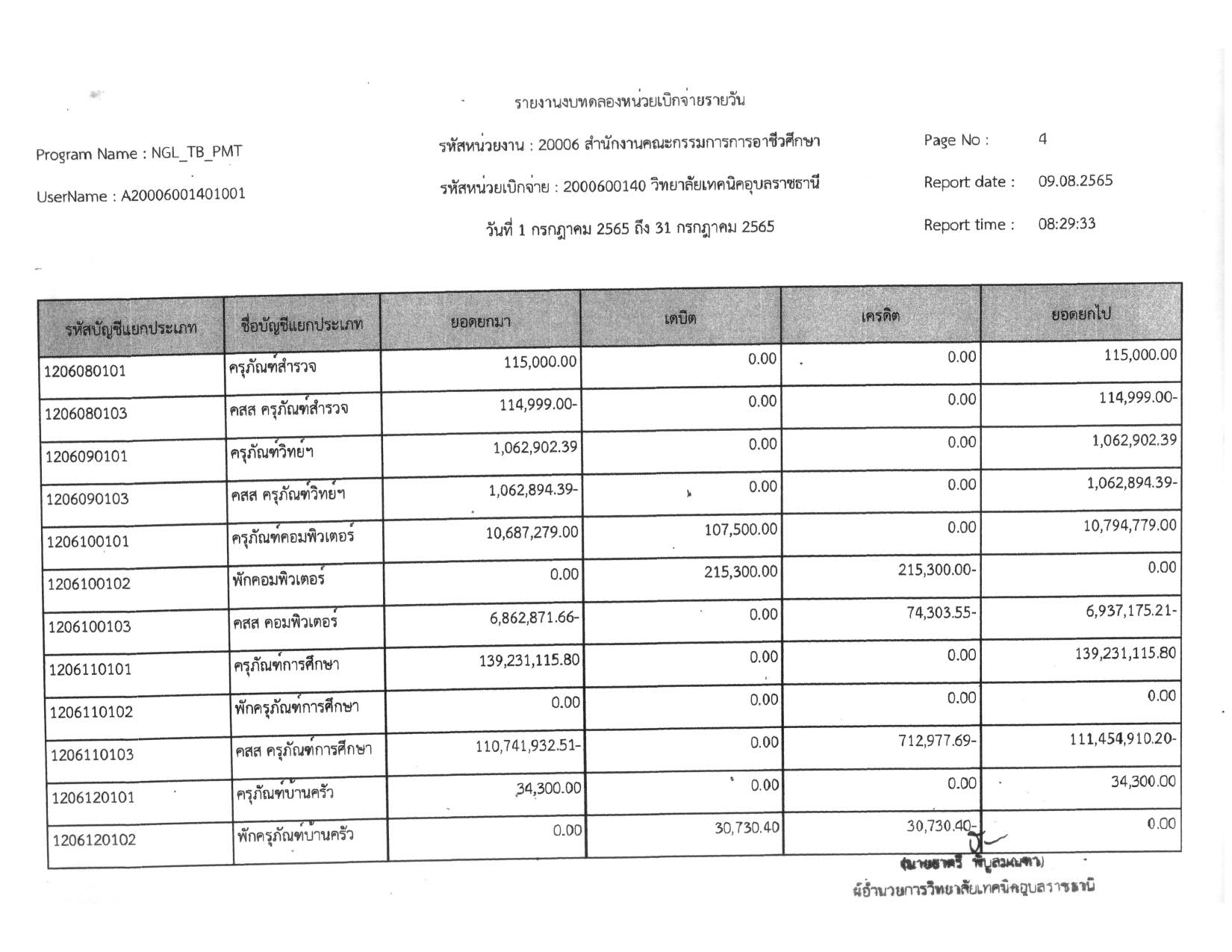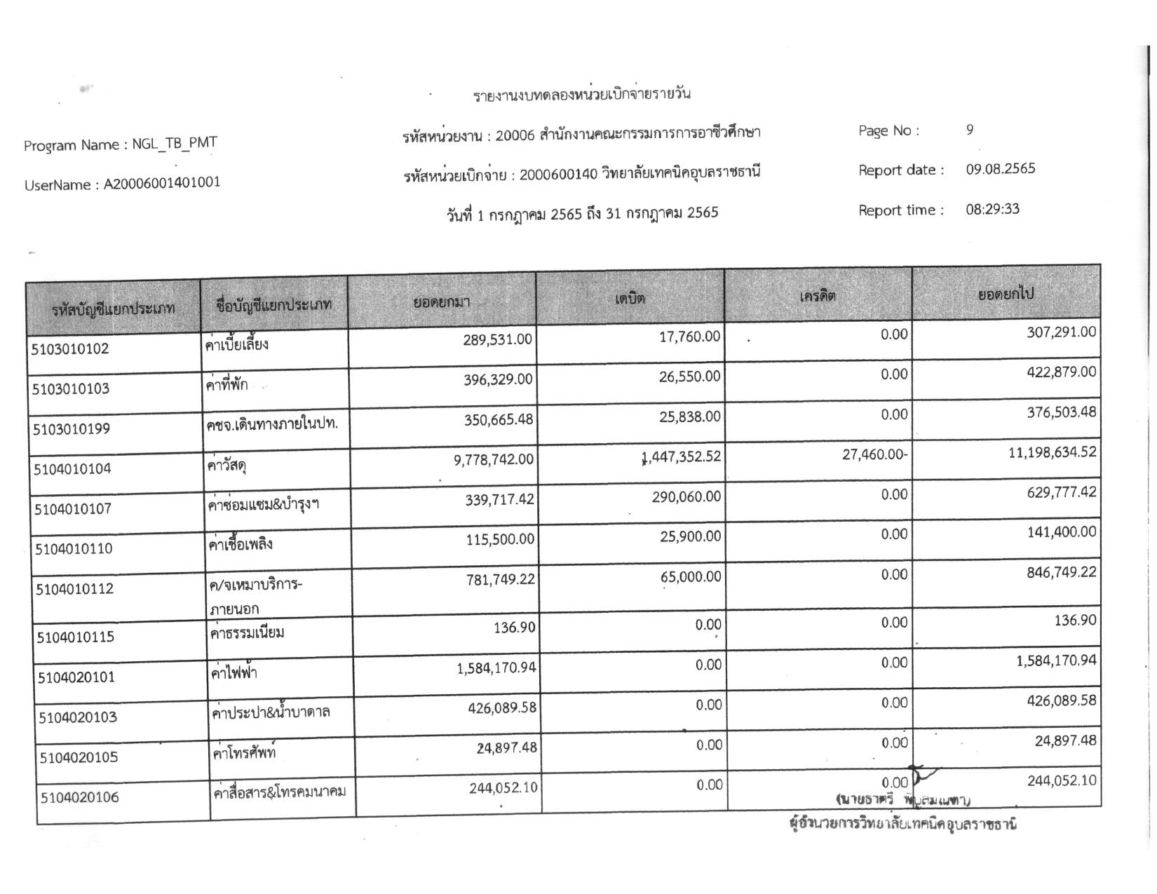 รายงานงบทดลองประจำเดือน กรกฎาคม 2565