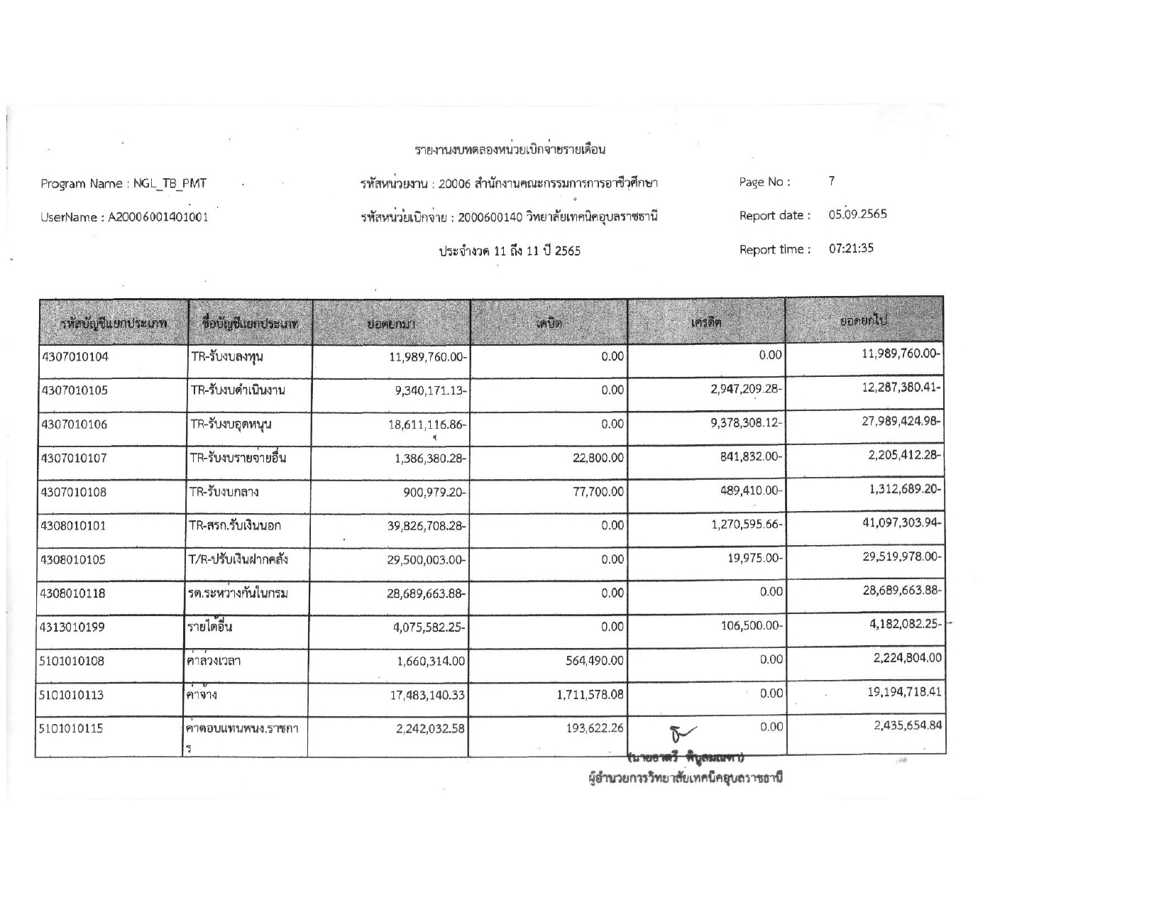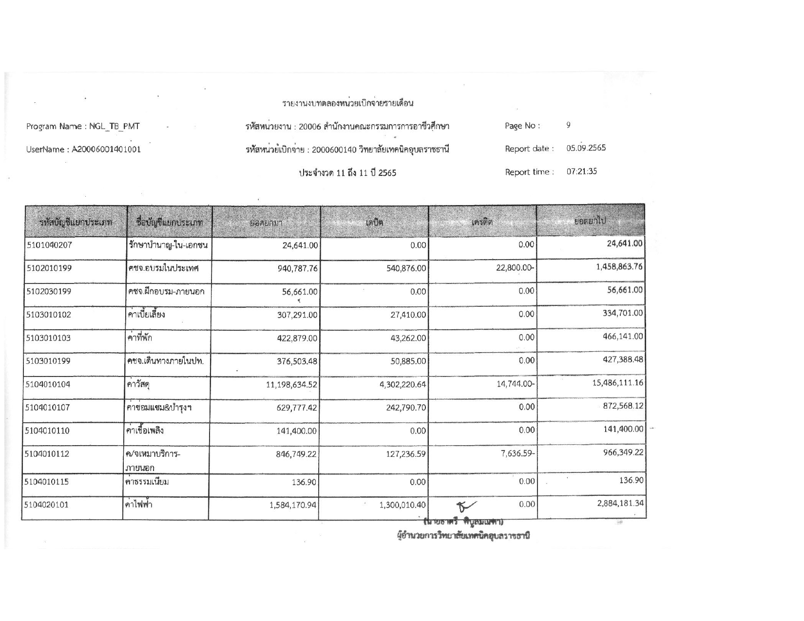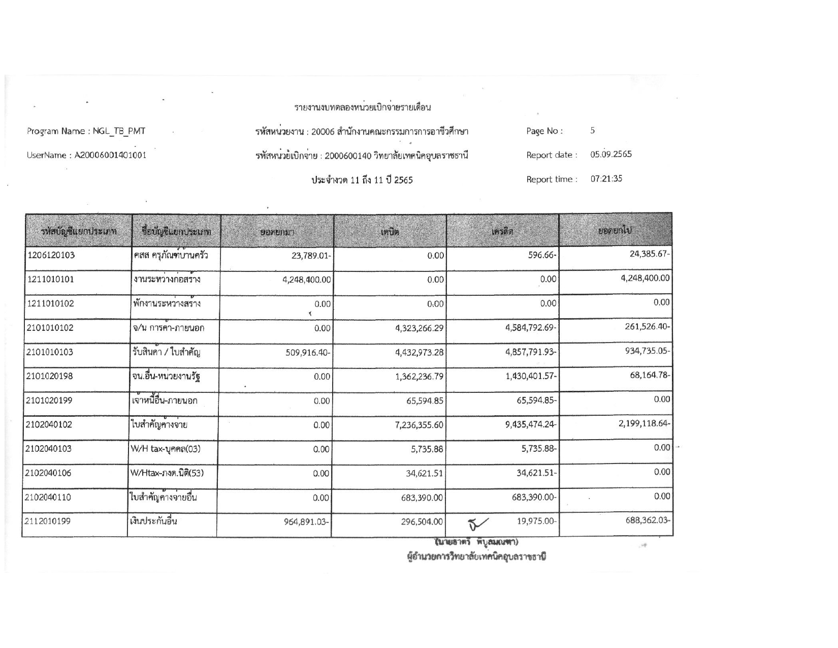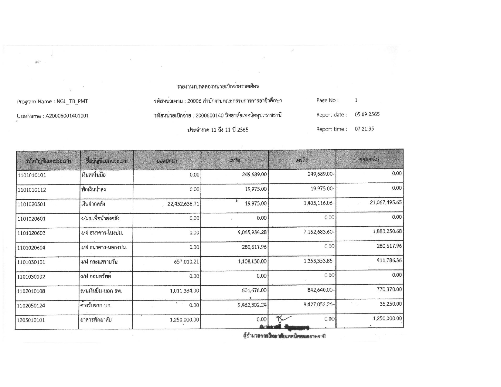 รายงานงบทดลองประจำเดือน สิงหาคม 2565