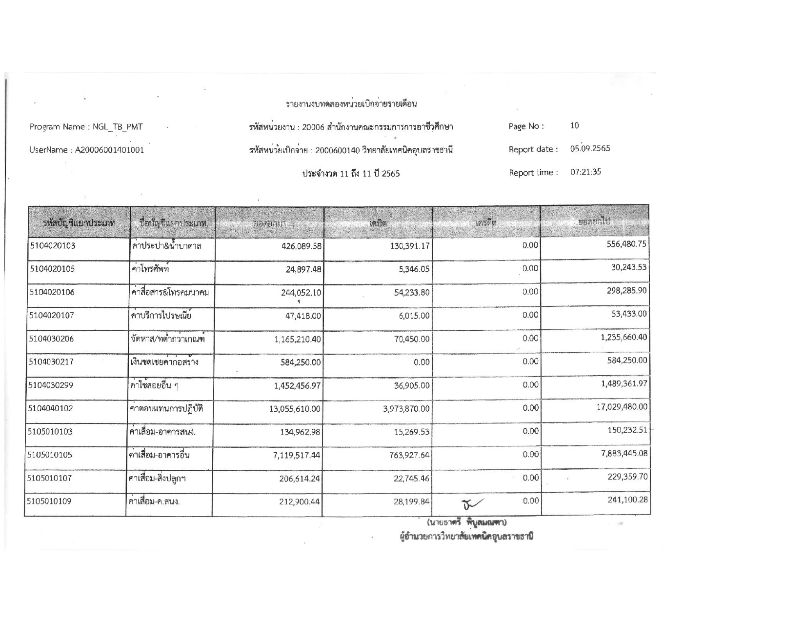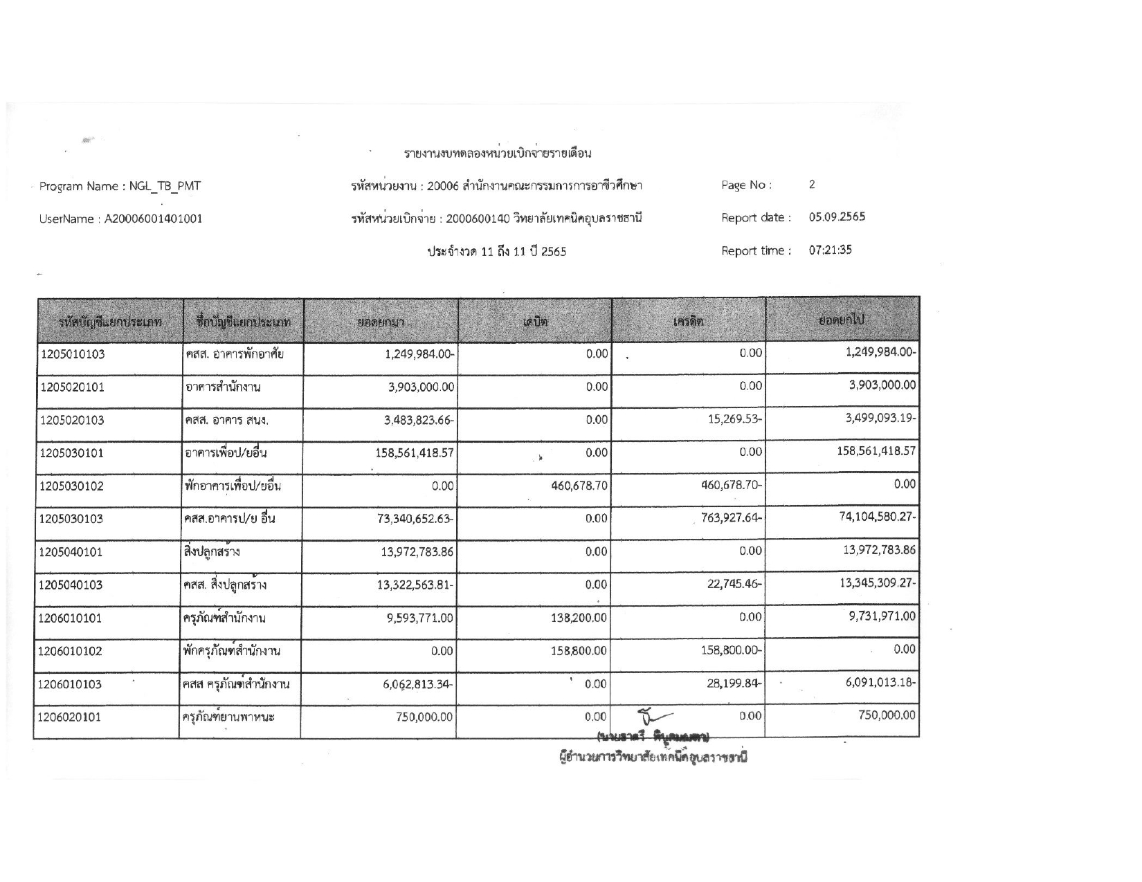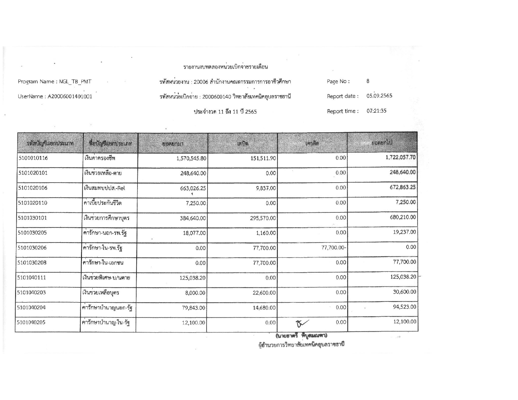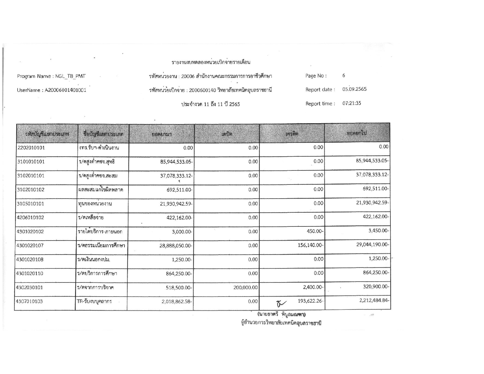 รายงานงบทดลองประจำเดือน สิงหาคม 2565