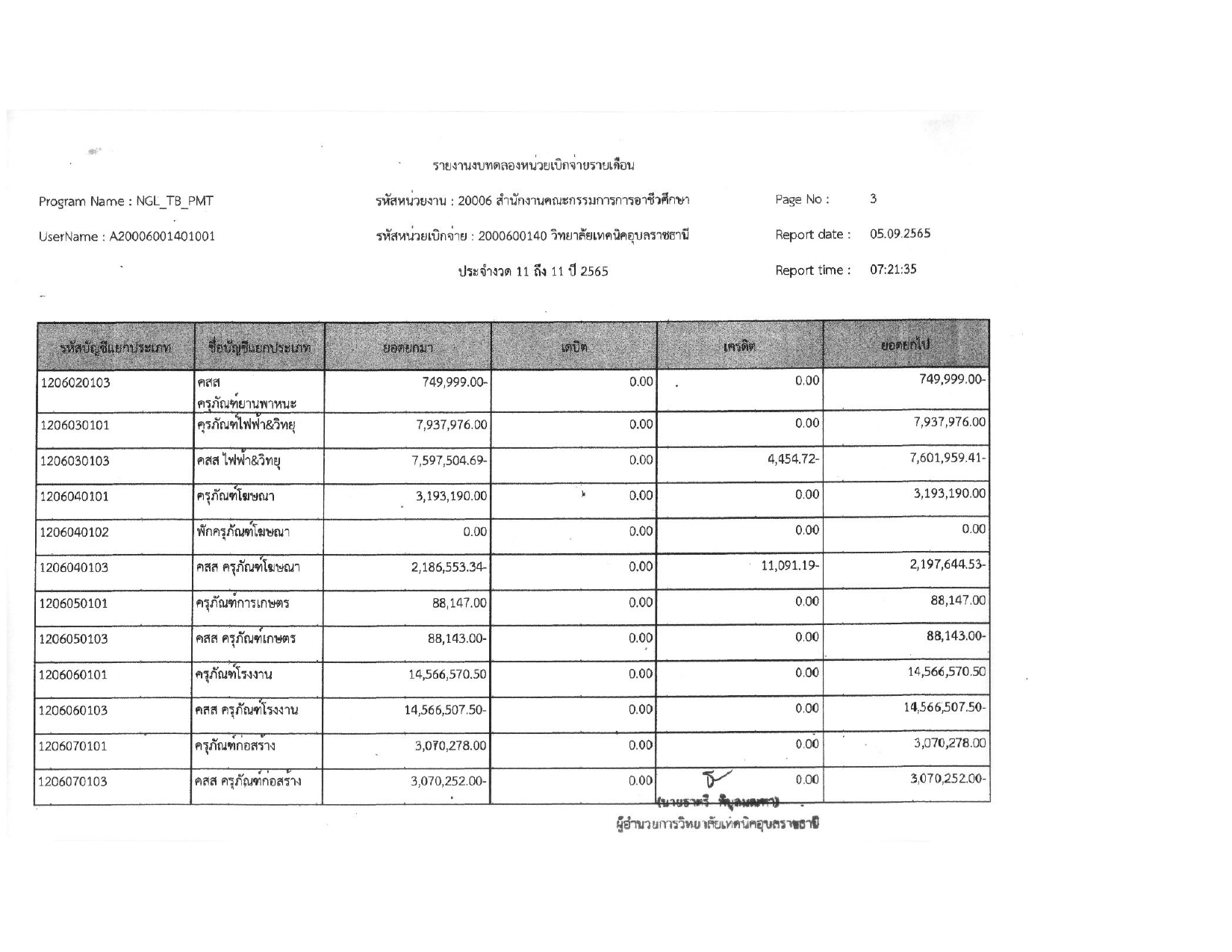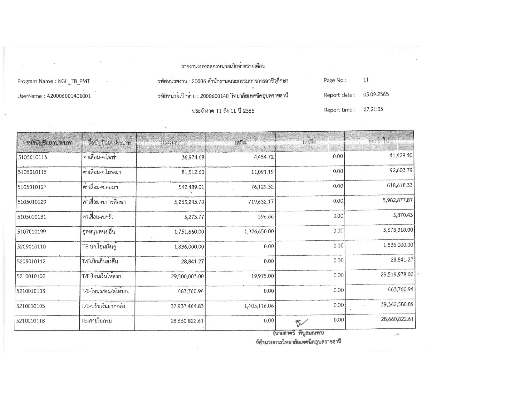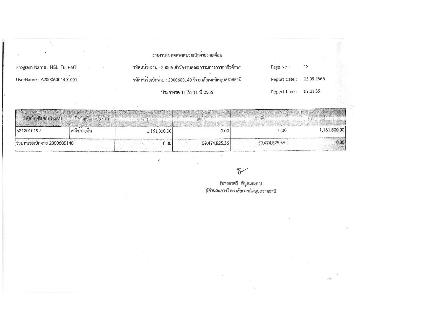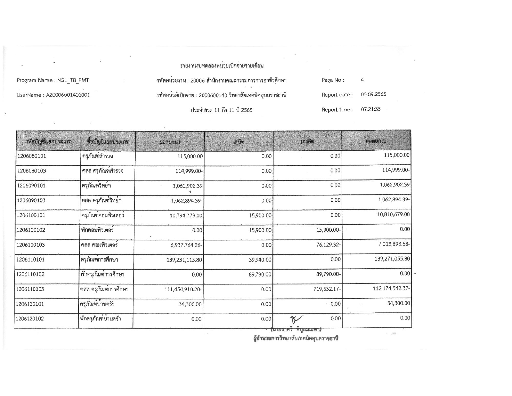รายงานงบทดลองประจำเดือน สิงหาคม 2565