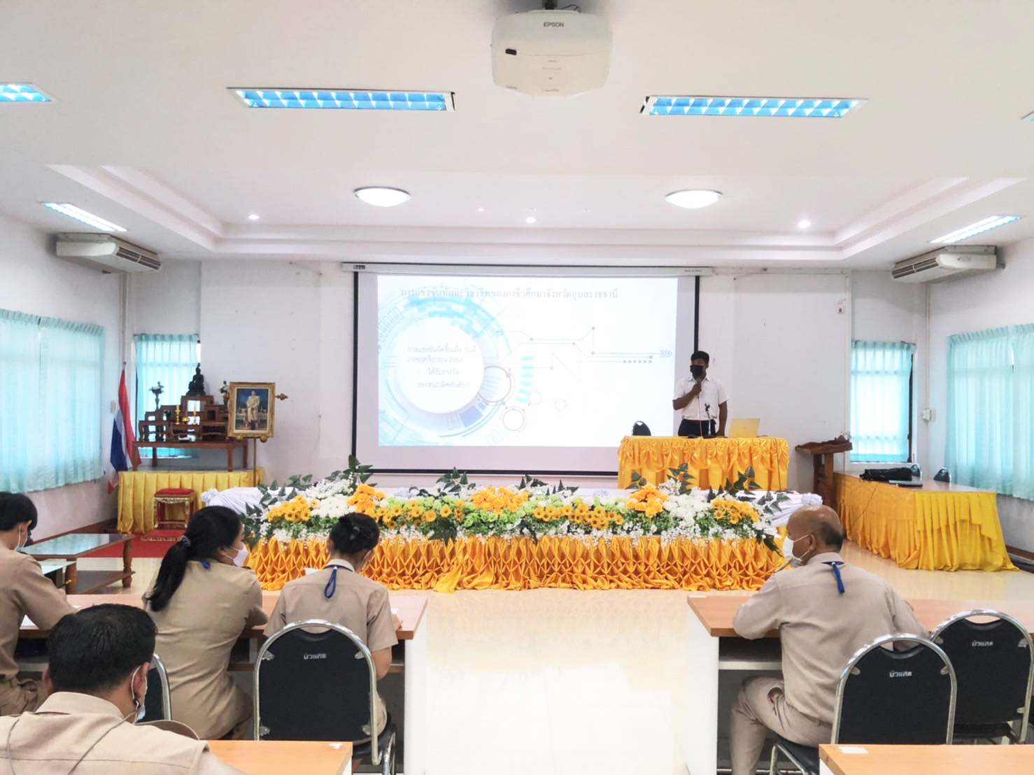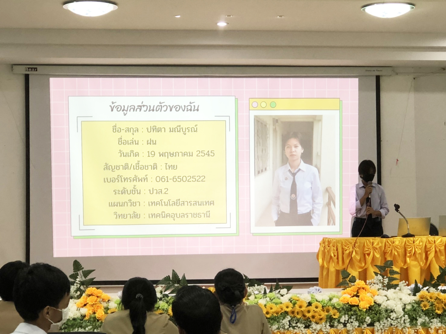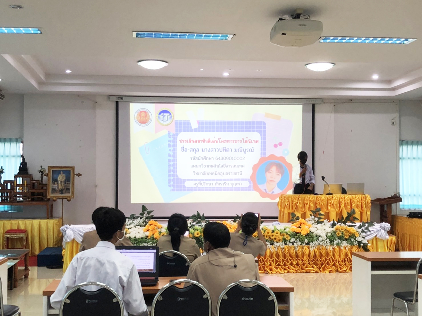 วันที่ ๑๒ กันยายน ๒๕๖๕ เวลา ๑๐.๓๐ น. นายธาตรี พิบูลมณฑา ผู้อำนวยการวิทยาลัยเทคนิคอุบลราชธานีได้มอบหมายให้ นายไวพจน์ ศรีธัญ รองผู้อำนวยการฝ่ายพัฒนากิจการนักเรียนนักศึกษา ปฏิบัติหน้าที่ รองผู้อำนวยการฝ่ายบริหารทรัพยากร พร้อมด้วย นายศักดิ์สิทธิ์ จันทะแสง ครูที่ปรึกษา อวท. และคณะ เข้าร่วมโครงการประเมินสมาชิกดีเด่น(ภายใต้โครงการนิเทศ) ระดับสถานศึกษา ประจำปีการศึกษา ๒๕๖๕ ณ ห้องประชุมบัวแสด วิทยาลัยเทคนิคอุบลราชธานี ทั้งนี้เพื่อคัดเลือกตัวแทนนักเรียน นักศึกษา ใน ๑๒ แผนกวิชา เข้าแข่งขัน สมาชิกดีเด่น ในระดับอาชีวศึกษาจังหวัดอุบลราชธานี และเพื่อให้นักเรียน นักศึกษา กล้าแสดงออก นำความรู้ที่ร่ำเรียนมา ได้นำเสนอต่อบุคคลภายใน และภายนอกวิทยาลัยฯ ต่อไป