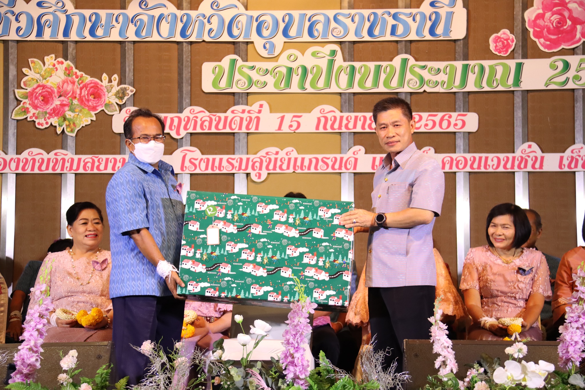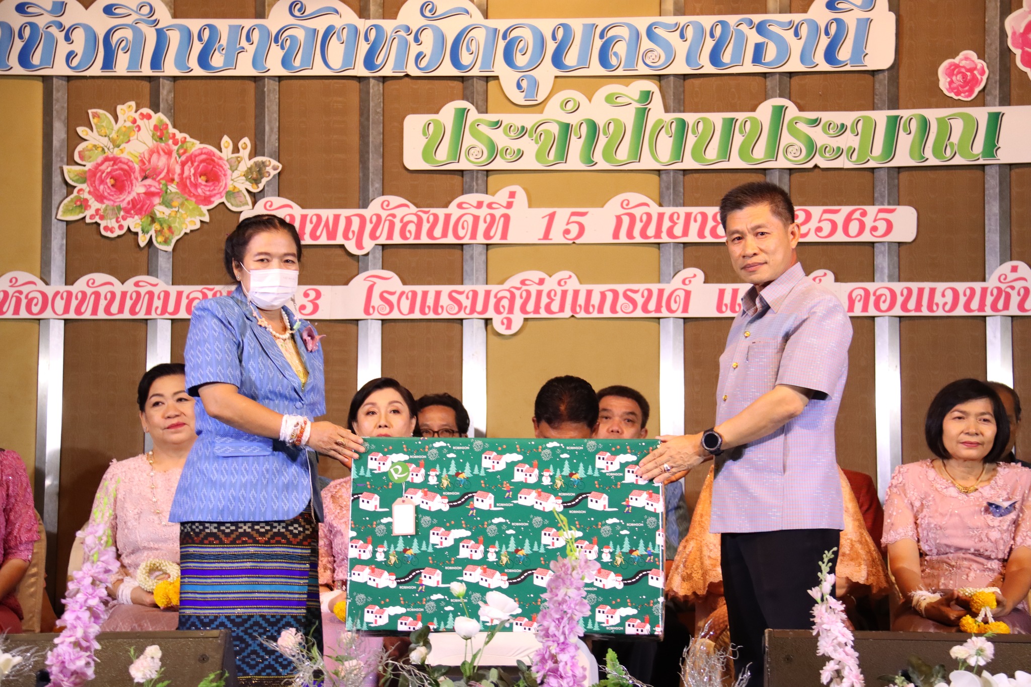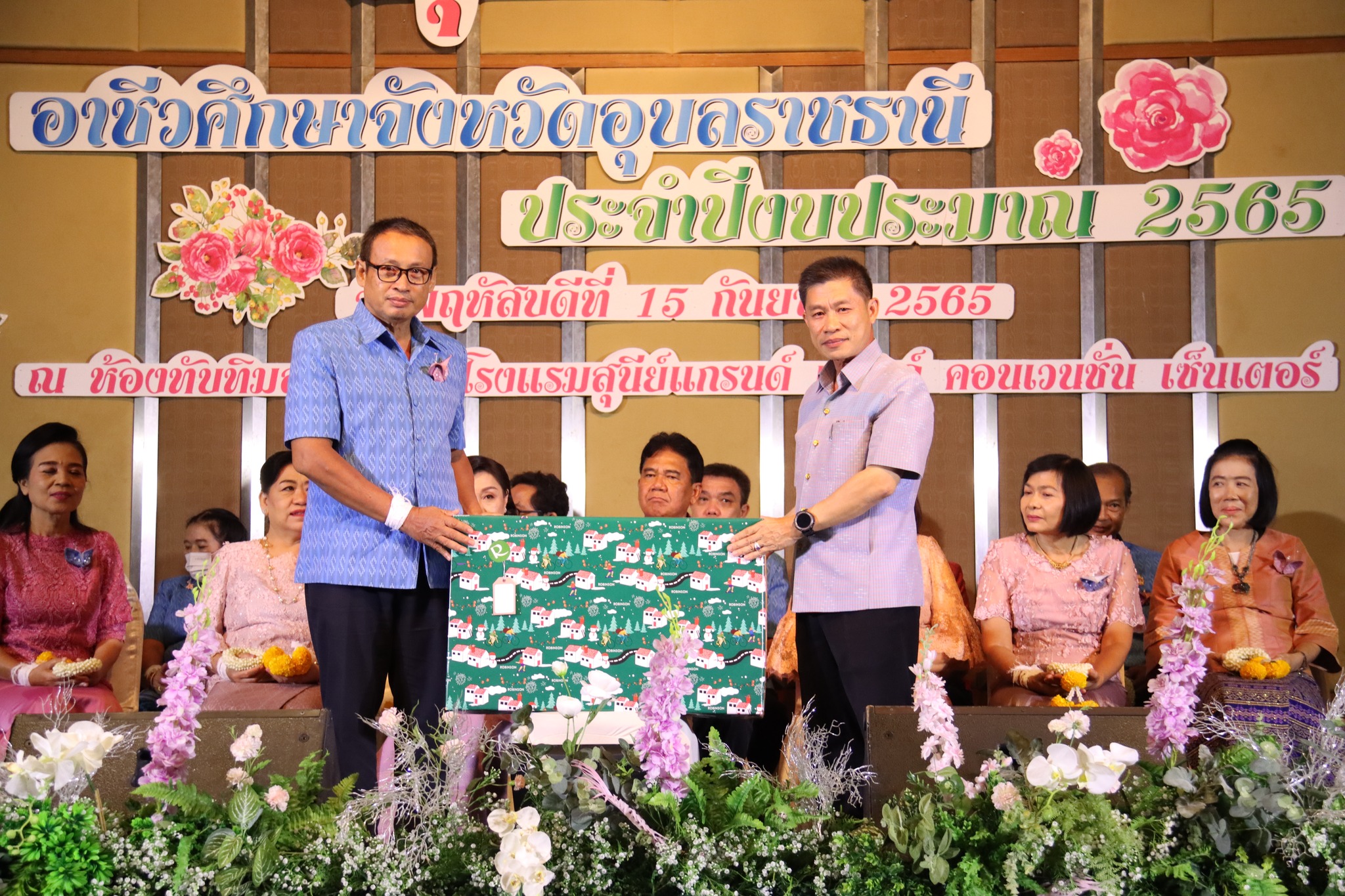 วันที่ ๑๕ กันยายน ๒๕๖๕ เวลา ๑๗.๐๐ น. นายธาตรี พิบูลมณฑาผู้อำนวยการวิทยาลัยเทคนิคอุบลราชธานี ประธานกรรมการอาชีวศึกษาจังหวัดอุบลราชธานี พร้อมด้วย นายไวพจน์ ศรีธัญ รองผู้อำนวยการฝ่ายพัฒนากิจการนักเรียนนักศึกษา ปฏิบัติหน้าที่ รองผู้อำนวยการฝ่ายบริหารทรัพยากร นางราตรี สะดีวงศ์ รองผู้อำนวยการฝ่ายแผนงานและความร่วมมือ นำคณะผู้เกษียณอายุราชการ วิทยาลัยเทคนิคอุบลราชธานี ประกอบด้วย นายณรงค์ สุรินทร์ ครูแผนกวิชาช่างกลโรงงาน นายเกียรติศักดิ์ ชินาภาษ หัวหน้าแผนกวิชาอิเล็กทรอนิกส์ นายวัชระ ประคองพันธ์ ครูแผนกวิชาอิเล็กทรอนิกส์ นายเผด็จศึก แสนุวงศ์ หัวหน้าแผนกวิชาเทคโนโลยีโทรคมนาคม นายสงบ ฉ้งทับ ครูแผนกวิชาช่างก่อสร้างและสถาปัตยกรรม นายณัฐวัฒน์ ฤทธิมนตรี ครูแผนกวิชาสามัญสัมพันธ์ และนางฉวีวรรณ สาริบุตร เจ้าหน้าที่ธุรการงานบริหารงานทั่วไป ฝ่ายวิชาการ เข้าร่วมงานมุทิตาคารวะ อาชีวศึกษาจังหวัดอุบลราชธานี ประจำปีงบประมาณ ๒๕๖๕ ณ โรงแรมสุนีย์ แกรนด์ แอนด์ คอนเวนชั่น เซ็นเตอร์ จังหวัดอุบลราชธานี ซึ่งในปีนี้อาชีวศึกษาจังหวัดอุบลราชธานี มีผู้เกษียณอายุราชการทั้งหมด ๒๐ ท่าน โดยได้รับเกียรติจาก นายประสิทธิ์ สุระศิลป์ อดีตผู้อำนวยการวิทยาลัยอาชีวศึกษาอุบลราชธานี เป็นประธานในพิธี การจัดงานครั้งนี้มีวัตถุประสงค์เพื่อให้ผู้เกษียณอายุราชการได้แสดงความรู้สึก และกล่าวอำลาราชการต่อคณะผู้บริหาร ครู บุคลากรทางการศึกษาที่มาร่วมพิธีในครั้งนี้