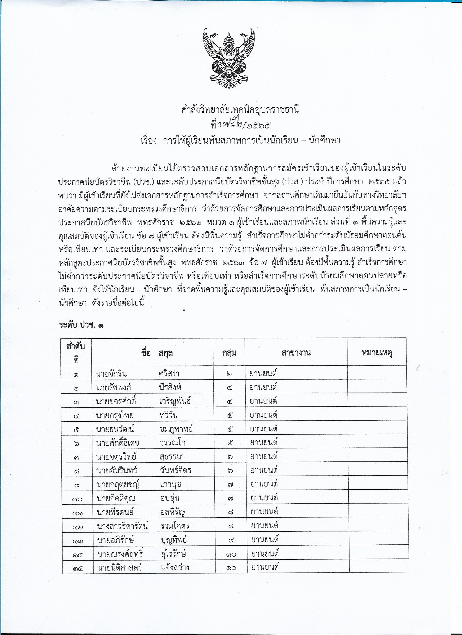 ประกาศจากงานทะเบียน ให้นักเรียน นักศึกษาที่มีรายชื่อดังต่อไปนี้ ติดต่องานทะเบียนด่วนภายในวันที่ 20 ตุลาคม 2565