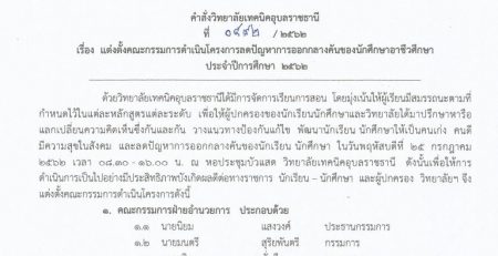 วันที่ ๒๗ กันยายน ๒๕๖๕ เวลา ๑๐.๐๐ น. นายธาตรี พิบูลมณฑา ผู้อำนวยการวิทยาลัยเทคนิคอุบลราชธานีได้มอบหมายให้ นายสุวิชา มั่นยืน รองผู้อำนวยการฝ่ายวิชาการ พร้อมด้วย นายทรงศักดิ์ สัตนาโค หัวหน้างานอาชีวศึกษาระบบทวิภาคี นายกตนนท์ นาทัน หัวหน้าแผนกวิชาเครื่องกล และครูแผนกวิชาเครื่องกล ให้การต้อนรับ นายสุพจน์ ตั้งพิพัฒไพรี กรรมการผู้จัดการ นายศุภาวุฒิ รติวิวัฒน์สกุล ผู้อำนวยการหลักสูตร นายประเทือง น้อยอาษา ผู้จัดการแผนกบุคคลฯ นางสาวจารุวรรณ วุฒิประดิษฐ ผู้จัดการแผนกบุคคลฯ และนางสาวขนิษฐา สุวรรณผา หัวหน้าฝึกอบรม จากบริษัท เอส เอ็นซี ฟอร์เมอร์ จำกัด (มหาชน) ในโอกาสที่เข้ามาแนะแนวการฝึกงาน การทำงาน ให้แก่นักเรียน นักศึกษา แผนกวิชาเครื่องกล โดยแบ่งออกเป็น ๔ กลุ่ม ดังนี้ ๑.ชิ้นส่วนอุปกรณ์ที่ใช้สำหรับยานพาหนะ (AUTO) ๒.ชิ้นส่วนอุปกรณ์สำหรับเครื่องใช้ไฟฟ้า (PART) ๓.ผลิตและประกอบเครื่องใช้ไฟฟ้า (OEM) และ ๔.การดำเนินงานอื่นๆ (OTHER) เช่น เครื่องมือและอุปกรณ์ที่ ประกอบด้วยโลหะ เหล็ก ทังสเตน คาร์ไบค์ และกำลังขยายธุรกิจทางด้าน EV รถยนต์ไฟฟ้า