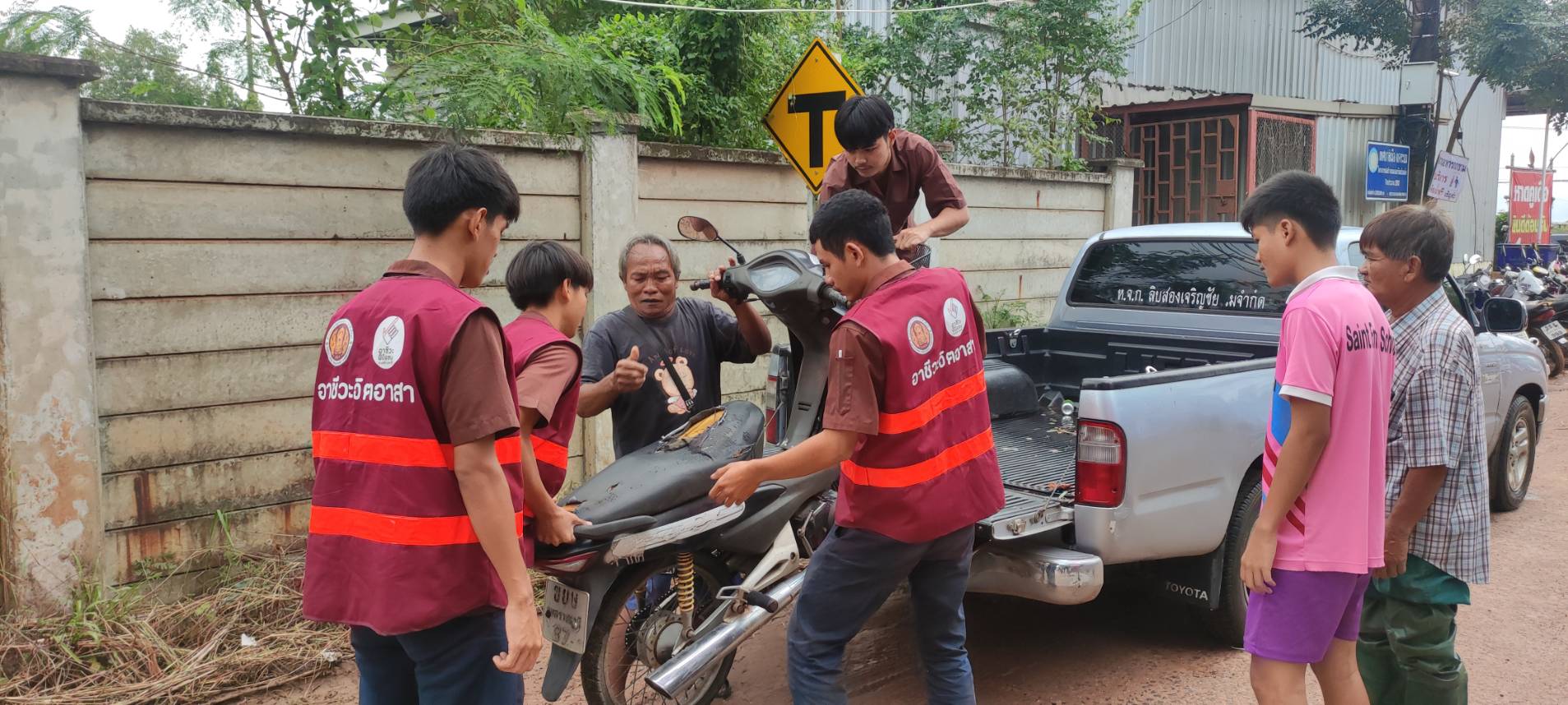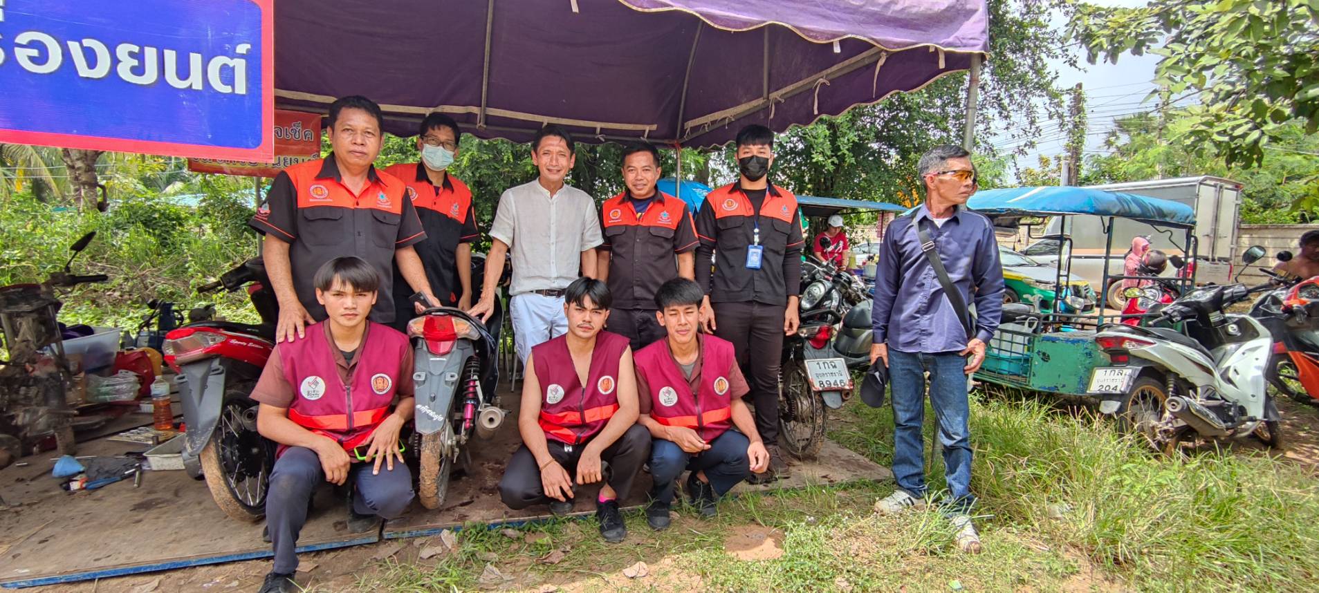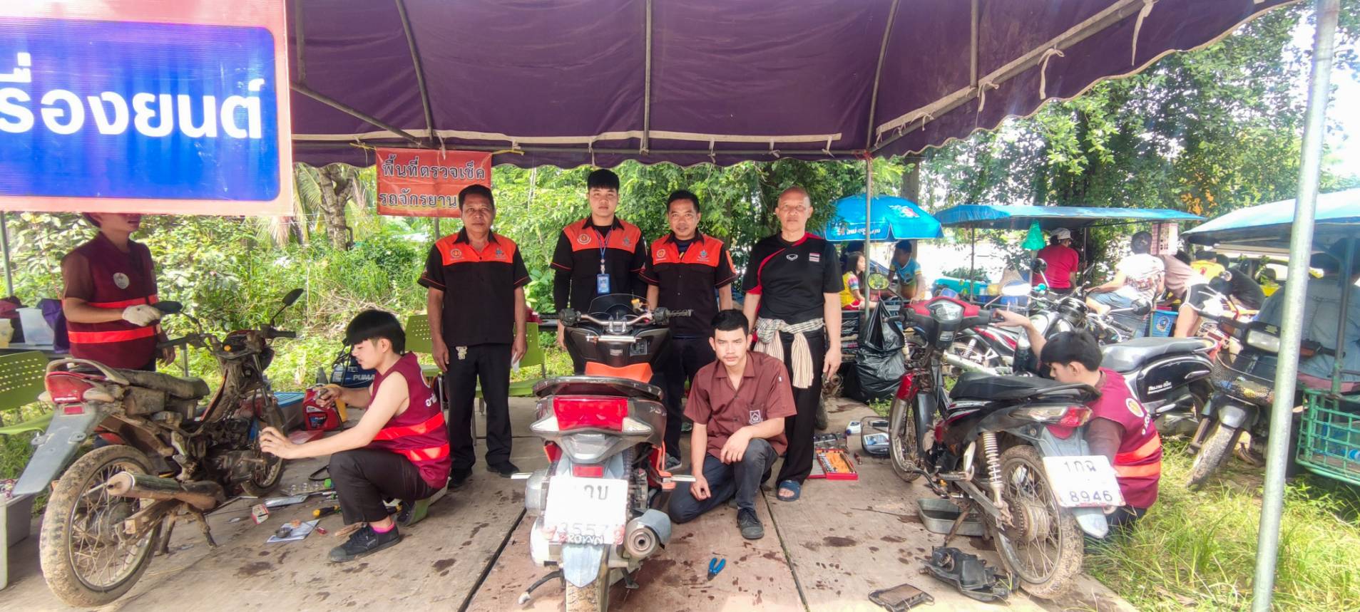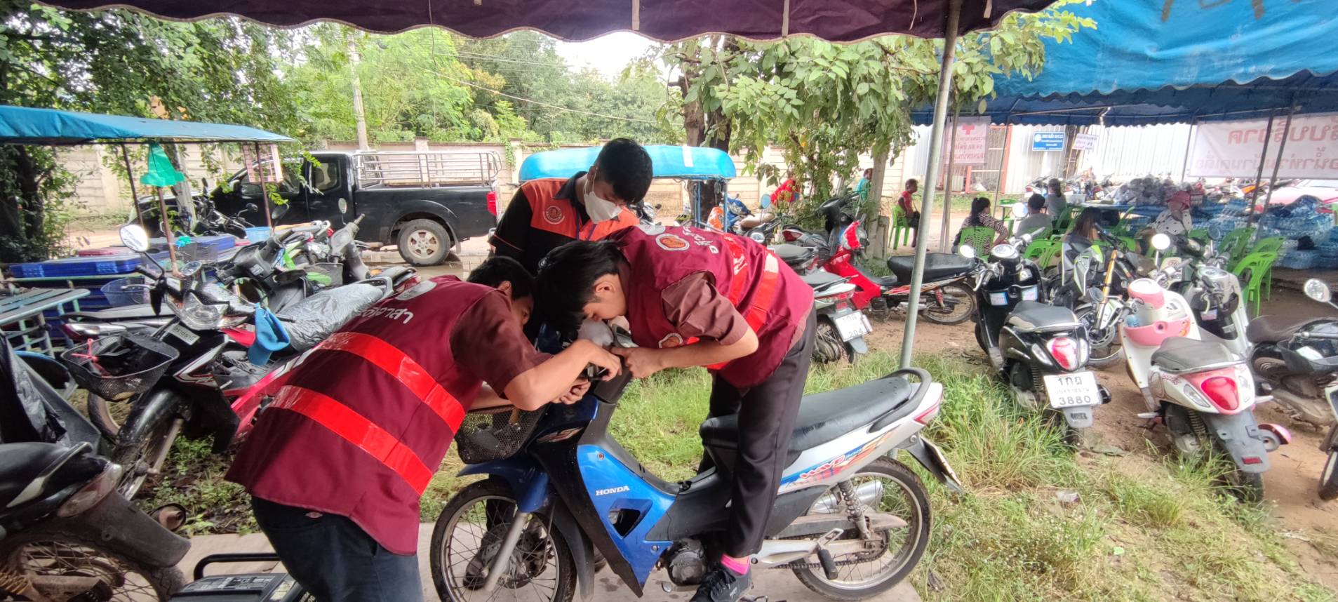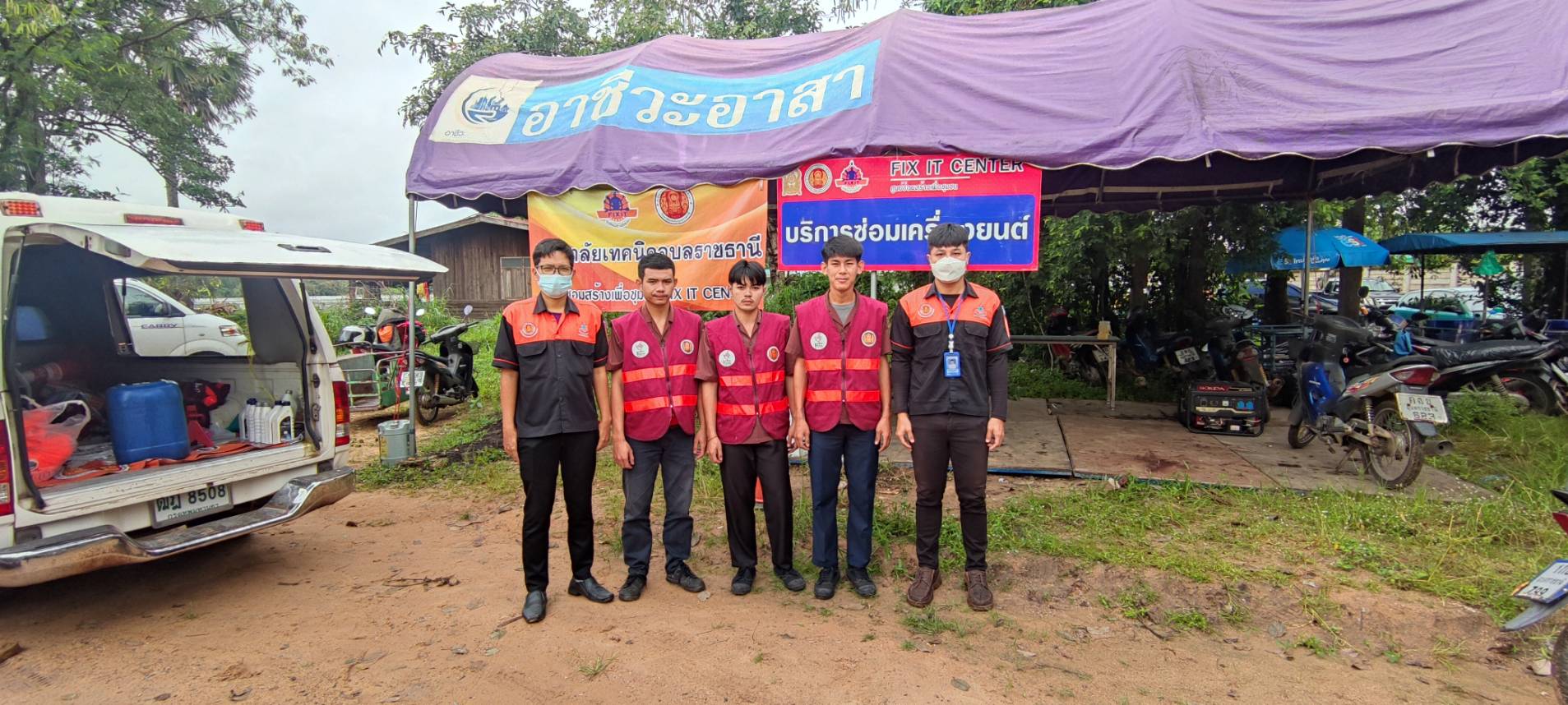 วิทยาลัยเทคนิคอุบลราชธานี ที่ออกให้บริการซ่อมรถจักรยานยนต์ และรถยนต์ เพื่อช่วยเหลือผู้ที่ประสบอุทกภัย จังหวัดอุบลราชธานี