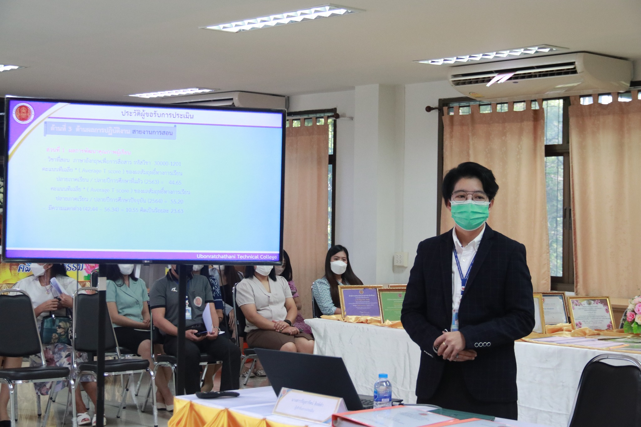 วันที่ ๖ ตุลาคม ๒๕๖๕ เวลา ๐๙.๐๐ น. นายธาตรี พิบูลมณฑา ผู้อำนวยการวิทยาลัยเทคนิคอุบลราชธานีให้เกียรติเป็นประธานกรรมการ ในการประเมินให้ข้าราชการครูและบุคลากรทางการศึกษา มีวิทยฐานะครูชำนาญการ ของนางสาวรัญยารัตน์ สิงห์คำ ครูแผนกวิชาสามัญสัมพันธ์ โดยมี นางสุรัสดา โมคทิพย์ ครูชำนาญการพิเศษ วิทยาลัยเกษตรและเทคโนโลยีอุบลราชธานี เป็นผู้ทรงคุณวุฒิ/กรรมการ และนางสาวแสงจันทร์ แหล่งหล้า ครูชำนาญการพิเศษ วิทยาลัยอาชีวศึกษาอุบลราชธานี เป็นกรรมการในการประเมิน ณ ศูนย์วิทยฐานะและพัฒนาครู บุคลากร วิทยาลัยเทคนิคอุบลราชธานี Ubon Ratchathani Technical College of Academic for Teacher and Personnel Development Center (ATD Center) ทั้งนี้มี นายบัณฑิตย์ เหลาทอง หัวหน้าศูนย์วิทยฐานะ และพัฒนาครู บุคลากร วิทยาลัยเทคนิคอุบลราชธานี พร้อมด้วยคณะครู แผนกวิชาสามัญสัมพันธ์ ร่วมให้กำลังใจ อย่างอบอุ่น
