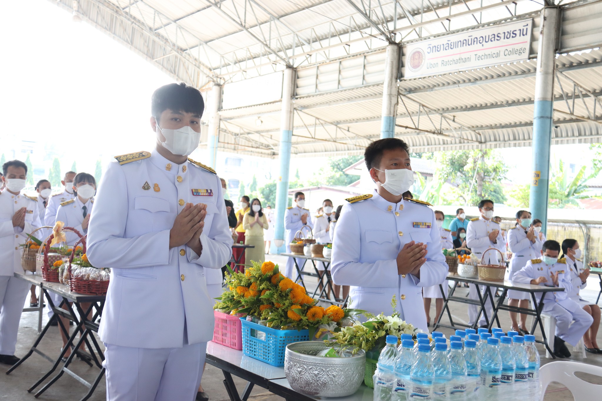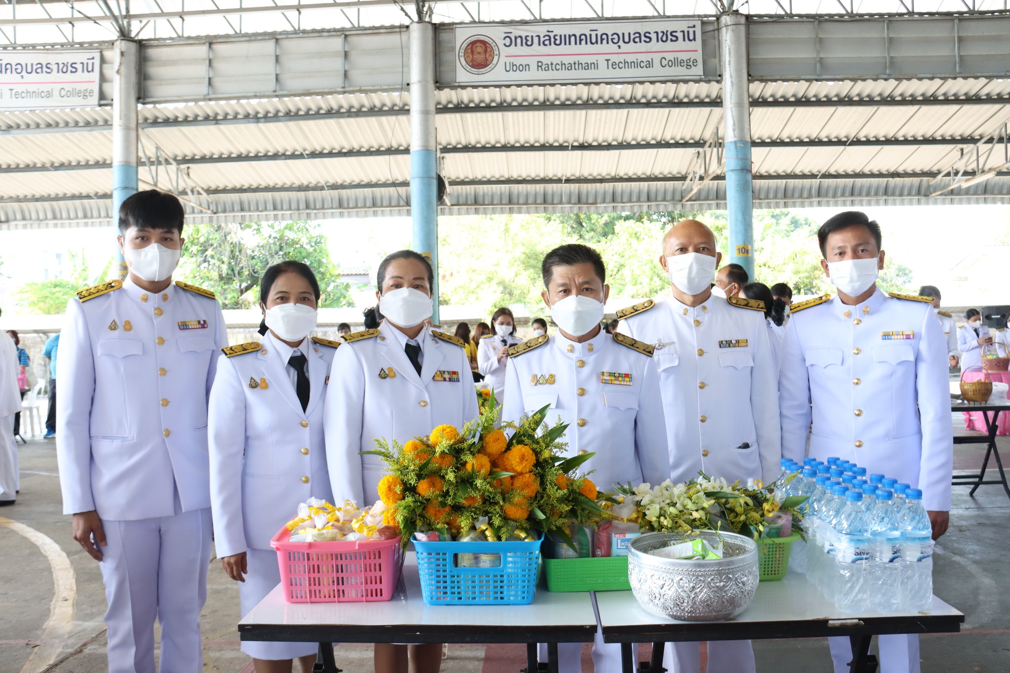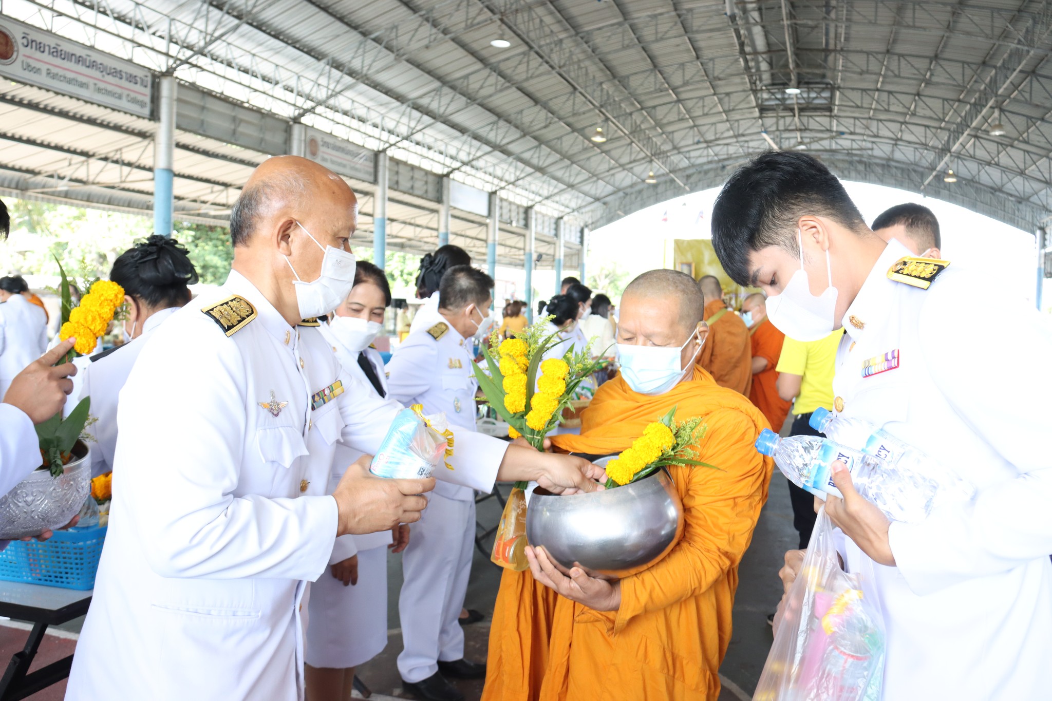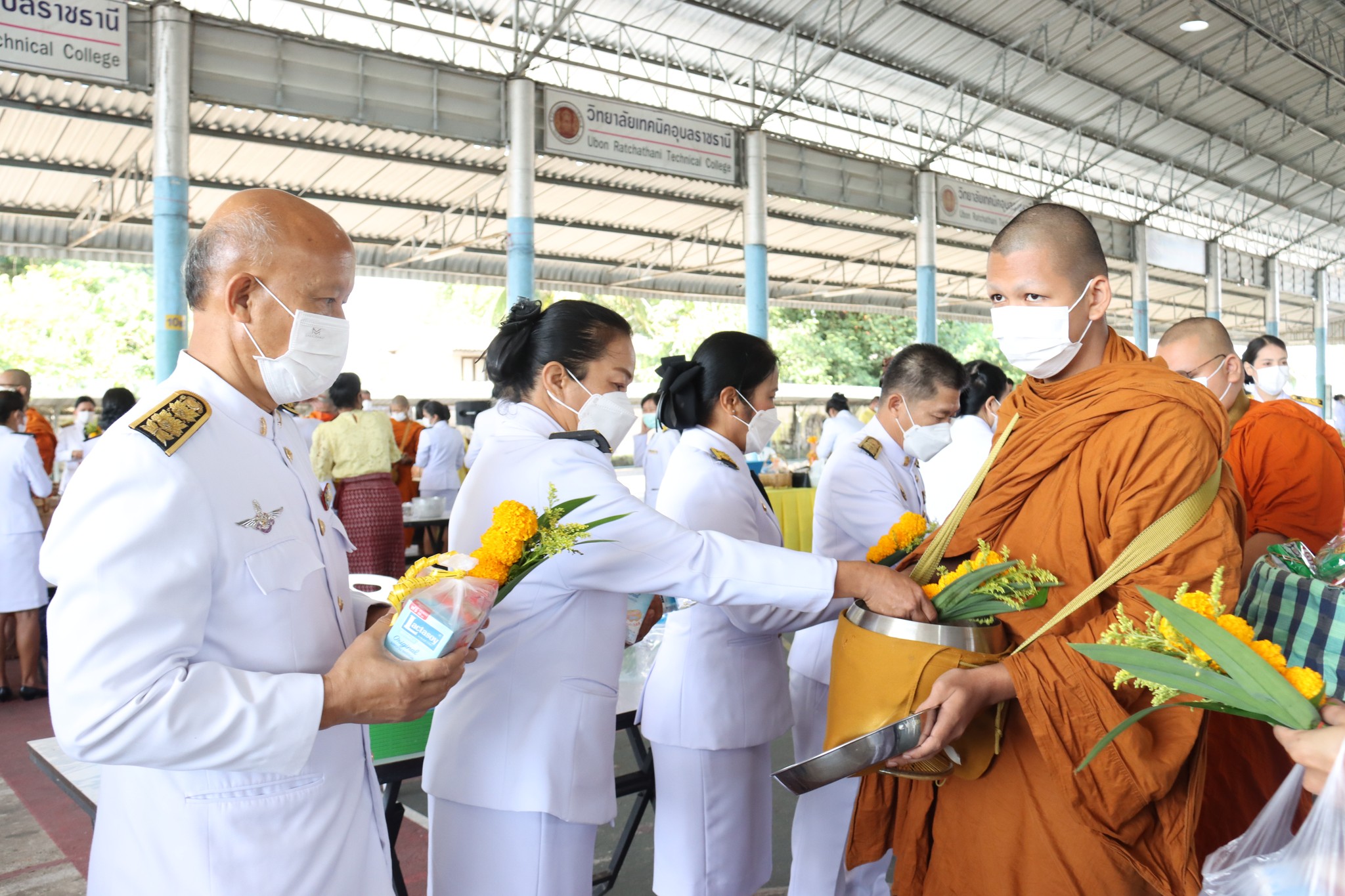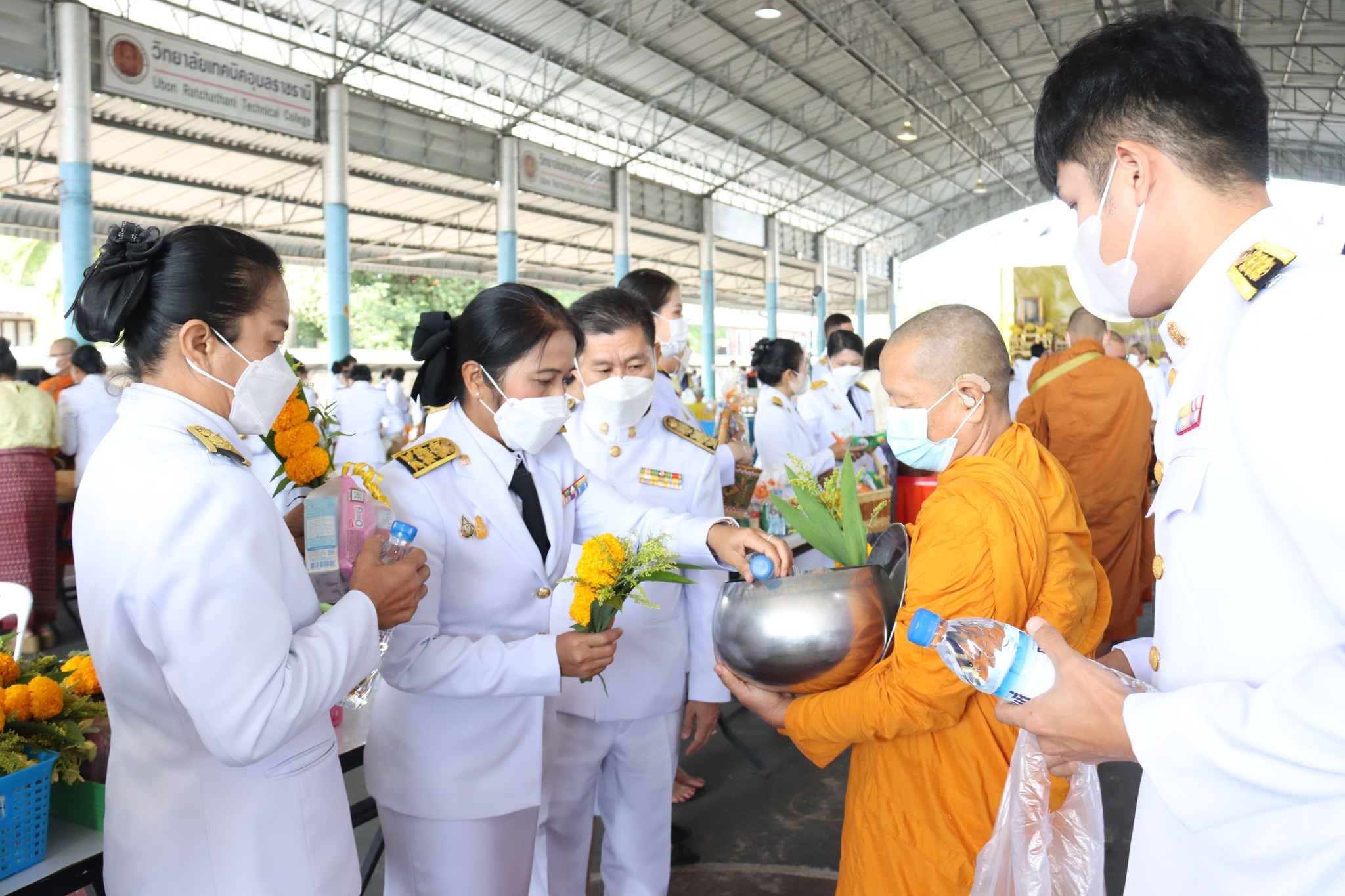 วันที่ ๑๓ ตุลาคม ๒๕๖๕ เวลา ๐๘.๐๐ น. นายธาตรี พิบูลมณฑาผู้อำนวยการวิทยาลัยเทคนิคอุบลราชธานี พร้อมด้วย นางสาวสายฝน สาระผล รองผู้อำนวยการฝ่ายบริหารทรัพยากร นางราตรี สะดีวงศ์ รองผู้อำนวยการ ฝ่ายแผนงานและความร่วมมือ และนายไวพจน์ ศรีธัญ รองผู้อำนวยการฝ่ายพัฒนากิจการนักเรียนนักศึกษา นำตัวแทนคณะครู และบุคลากรทางการศึกษา วิทยาลัยเทคนิคอุบลราชธานี เข้าร่วมพิธีทำบุญตักบาตร เพื่อถวายเป็นพระราชกุศล ณ หอประชุมโดมใหญ่ วิทยาลัยเทคนิคอุบลราชธานี ภายใต้กิจกรรมน้อมรำลึก ในพระมหากรุณาธิคุณเนื่องในวันคล้ายวันสวรรคต พระบาทสมเด็จพระบรมชนกาธิเบศร มหาภูมิพลอดุลยเดชมหาราช บรมนาถบพิตร ๑๓ ตุลาคม ๒๕๖๕ จังหวัดอุบลราชธานี โดยมี นายชลธี ยังตรง ผู้ว่าราชการจังหวัดอุบลราชธานี เป็นประธานในพิธี ทั้งนี้เพื่อแสดงความจงรักภักดี และน้อมรำลึกในพระมหากรุณาธิคุณที่มีต่อพสกนิกรชาวไทย