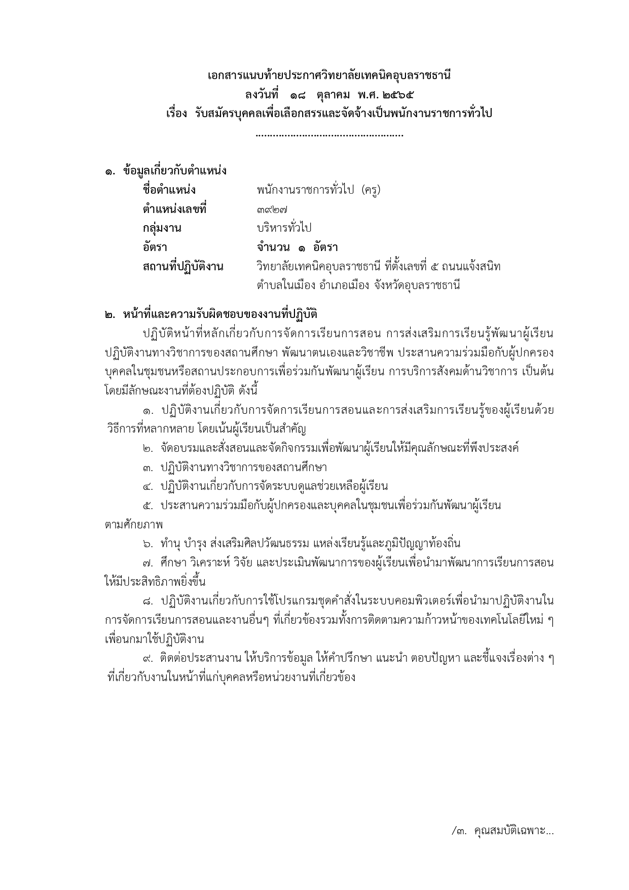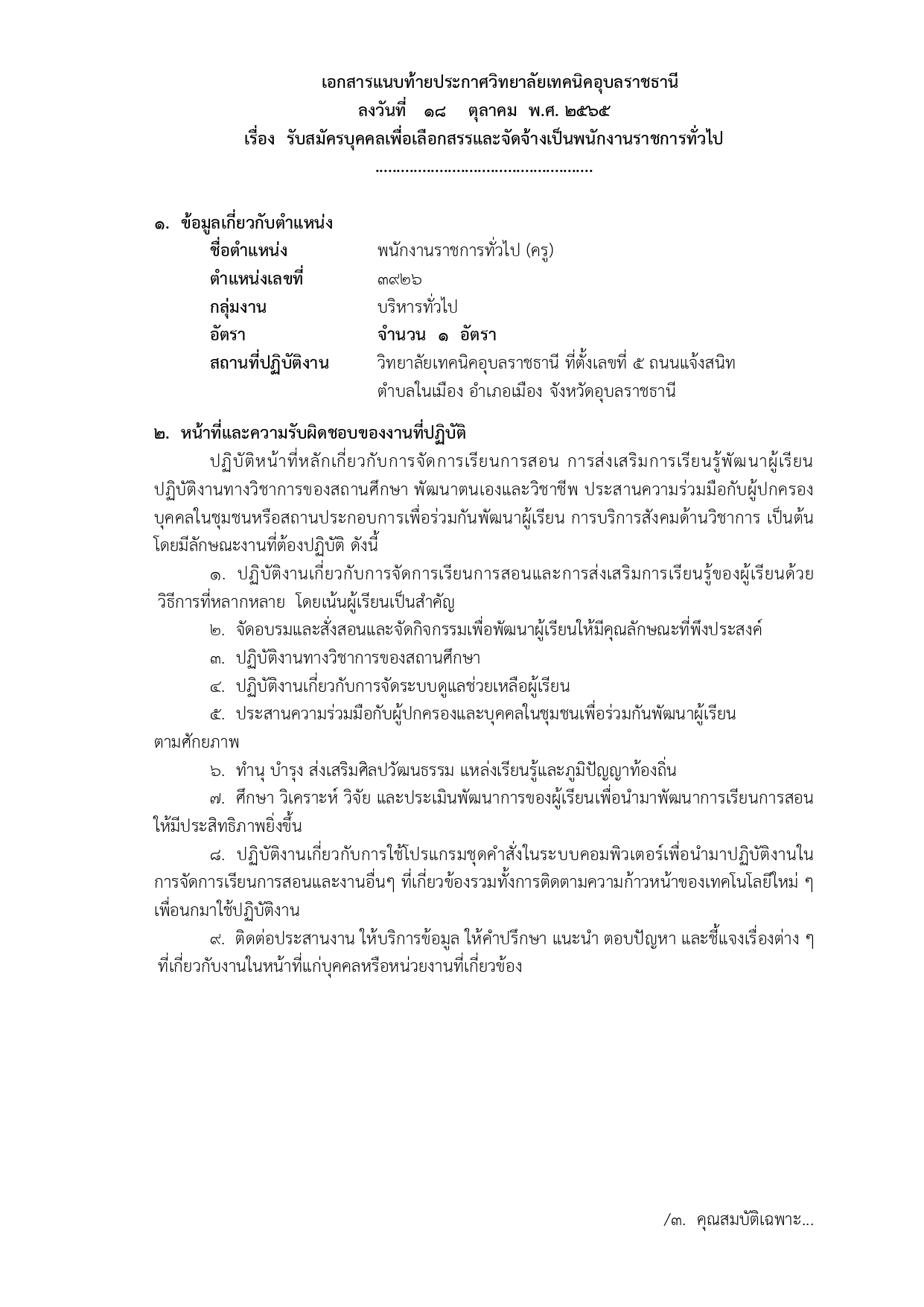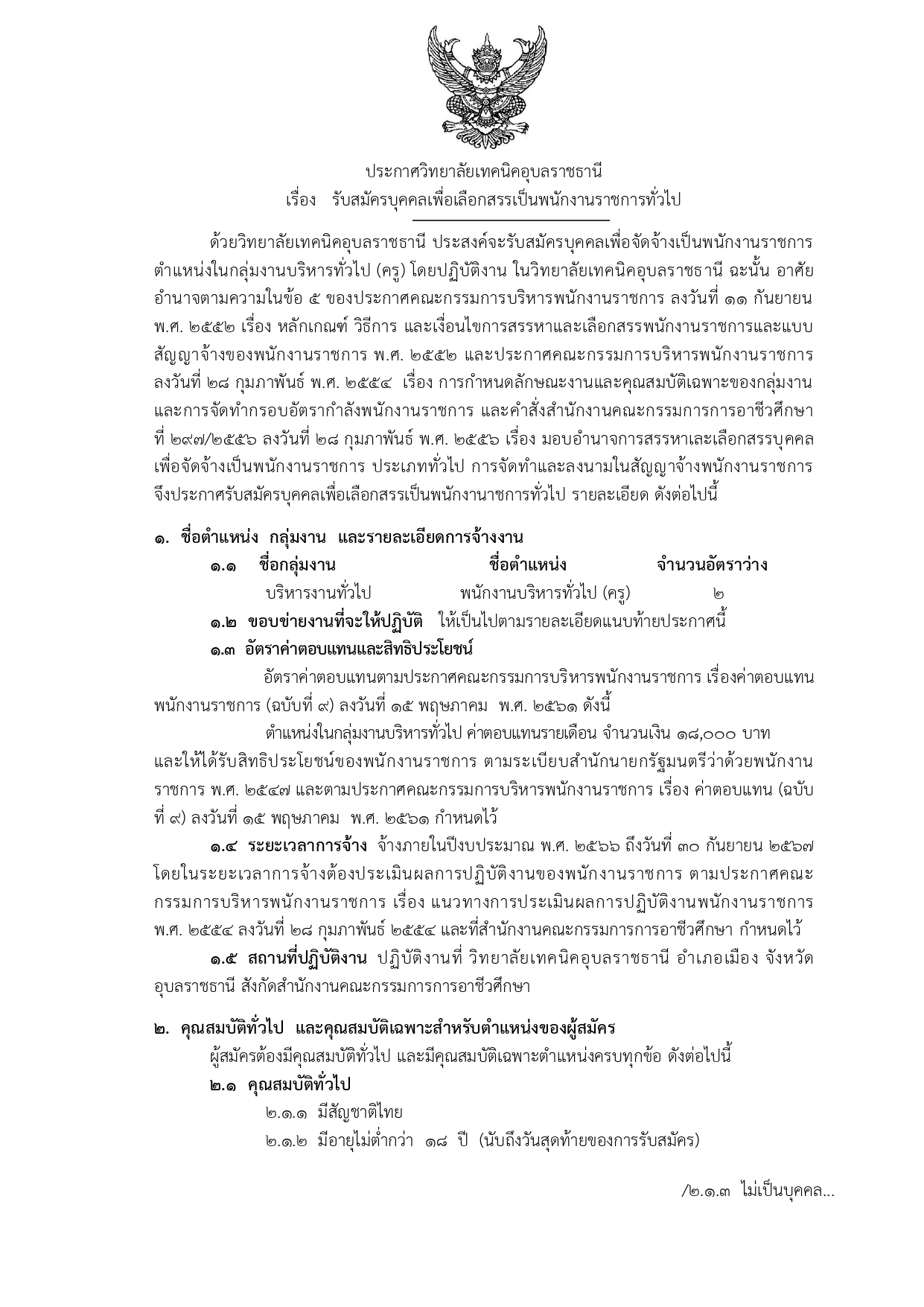 เรื่อง รับสมัครบุคคลเพื่อเลือกสรรเป็นพนักงานราชการทั่วไป