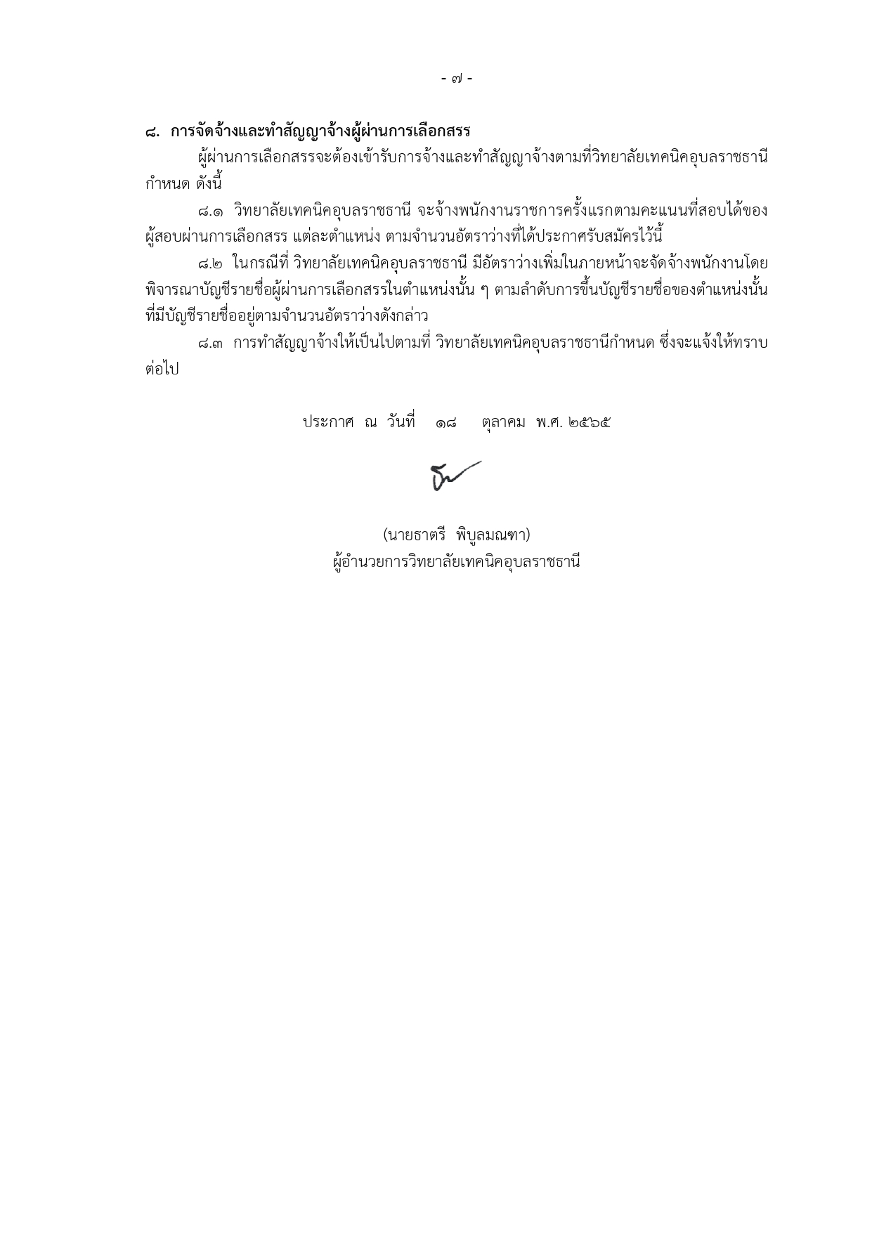 ประกาศวิทยาลัยเทคนิคอุบลราชธานี
