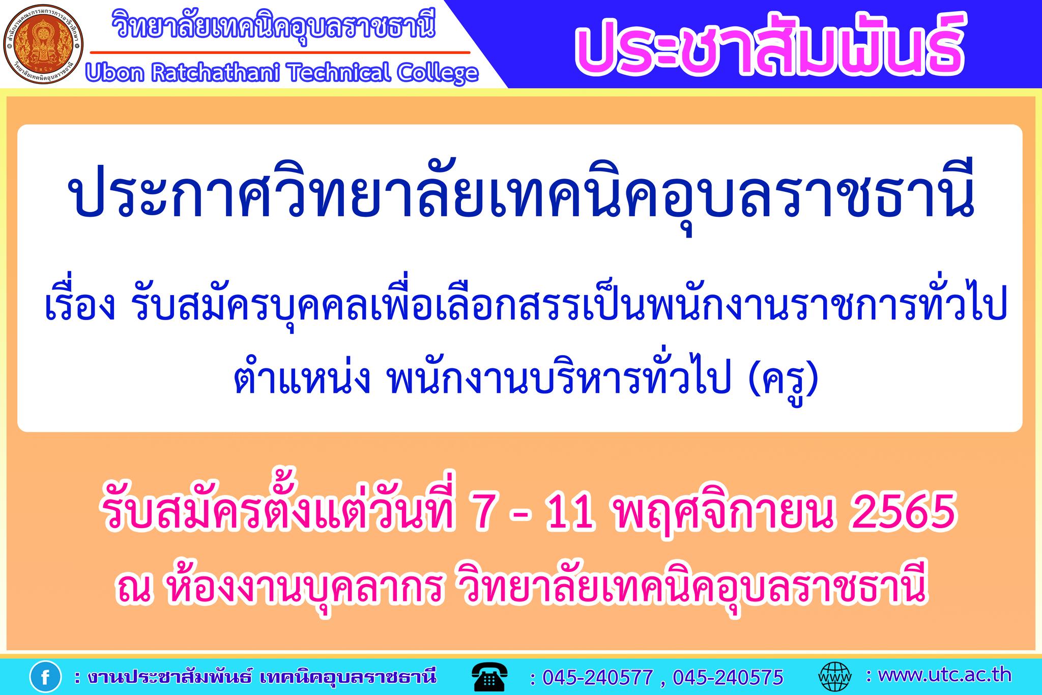 รับสมัครบุคคลเพื่อเลือกสรรเป็นพนักงานราชการทั่วไป ตำแหน่ง พนักงานบริหารทั่วไป (ครู)