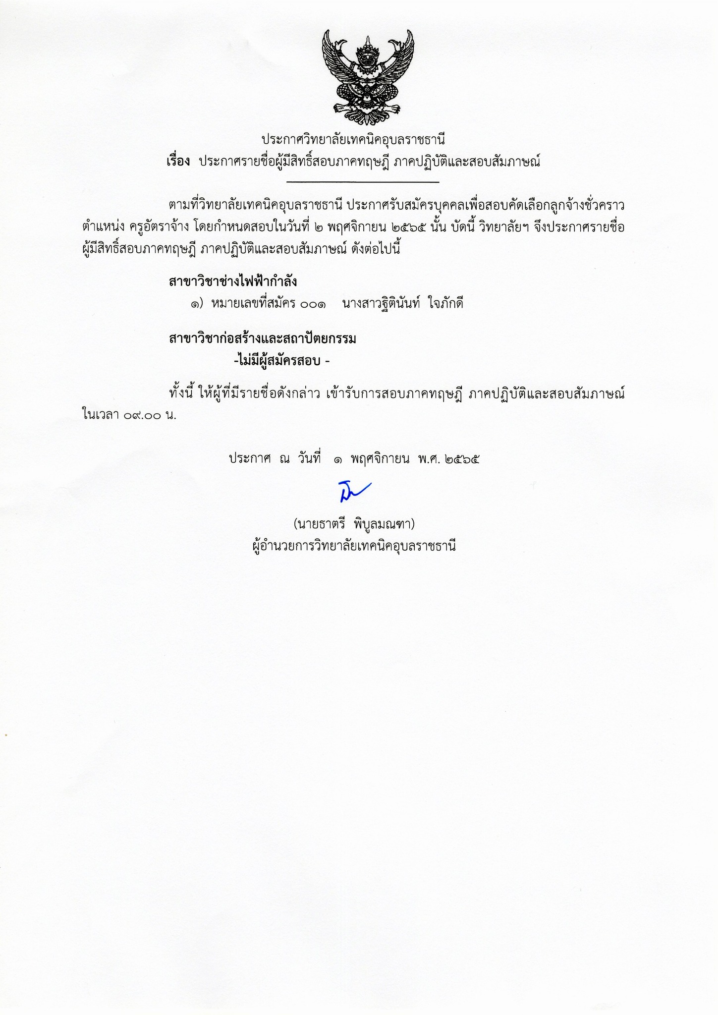 ประกาศวิทยาลัยเทคนิคอุบลราชธานี