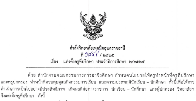 คำสั่งวิทยาลัยเทคนิคอุบลราชธานี 2566