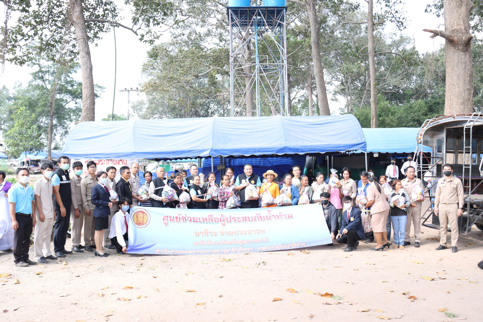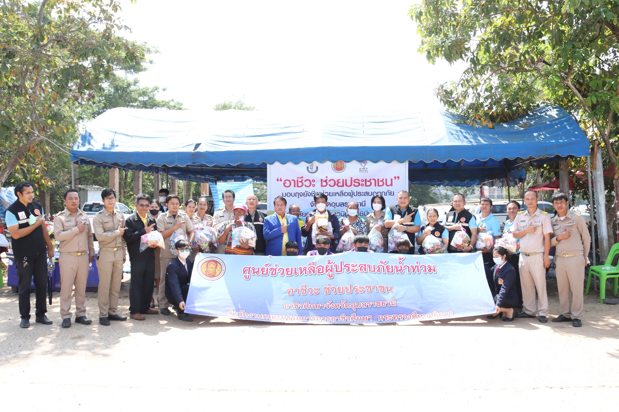 วท.อุบลฯ ร่วมกับ วก.วารินทร์ และ วก.นวมินทราชินีมุกดาหาร มอบถุงยังชีพ และเครื่องอุปกโภคแก่ผู้ประสบอุทกภัย