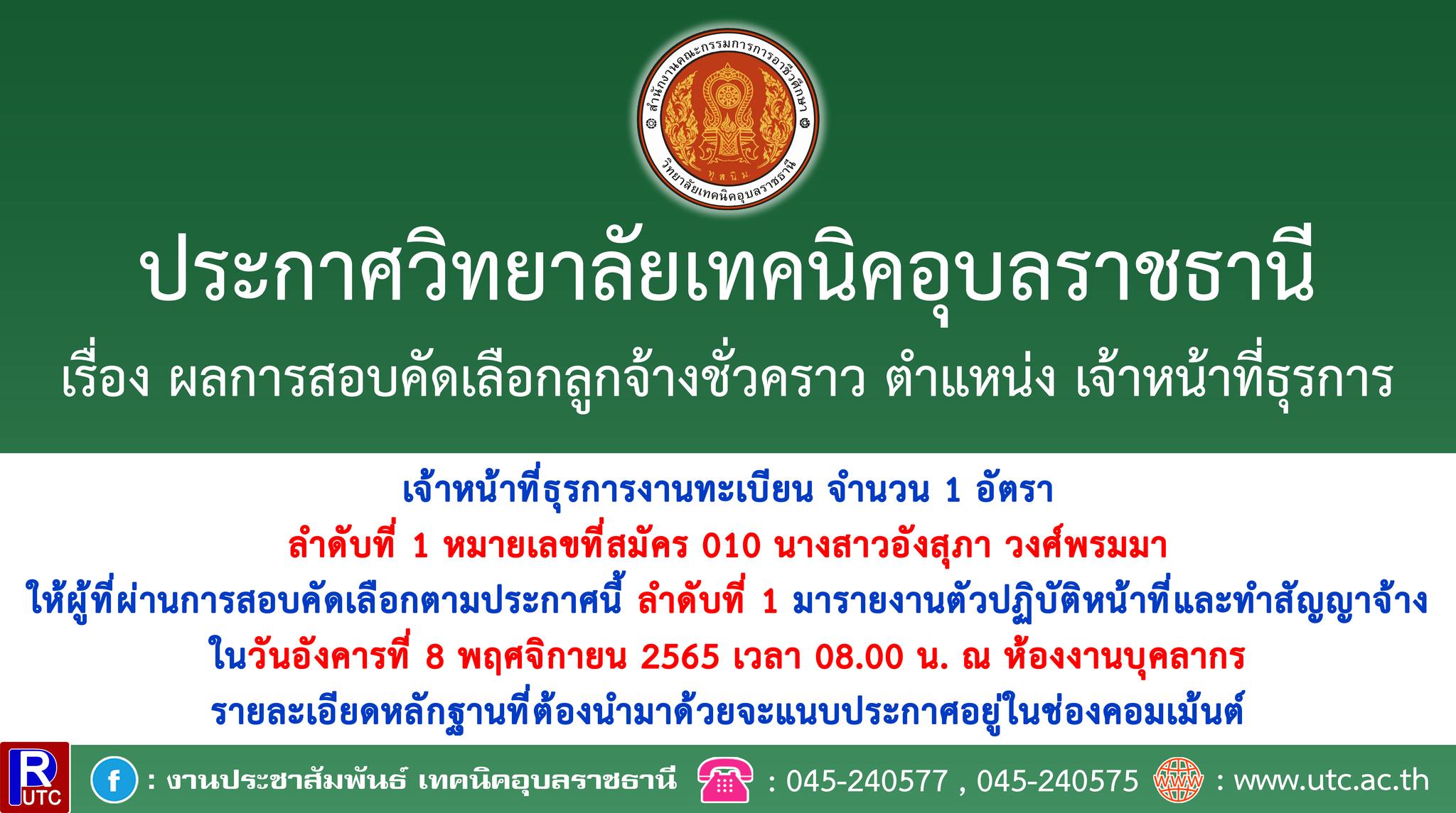ประกาศวิทยาลัยเทคนิคอุบลราชธานี