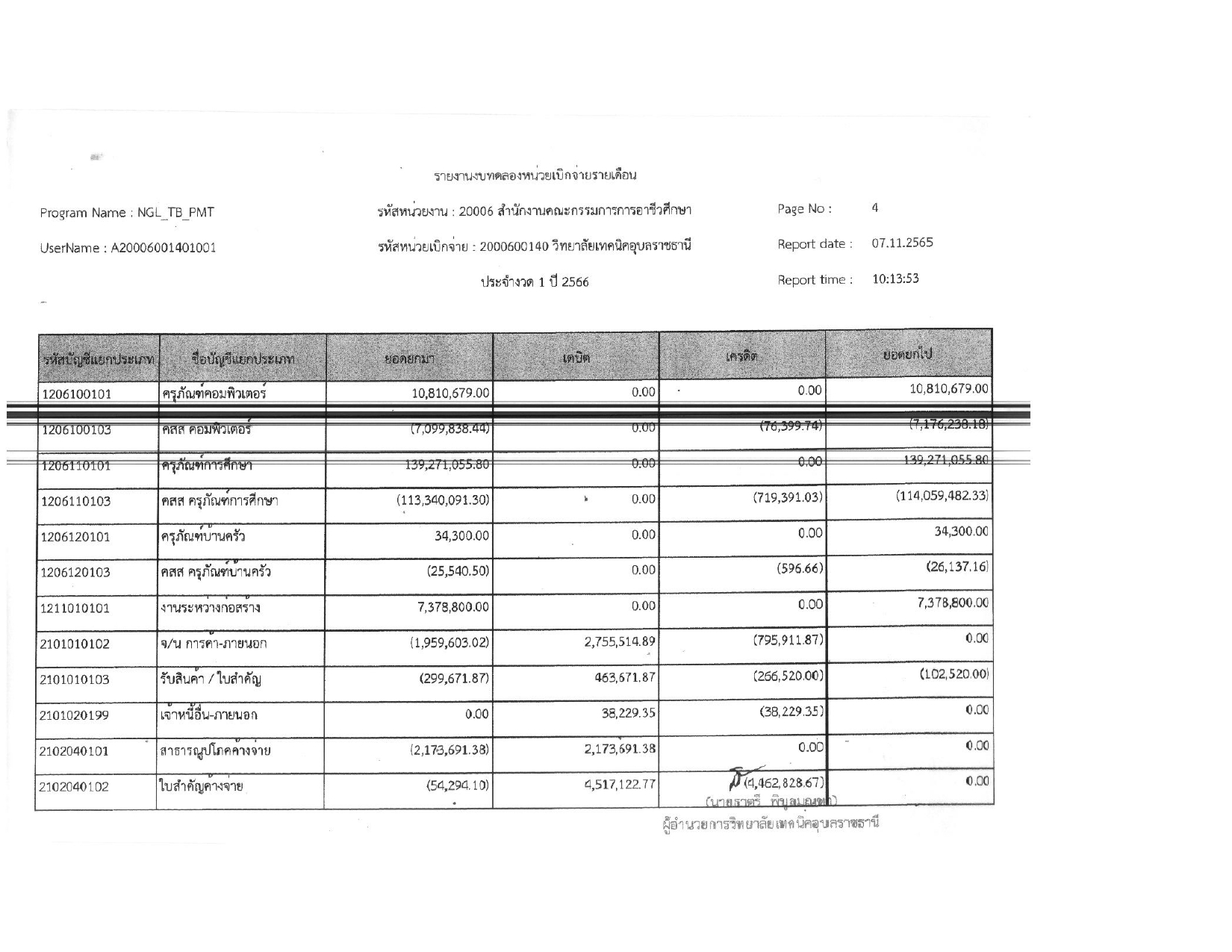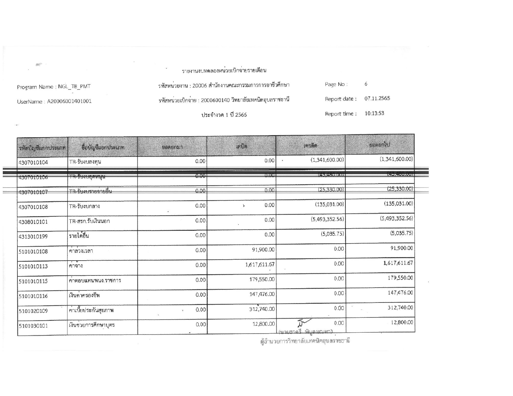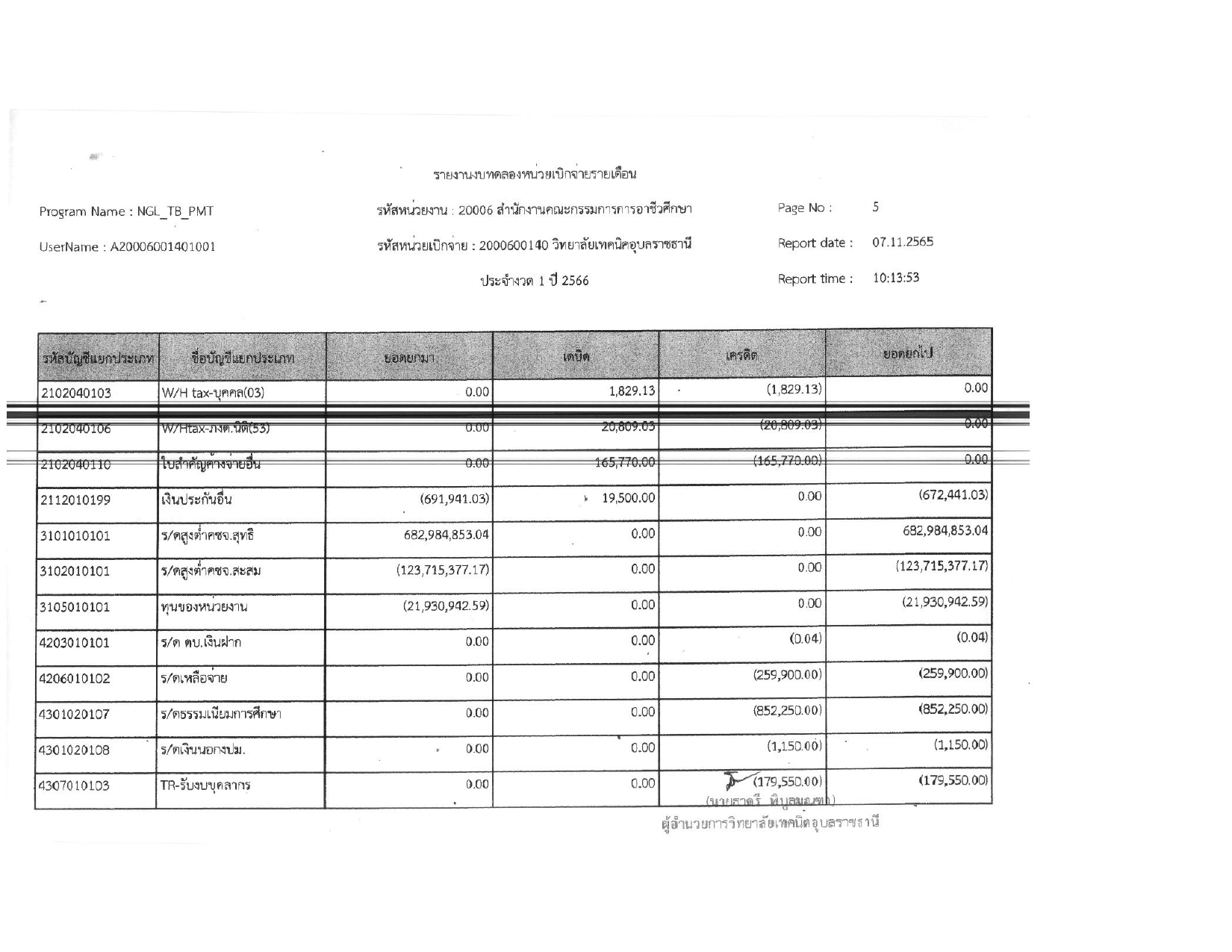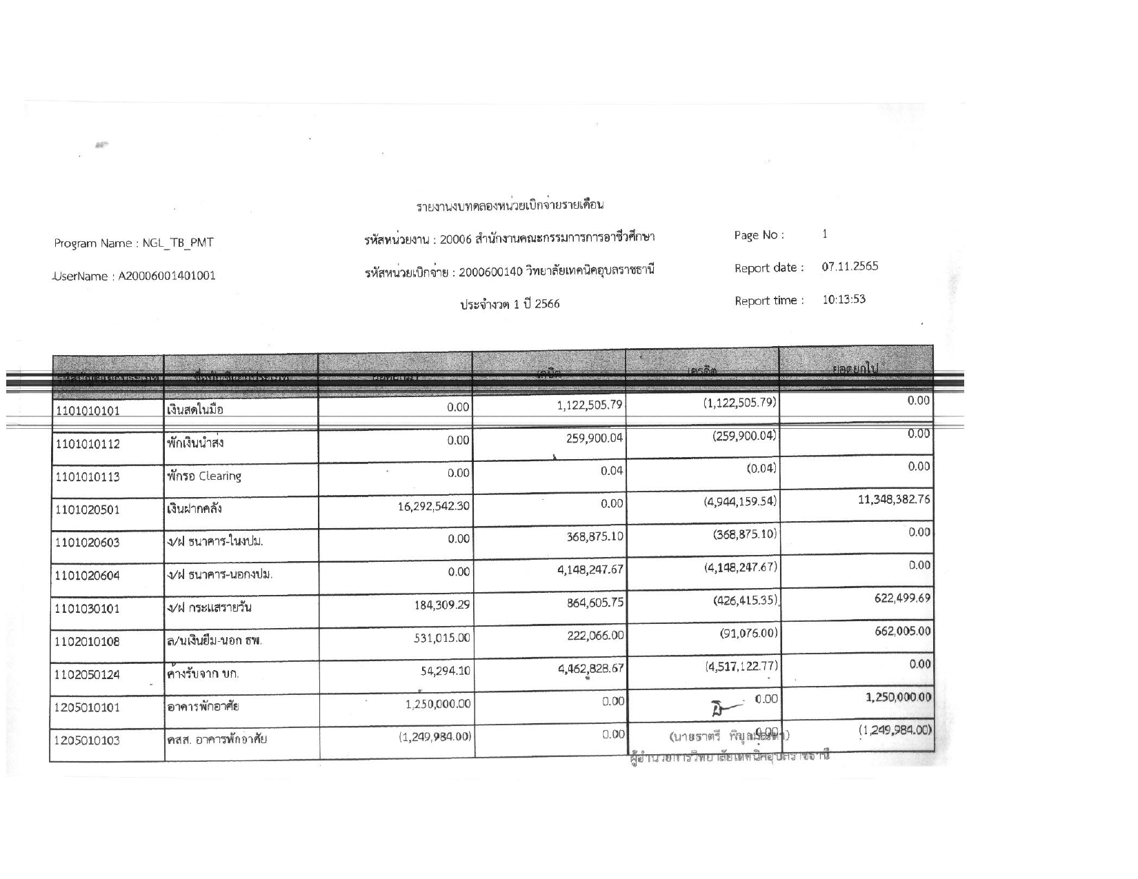 รายงานงบทดลองประจำเดือน ตุลาคม 2565