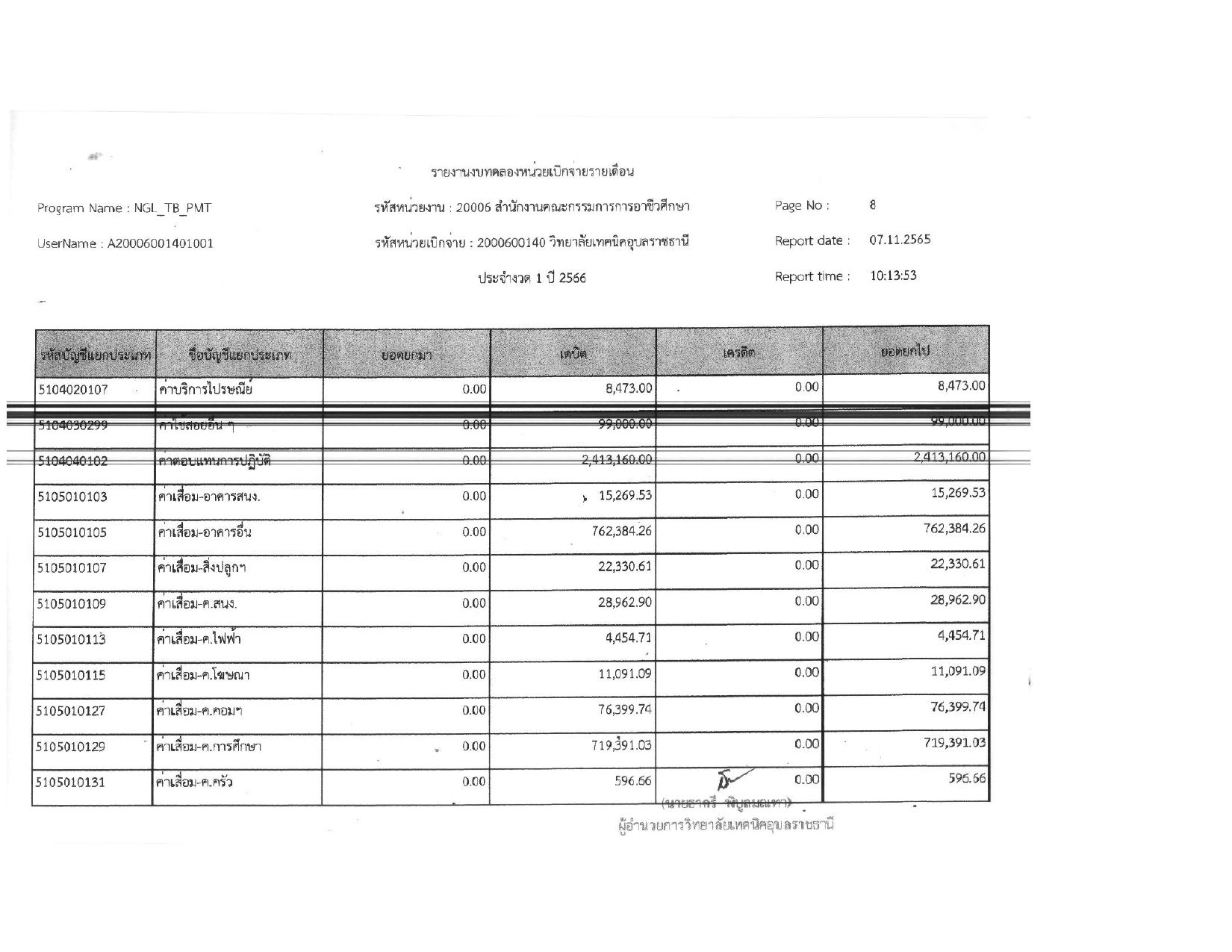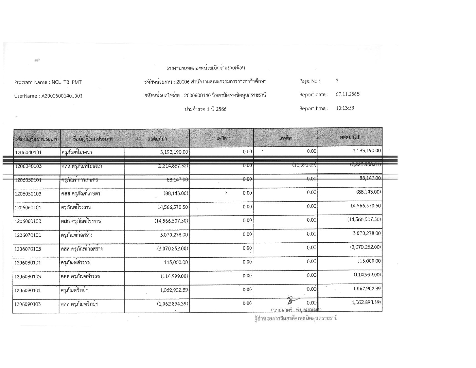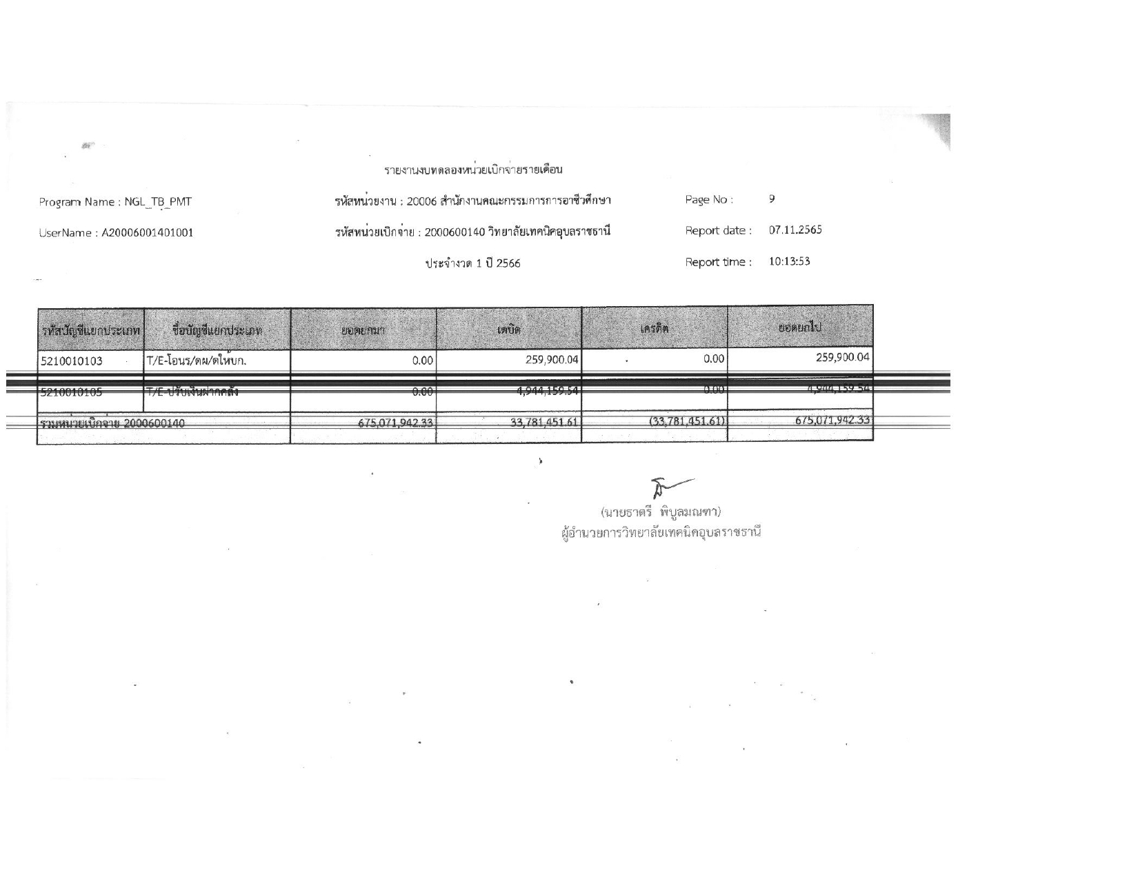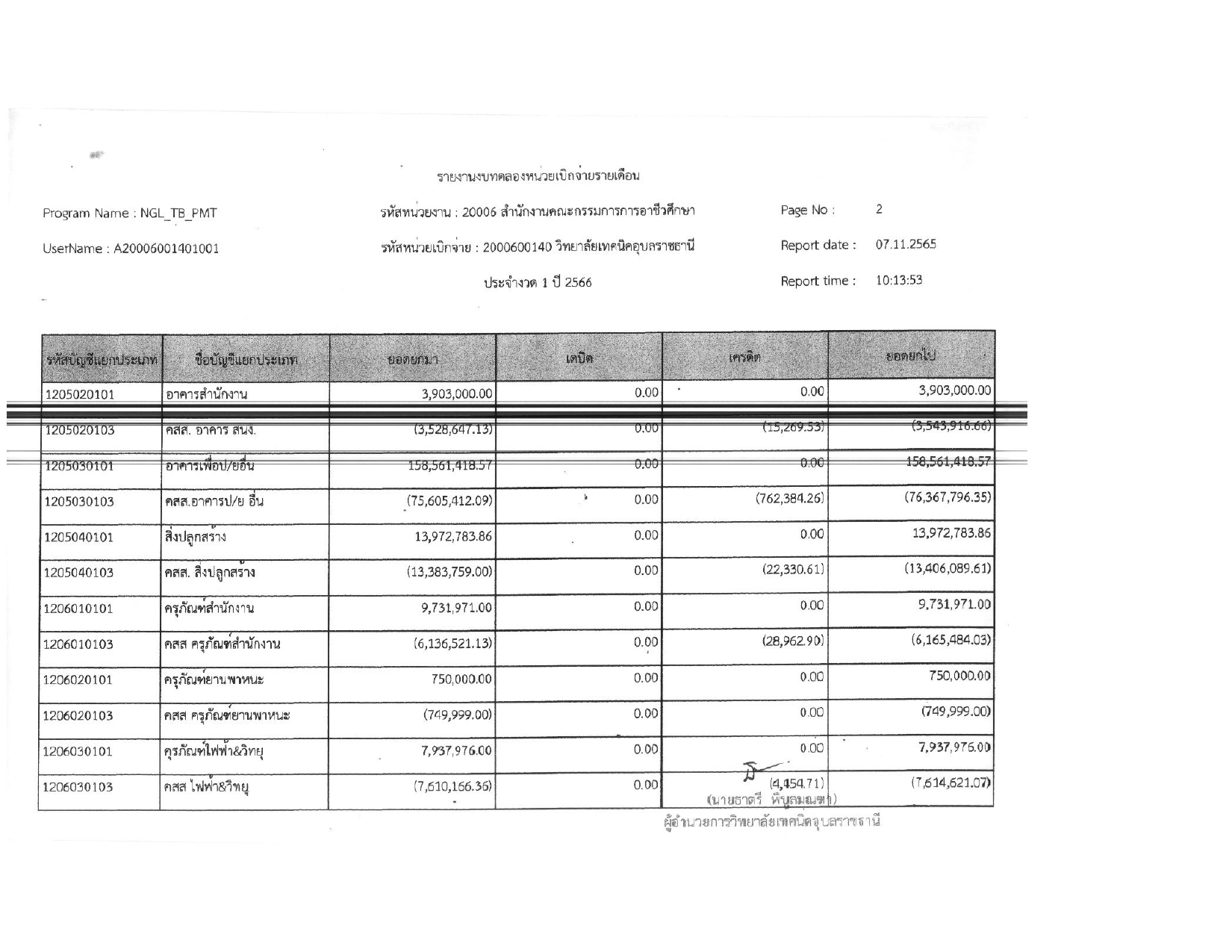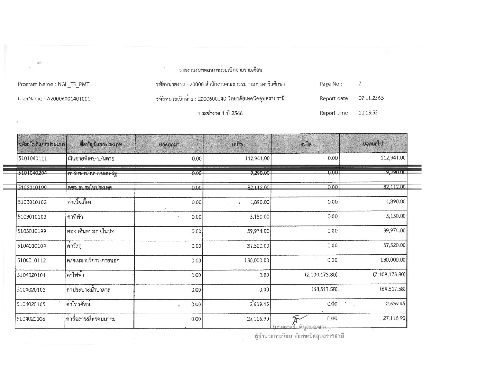 รายงานงบทดลองประจำเดือน ตุลาคม 2565
