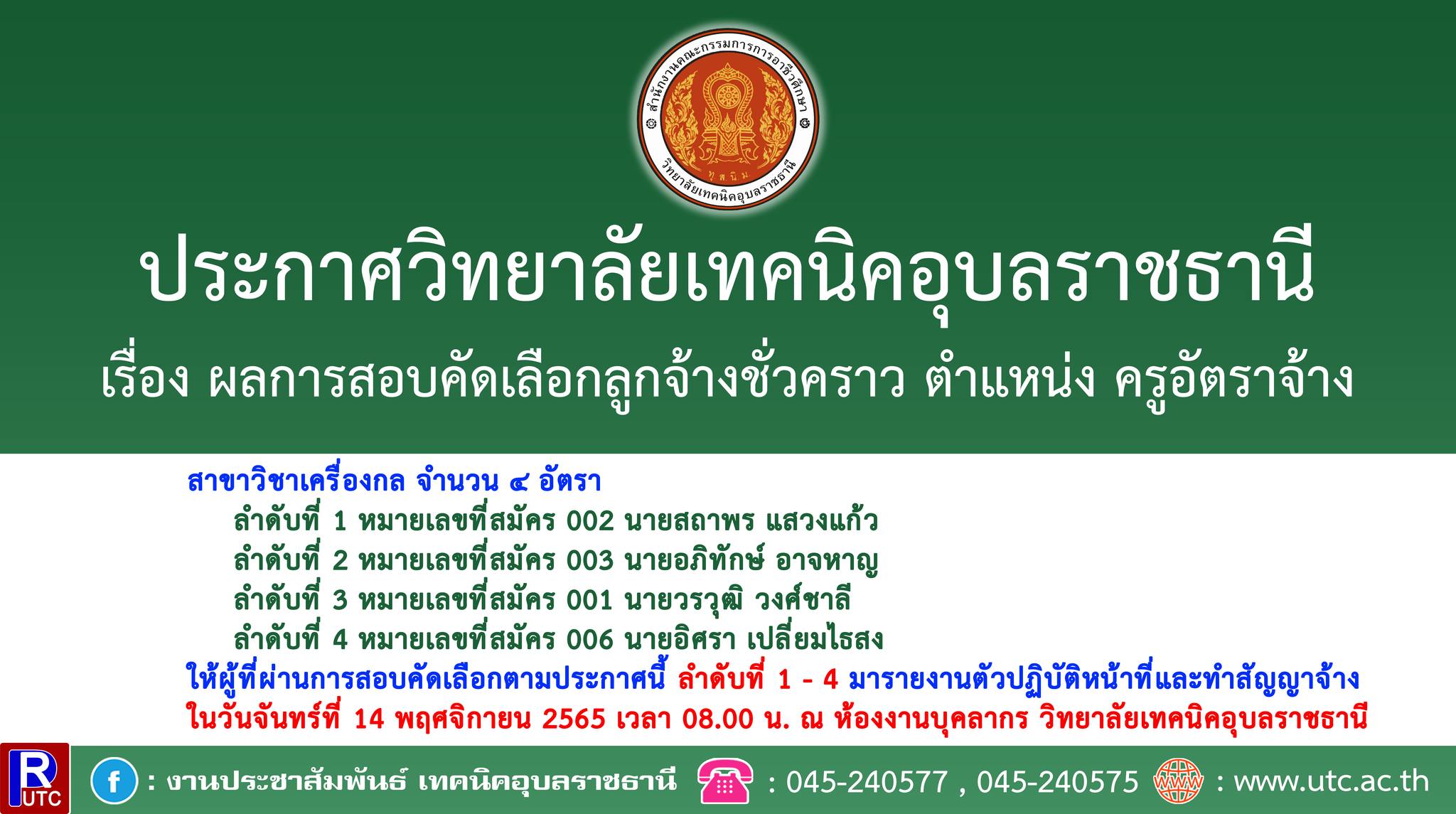 ประกาศวิทยาลัยเทคนิคอุบลราชธานี