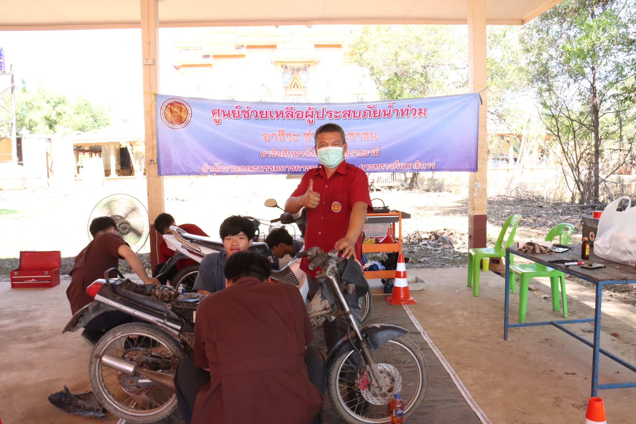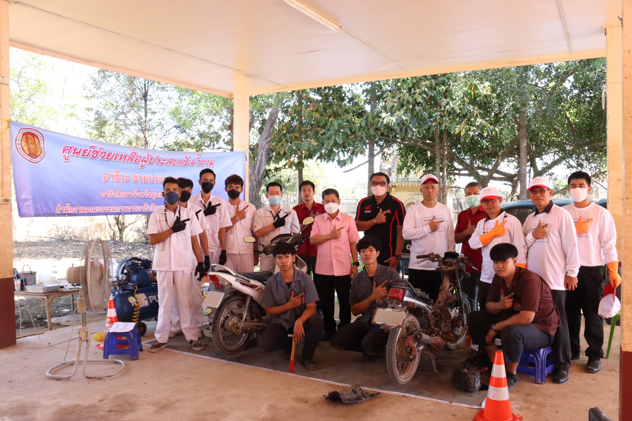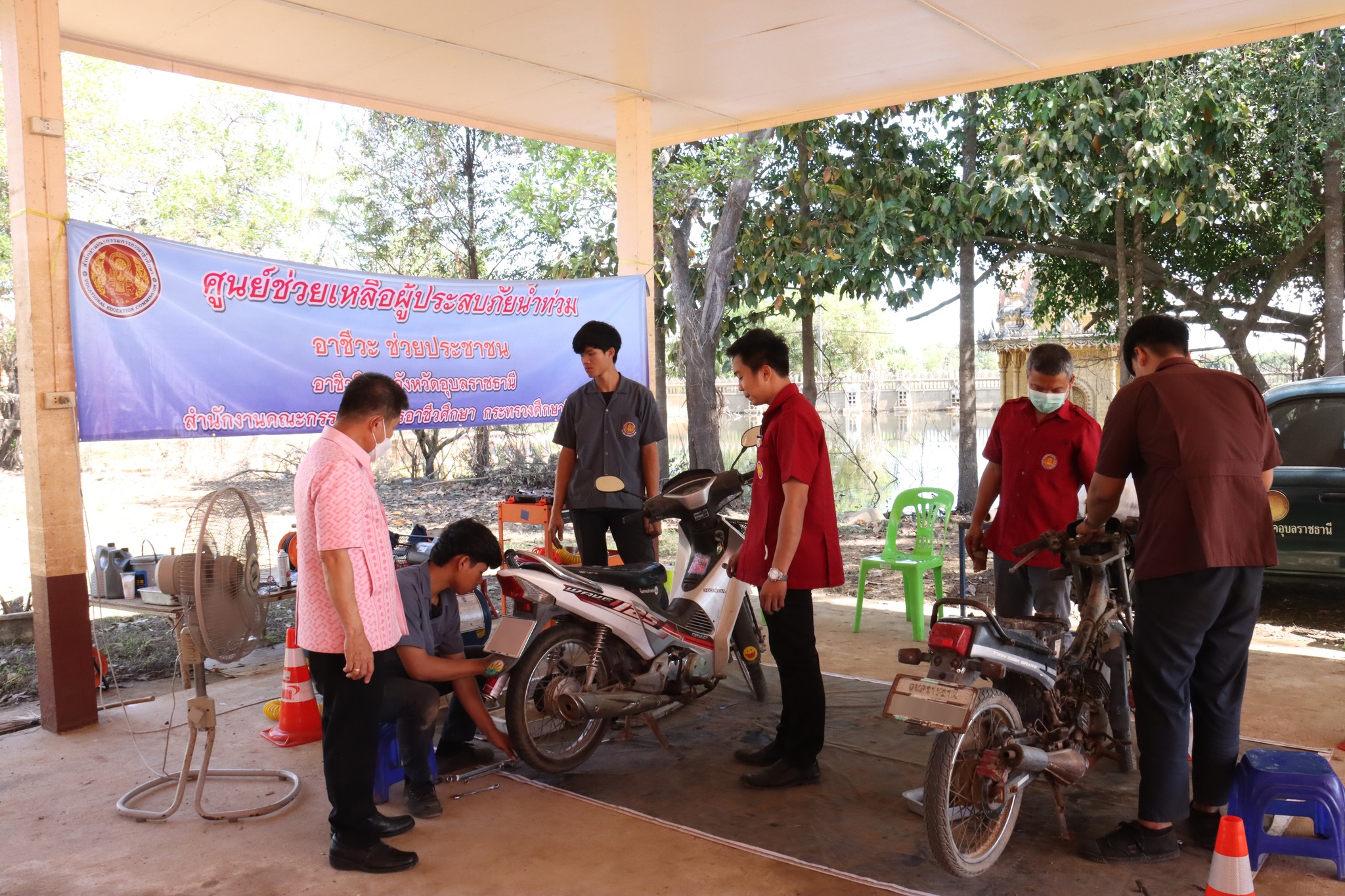 วท.อุบลฯ กับบริษัทไทยฮอนด้า เเละบริษัทเกียรติสรนนท์จัดโครงการจิตอาสาบริการซ่อมรถจักรยานยนต์ฟรีช่วยเหลือผู้ประสบอุทกภัย