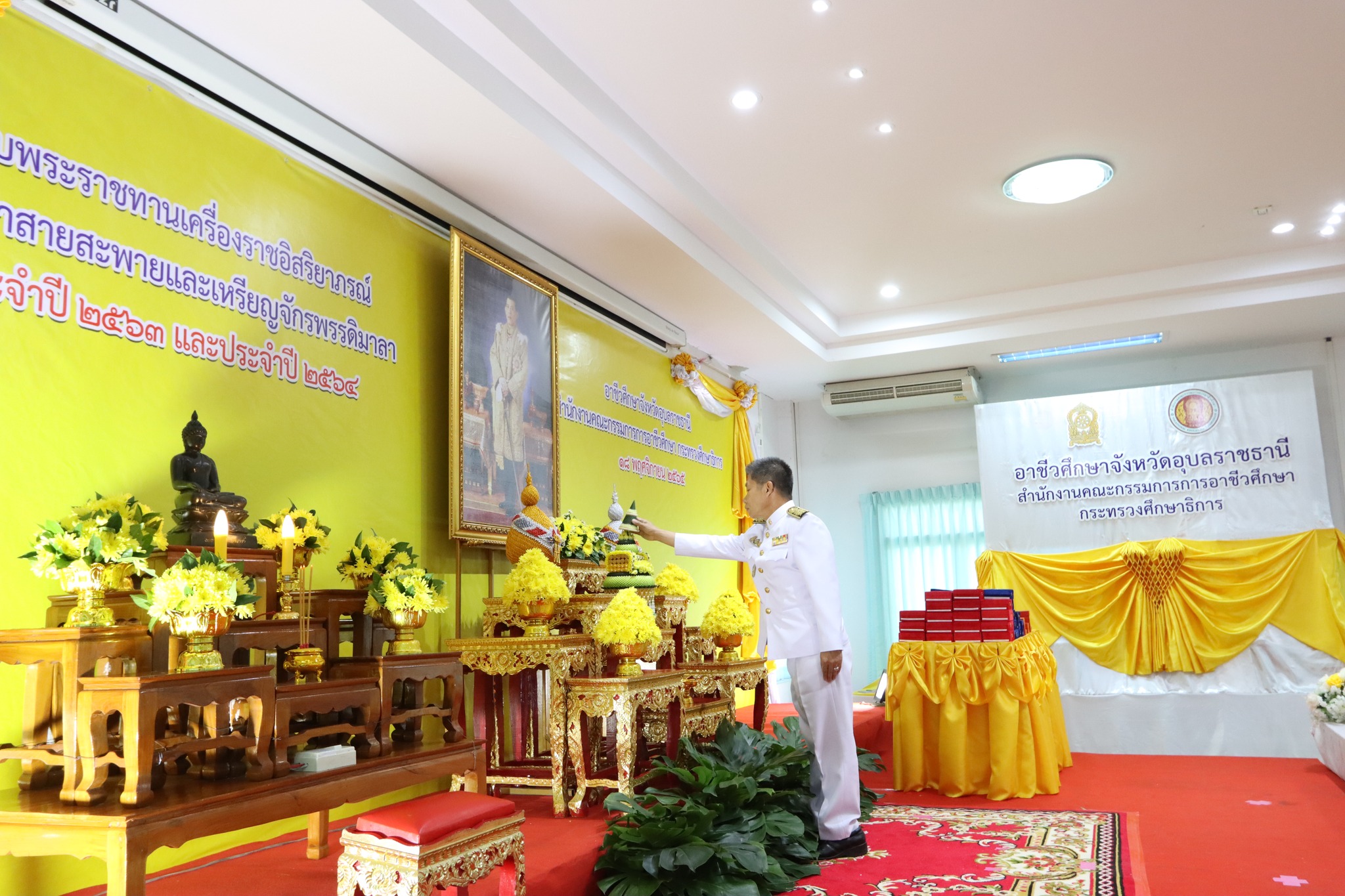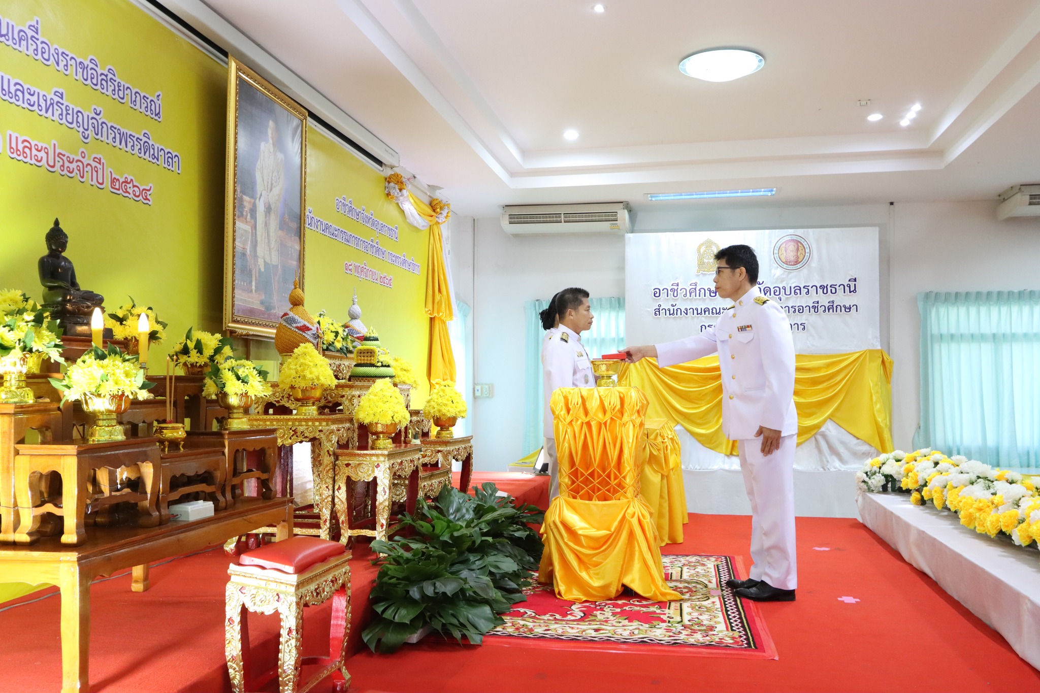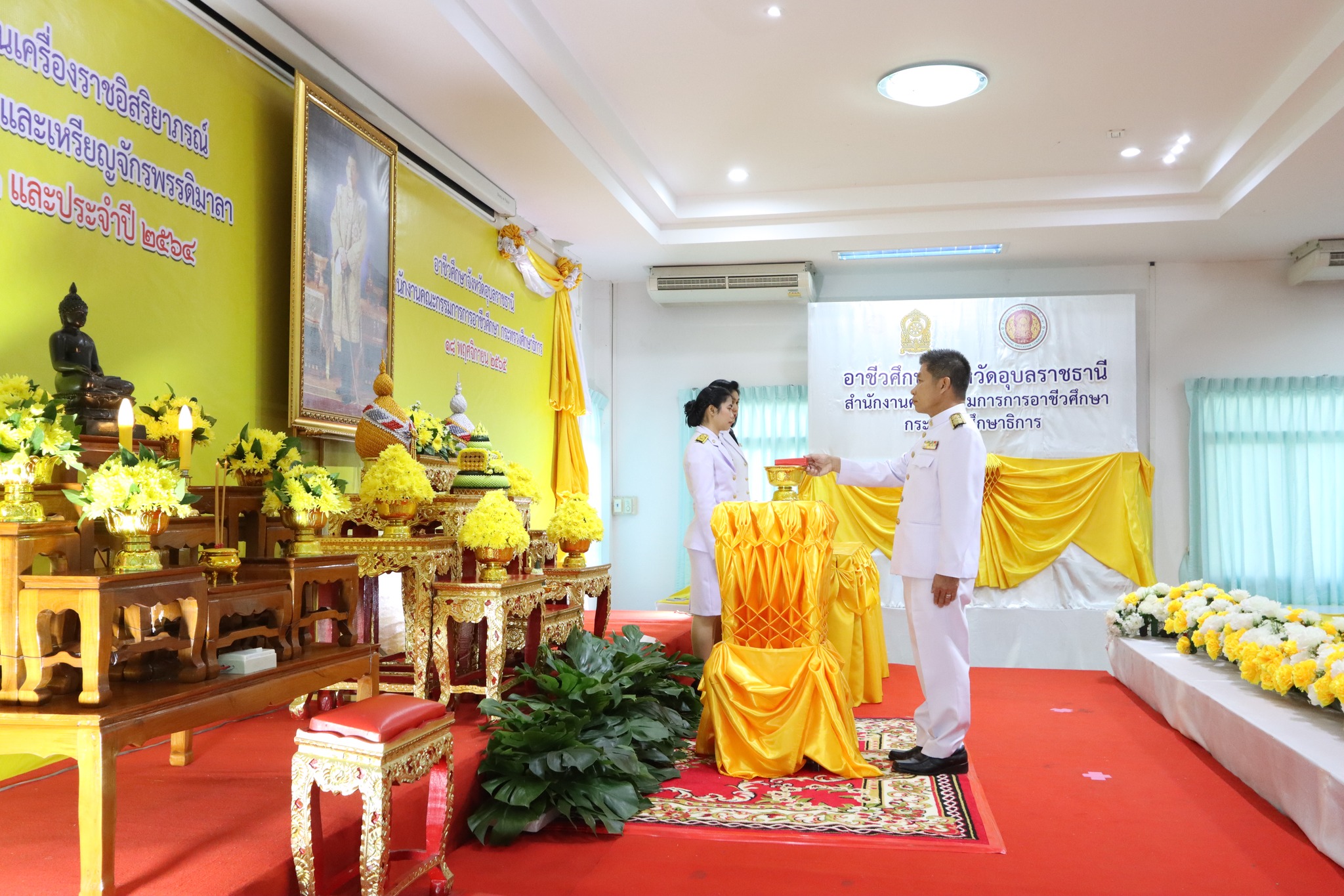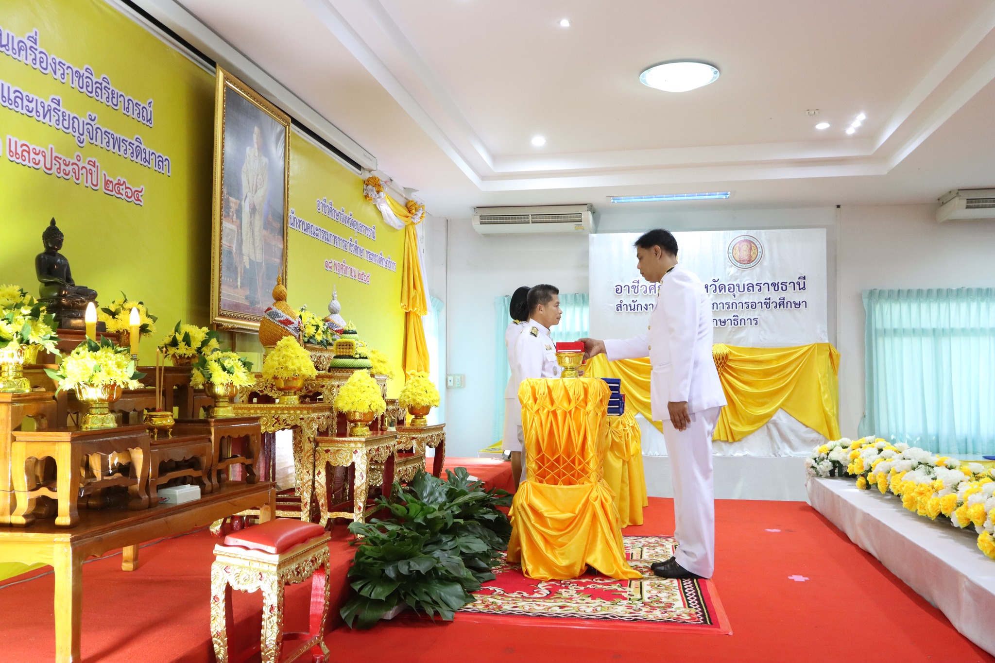 วันที่ ๑๘ พฤศจิกายน ๒๕๖๕ เวลา ๑๐.๐๐ น. นายธาตรีพิบูลมณฑา ผู้อำนวยการวิทยาลัยเทคนิคอุบลราชธานี ประธานกรรมการอาชีวศึกษาจังหวัดอุบลราชธานี ให้เกียรติเป็นประธานในพิธีรับพระราชทานเครื่องราชอิสริยาภรณ์ชั้นต่ำกว่าสายสะพายและเหรียญจักรพรรดิมาลา ประจำปี ๒๕๖๓ และประจำปี ๒๕๖๔ เบื้องหน้าพระบรมฉายาลักษณ์พระบาทสมเด็จพระปรเมนทรรามาธิบดีศรีสินทรมหาวชิราลงกรณ พระวชิรเกล้าเจ้าอยู่หัว รัชกาลที่ ๑๐ ณ ห้องประชุมบัวแสด วิทยาลัยเทคนิคอุบลราชธานี โดยมี นางราตรี สะดีวงศ์ รองผู้อำนวยการฝ่ายแผนงานและความร่วมมือ/เลขานุการอาชีวศึกษาจังหวัดอุบลราชธานี กล่าวรายงานในพิธี ในการนี้มีข้าราชการครู ลูกจ้างประจำ และพนักงานราชการ สังกัดอาชีวศึกษาจังหวัดอุบลราชธานี ได้รับพระราชทานเครื่องราชอิสริยาภรณ์ชั้นต่ำกว่าสายสะพายและเหรียญจักรพรรดิมาลาจำนวน ๑๒๔ ราย ดังนี้ ชั้นที่ ๒ ทวีติยาภรณ์ช้างเผือก จำนวน ๒๐ ราย ชั้นที่ ๒ ทวีติยาภรณ์มงกุฎไทย จำนวน ๒๐ ราย ชั้นที่ ๓ ตริตาภรณ์มงกุฏไทย จำนวน ๑๕ ราย ชั้นที่ ๔ จัตุรถาภรณ์ช้างเผือก จำนวน ๒ ราย ชั้นที่ ๔ จัตุรถาภรณ์มงกุฏไทย จำนวน ๕ ราย ชั้นที่ ๕ เบ็ญจมาภรณ์ช้างเผือก จำนวน ๓ ราย และเหรียญจักรพรรดิมาลา จำนวน ๕๙ ราย ทั้งนี้เพื่อเป็นการยกย่อง เชิดชูเกียรติ ให้แก่ข้าราชการที่มีความประพฤติดีงาม มีความอุตสาหะ ซื่อสัตย์ และเอาใจใส่ต่อหน้าที่ราชการอย่างดียิ่ง