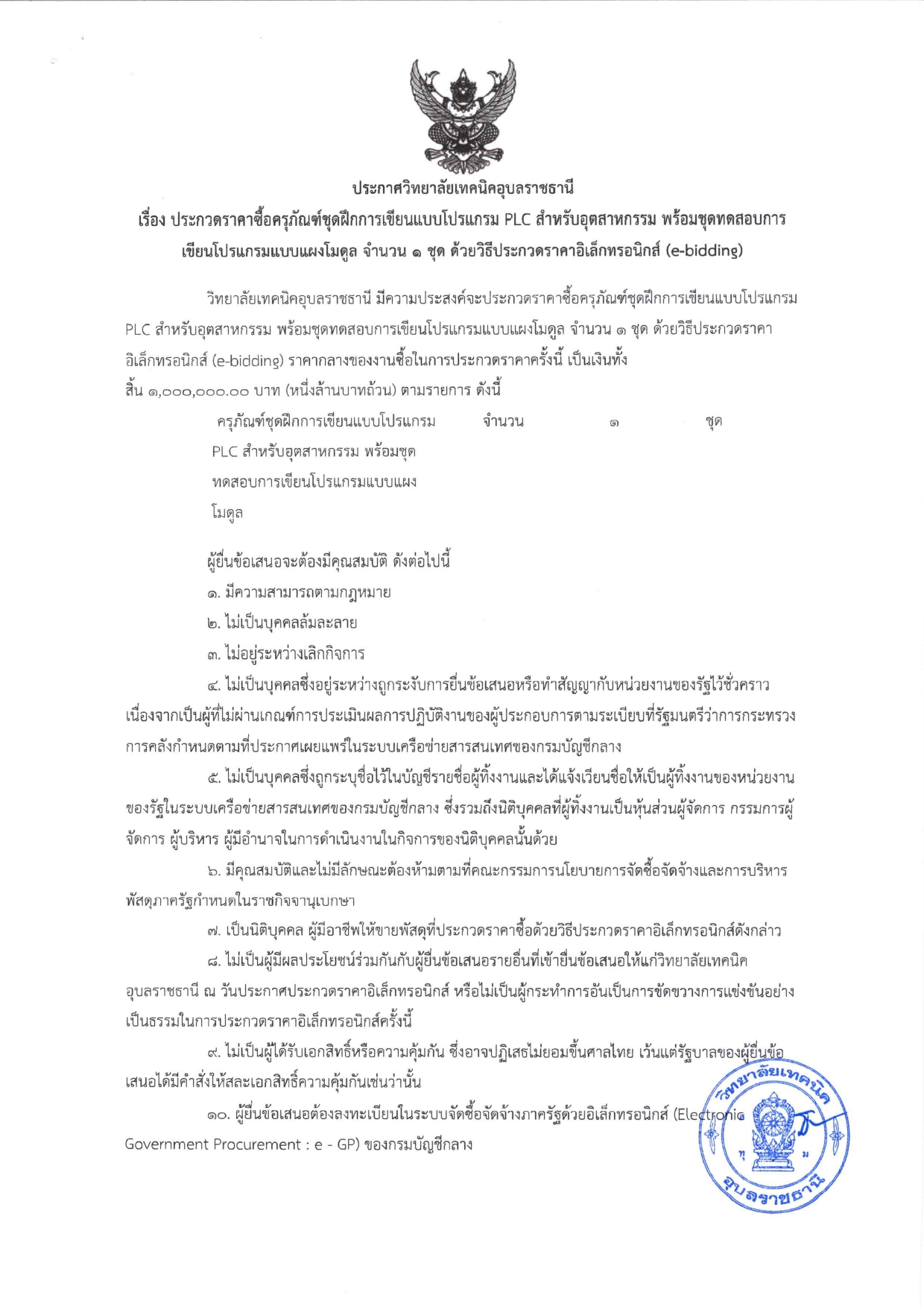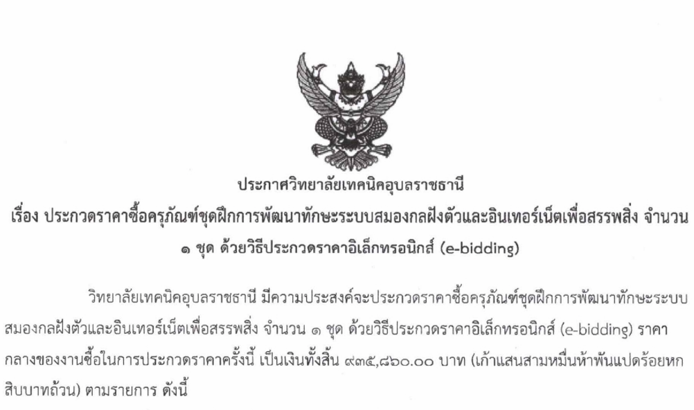 ประกวดราคาซื้อครุภัณฑ์ชุดฝึกการพัฒนาทักษะระบบสมองกลฝังตัวและอินเทอร์เน็ตเพื่อสรรพสิ่ง จำนวน 1 ชุด ด้วยวิธีประกวดราคาอิเล็กทรอนิกส์ (e-bidding)