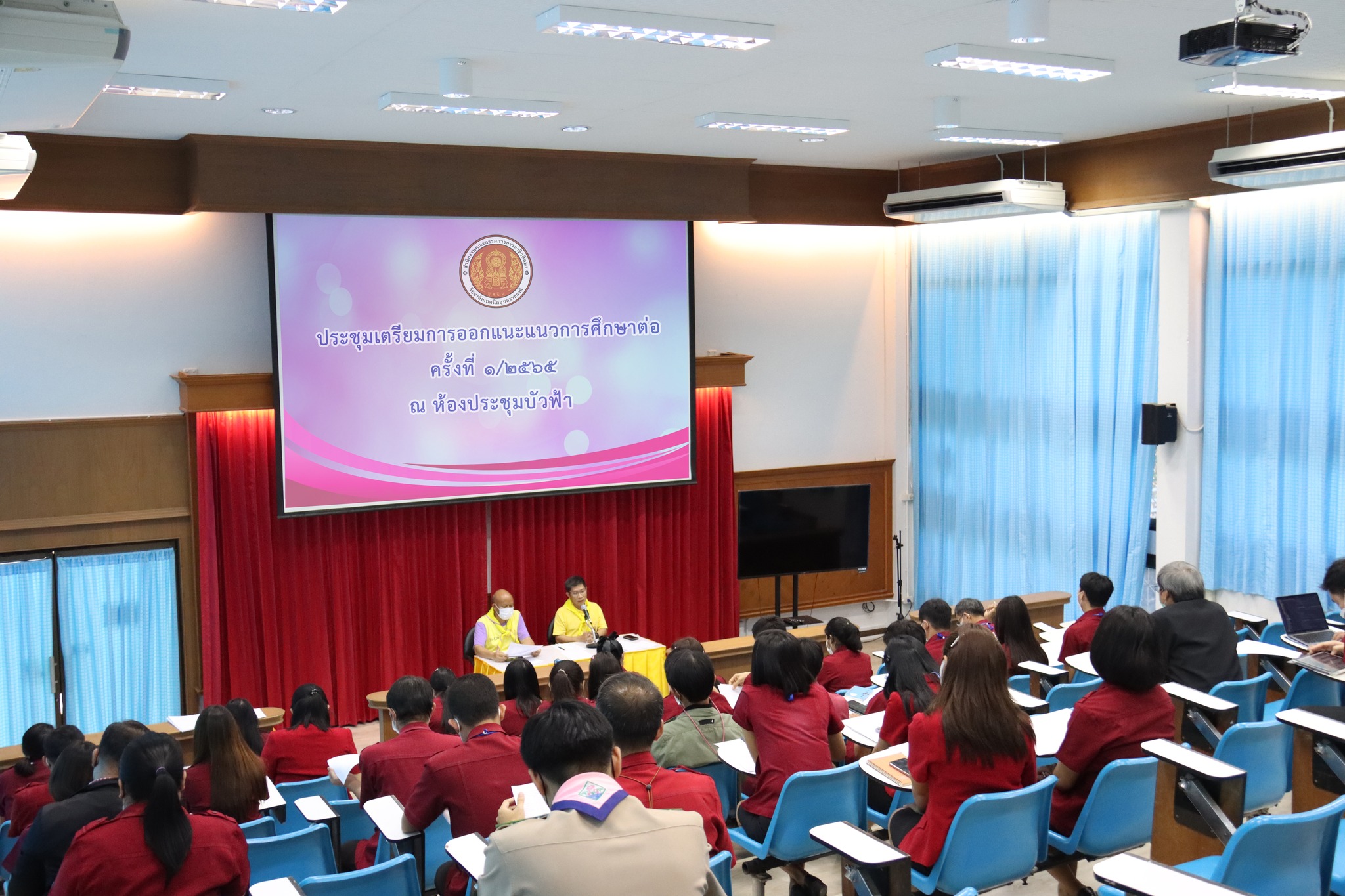 วันที่ ๒๓ พฤศจิกายน ๒๕๖๕ เวลา ๑๔.๐๐ น. นายธาตรี พิบูลมณฑา ผู้อำนวยการวิทยาลัยเทคนิคอุบลราชธานี ให้เกียรติเป็นประธานในการประชุมเตรียมการออกแนะแนวศึกษาต่อ ครั้งที่ ๑/๒๕๖๕ ณ ห้องประชุมบัวฟ้า วิทยาลัยเทคนิคอุบลราชธานี โดยมี นายไวพจน์ ศรีธัญ รองผู้อำนวยการฝ่ายพัฒนากิจการนักเรียนนักศึกษา นางสาวพิมพ์อธิชา จันทร์สุตะ หัวหน้างานแนะแนวอาชีพและการจัดหางาน นายสวัสดิ์ ธงไชย หัวหน้างานทะเบียน พร้อมด้วยหัวหน้าแผนกวิชา คณะครู และบุคลากรทางการศึกษาที่เกี่ยวข้อง เข้าร่วมการประชุมอย่างพร้อมเพรียง ทั้งนี้เพื่อให้คณะกรรมการดำเนินโครงการออกแนะแนวการศึกษาต่อได้เข้าใจถึงแนวทางการปฏิบัติต่อไป