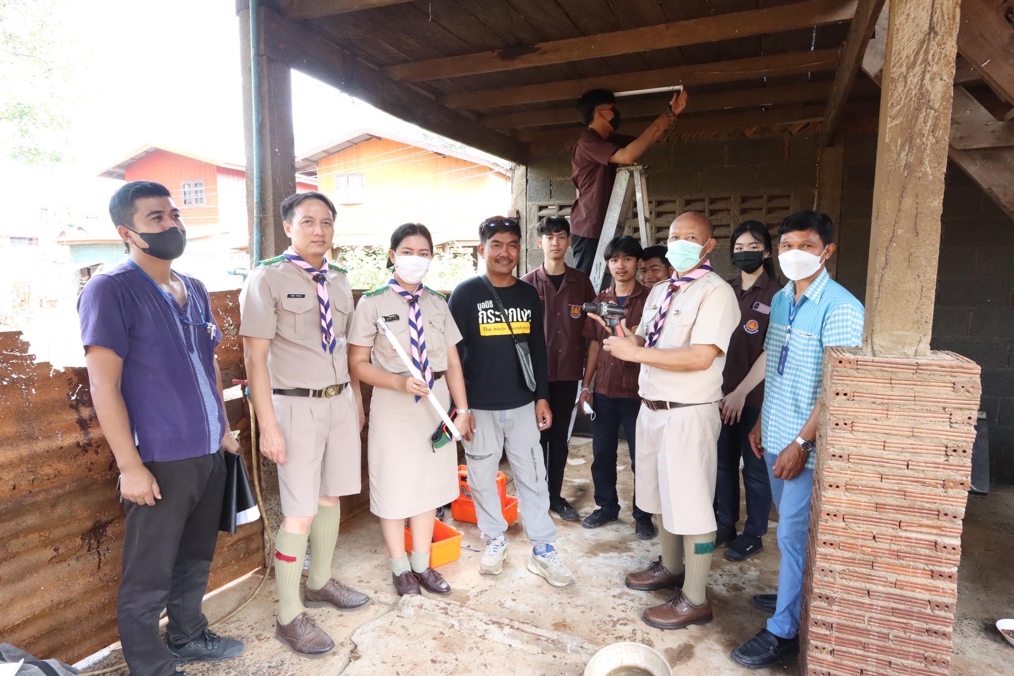 วันที่ ๒๕ พฤศจิกายน ๒๕๖๕ เวลา ๑๑.๐๐ น. นายธาตรีพิบูลมณฑา ผู้อำนวยการวิทยาลัยเทคนิคอุบลราชธานี ได้มอบหมายให้ นายไวพจน์ ศรีธัญ รองผู้อำนวยการฝ่ายพัฒนากิจการนักเรียนนักศึกษา ว่าที่ร้อยตรีขวัญชัย เนืองเนตร หัวหน้าครูที่ปรึกษาลูกเสือวิสามัญ และนางสาวสิริลักษณ์ รักสกุล ผู้ช่วยครูที่ปรึกษาลูกเสือวิสามัญ วิทยาลัยเทคนิคอุบลราชธานี เข้าตรวจเยี่ยมให้กำลังใจคณะครู และนักเรียน นักศึกษา ที่ลงพื้นที่ให้การช่วยเหลือ ติดตั้งระบบไฟฟ้าในที่พักอาศัย บ้านเรือนประชาชน ที่ประสบภัยน้ำท่วม ณ ชุมชนท่ากอไผ่ ตำบลวารินชำราบ อำเภอวารินชำราบ จังหวัดอุบลราชธานี โดยมี นายภาสกร ศรีขาว หัวหน้าแผนกวิชาช่างไฟฟ้ากำลัง นายเจริญพร เจตอธิการ นายโชคชัย แสนโท นายศักดิ์สิทธิ์ จันทแสง ครูแผนกวิชาช่างไฟฟ้ากำลัง นำนักเรียน นักศึกษา แผนกวิชาช่างไฟฟ้ากำลัง ลงพื้นที่ปฏิบัติงานในครั้งนี้ ซึ่งได้รับการสนับสนุนงบประมาณจากมูลนิธิกระจกเงา ทั้งนี้เพื่อช่วยเหลือประชาชนที่ได้รับผลกระทบจากอุทกภัยในพื้นที่จังหวัดอุบลราชธานีต่อไป