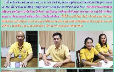 FacebookTwitterLineวันที่ 3 พฤศจิกายน 2568 เวลา 07.30 น. นายธาตรี พิบูลมณฑา ผู้อำนวยการวิทยาลัยเทคนิคอุบลราชธานี ให้เกียรติกล่าวให้โอวาทแก่นักเรียน นักศึกษา โดยได้เน้นย้ำในเรื่องการลงทะเบียนเรียน การช่วยกันประหยัดไฟฟ้า ปิดไฟเมื่อไม่ใช้งานแล้ว และการช่วยกันรักษาความสะอาดในเขตพื้นวิทยา (เพิ่มเติม…)