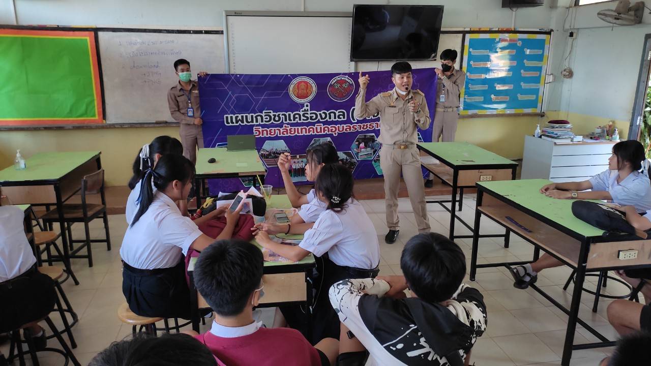 วันที่ ๒๘ พฤศจิกายน ๒๕๖๕ ที่ผ่านมา นายธาตรี พิบูลมณฑา ผู้อำนวยการวิทยาลัยเทคนิคอุบลราชธานี ได้มอบหมายให้คณะครู แผนกวิชาเครื่องกล แผนกวิชาช่างก่อสร้าง/สถาปัตยกรรม แผนกวิชาเทคโนโลยีคอมพิวเตอร์ แผนกวิชาเทคโนโลยีสารสนเทศ แผนกวิชาเทคโนโลยีโทรคมนาคม และแผนกวิชาช่างอากาศยาน ออกแนะแนวศึกษาต่อ ประจำปีการศึกษา ๒๕๖๖ ให้แก่นักเรียนระดับมัธยมศึกษาชั้นปีที่ ๓ และระดับมัธยมศึกษาชั้นปีที่ ๖ ณ โรงเรียนเหล่างามพิทยาคม อำเภอโพธิ์ไทร จังหวัดอุบลราชธานี ทั้งนี้เพื่อให้เข้าใจในขั้นตอนการสมัครเข้าศึกษาต่อในรอบโควตา และรอบทั่วไป ประจำปีการศึกษา ๒๕๖๖ ต่อไป