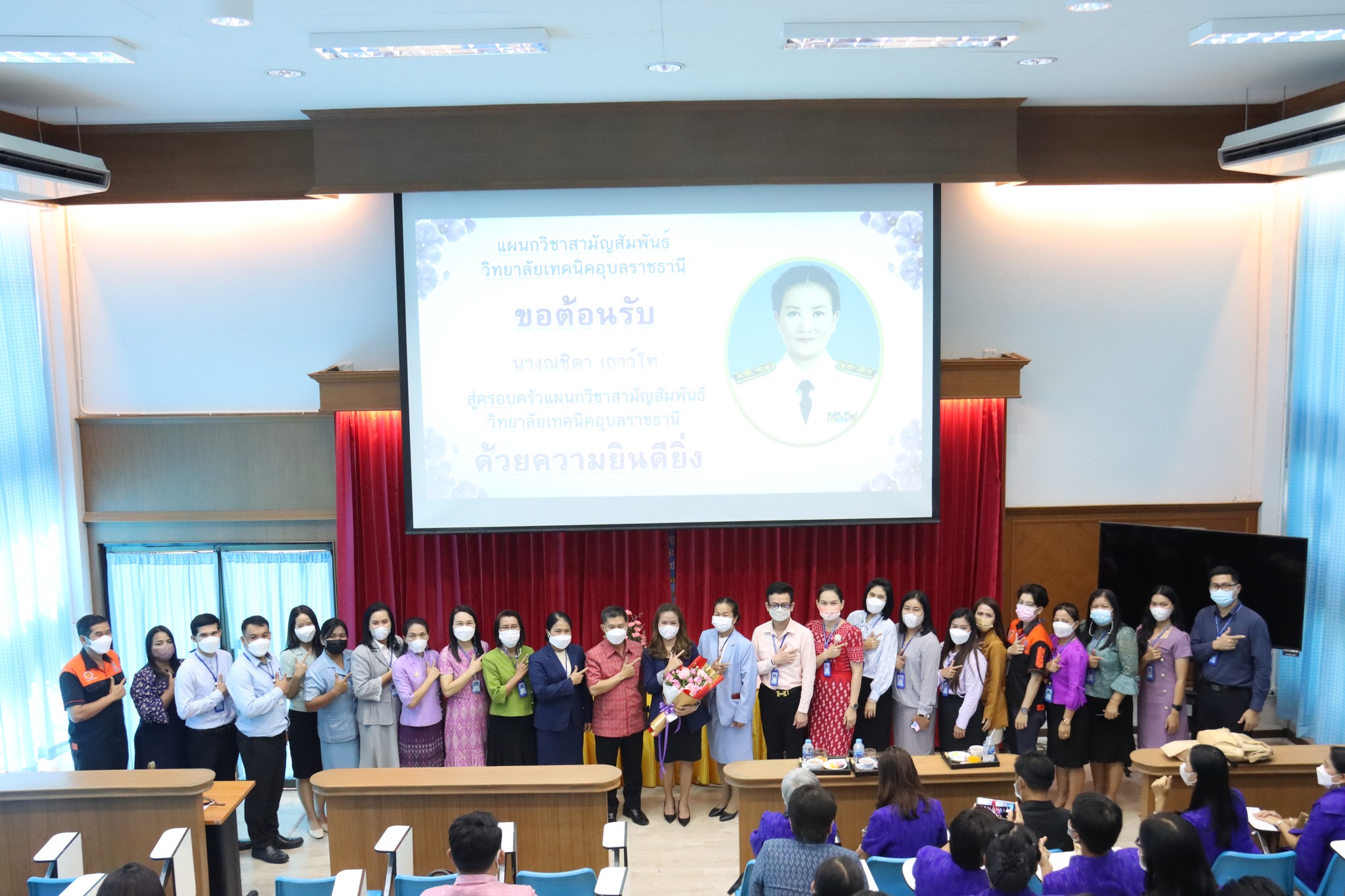 วันที่ ๘ ธันวาคม ๒๕๖๕ เวลา ๑๐.๐๐ น. นายธาตรี พิบูลมณฑา ผู้อำนวยการวิทยาลัยเทคนิคอุบลราชธานี ให้เกียรติกล่าวต้อนรับ นางลฎาภาแสวงทรัพย์ ผู้อำนวยการวิทยาลัยอาชีวศึกษาอุบลราชธานี และคณะผู้บริหาร ครู ที่มาร่วมแสดงความยินดี เนื่องในโอกาสที่ นางณชิตา เถาว์โท ครูหมวดวิชาภาษาไทย แผนกวิชาสามัญสัมพันธ์ วิทยาลัยอาชีวศึกษาอุบลราชธานี ได้ย้ายมาดำรงตำแหน่งครู แผนกวิชาสามัญสัมพันธ์ วิทยาลัยเทคนิคอุบลราชธานี โดยมี นางสาวสายฝน สาระผล รองผู้อำนวยการฝ่ายบริหารทรัพยากร นางราตรี สะดีวงศ์ รองผู้อำนวยการฝ่ายแผนงานและความร่วมมือ นายอิทธิวัฒน์ ไทยแท้ หัวหน้าแผนกวิชาสามัญสัมพันธ์ พร้อมด้วยคณะครู แผนกวิชาสามัญสัมพันธ์ วิทยาลัยเทคนิคอุบลราชธานี ร่วมให้การต้อนรับอย่างอบอุ่น ณ ห้องประชุมบัวฟ้า