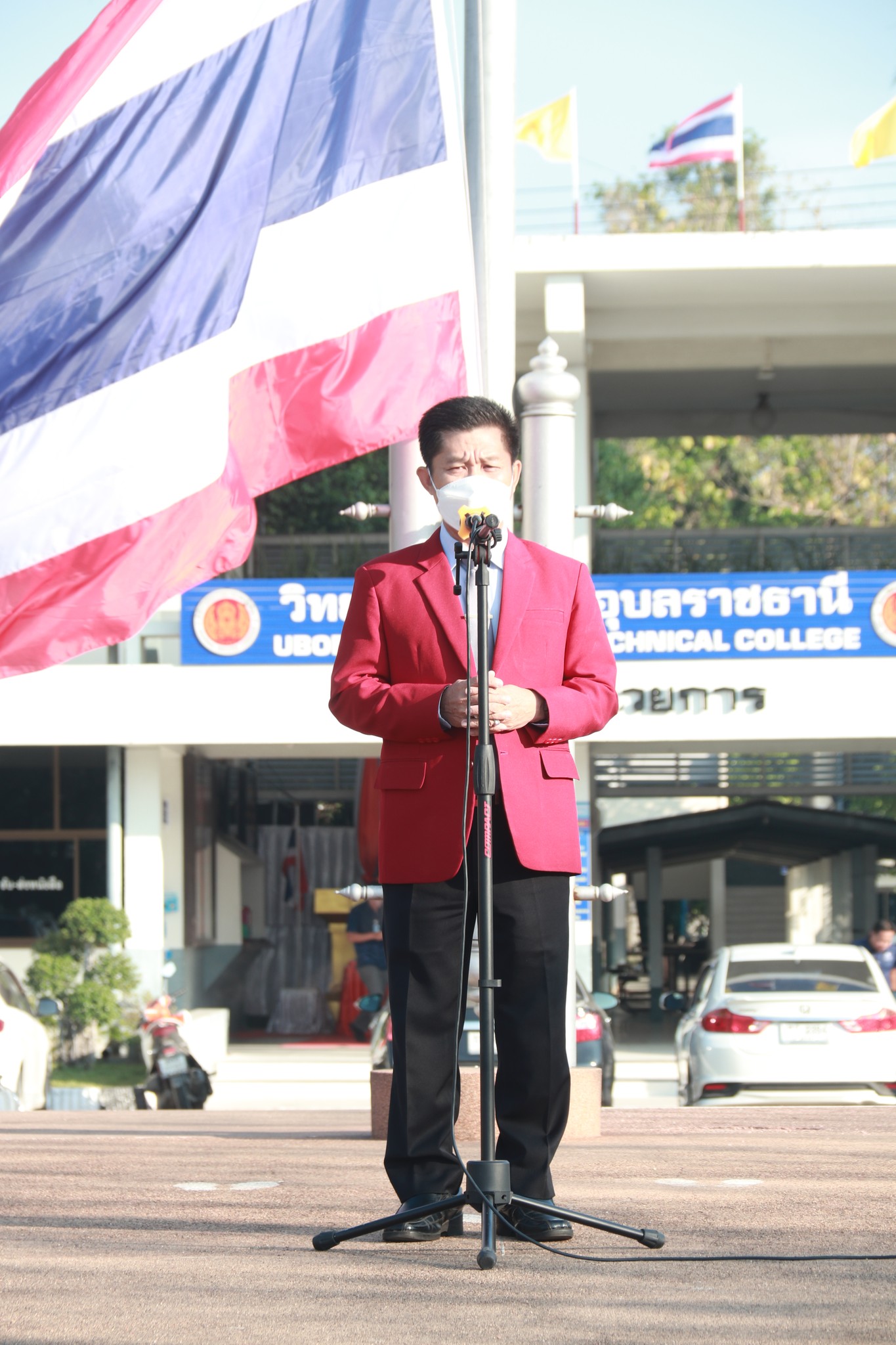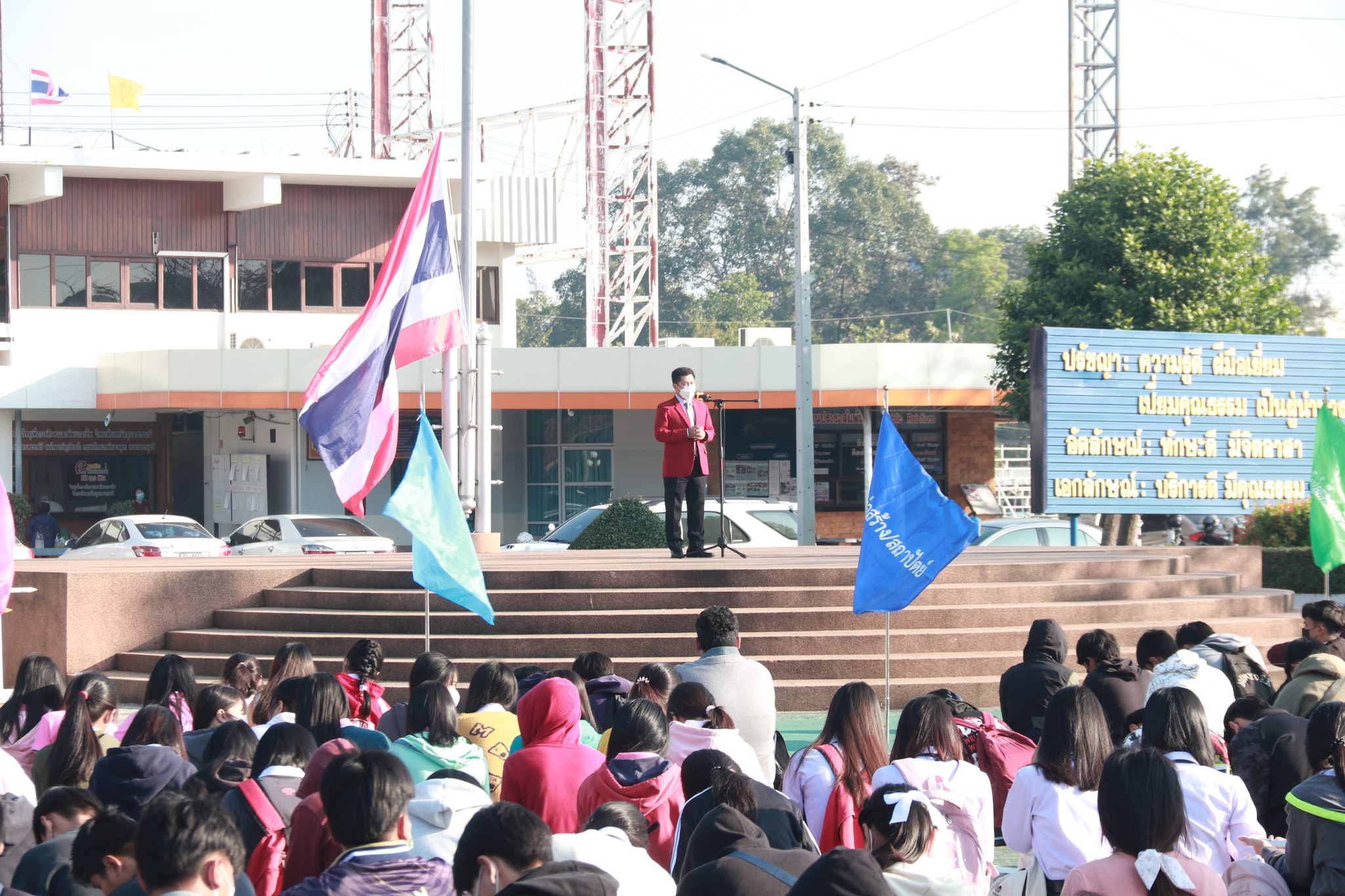 วันที่ ๒๓ ธันวาคม ๒๕๖๕ เวลา ๐๗:๓๐ น. นายธาตรี พิบูลมณฑา ผู้อำนวยการวิทยาลัยเทคนิคอุบลราชธานี ให้เกียรติขึ้นให้โอวาทแก่นักเรียน นักศึกษา ณ ลานกิจกรรมหน้าเสาธง โดยมี นางสาวสายฝน สาระผล รองผู้อำนวยการฝ่ายบริหารทรัพยากร นางราตรี สะดีวงศ์ รองผู้อำนวยการฝ่ายแผนงานและความร่วมมือ นำคณะครู บุคลากรทางการศึกษา และนักเรียน นักศึกษา เข้าร่วมกิจกรรมอย่างพร้อมเพรียง อีกทั้งยังได้เน้นย้ำเรื่องการให้ความสำคัญเกี่ยวกับความรับผิดชอบต่อหน้าที่ของนักเรียน นักศึกษา ปัญหาที่จะเกิดขึ้นในช่วงกิจกรรมกีฬาสี การเคารพในกฎกติกา และการรู้แพ้ รู้ชนะ รู้อภัย นอกจากนี้มีคณะครู หมวดวิชาภาษาต่างประเทศ แผนกวิชาสามัญสัมพันธ์ ได้แนะนำตัวแทนนักเรียน นักศึกษา ที่เข้าร่วมการประกวด Mr. & Miss Christmas 2022 และเชิญชวนให้ร่วมโหวตและเป็นกำลังใจให้ผู้เข้าประกวดอีกด้วย