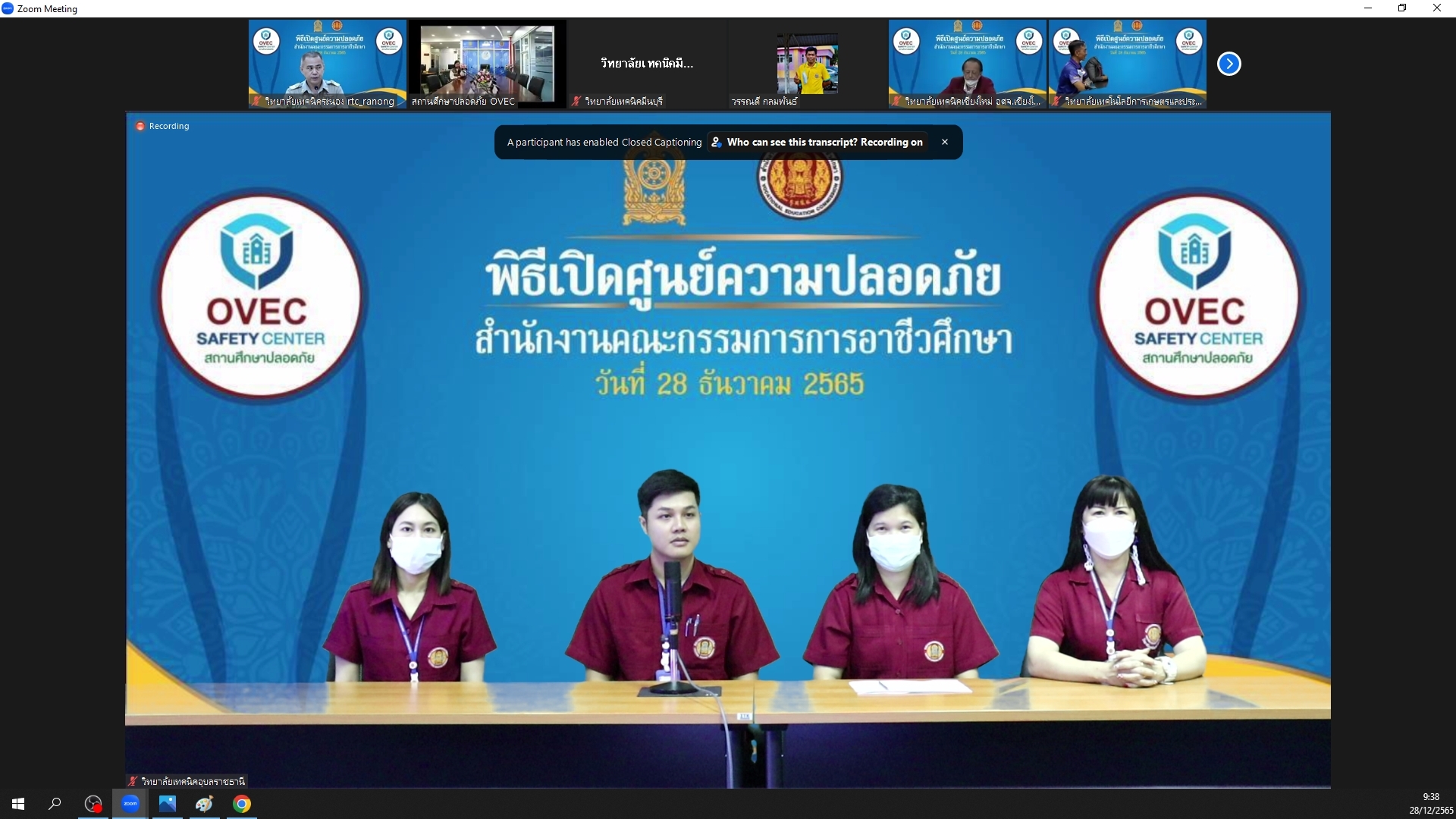 วันที่ ๒๘ ธันวาคม ๒๕๖๕ เวลา ๐๘.๓๐ น. นายธาตรี พิบูลมณฑา ผู้อำนวยการวิทยาลัยเทคนิคอุบลราชธานี ประธานกรรมการอาชีวศึกษาจังหวัดอุบลราชธานี ให้เกียรติเข้าร่วมพิธีเปิดศูนย์อาชีวะ ช่วยประชาชน (Fix it Center) เทศกาลปีใหม่ พ.ศ. ๒๕๖๖ และกิจกรรมขบวนคาราวานอาชีวศึกษา ช่วยประชาชน (Fix it Center) เทศกาลปีใหม่ พ.ศ.๒๕๖๖ และพิธีเปิดศูนย์ความปลอดภัย สำนักงานคณะกรรมการการอาชีวศึกษา ณ กระทรวงศึกษาธิการ กรุงเทพมหานคร ในการนี้ได้รับเกียรติจาก นางสาวตรีนุช เทียนทอง รัฐมนตรีว่าการกระทรวงศึกษาธิการ เป็นประธานในพิธี โดยมี ว่าที่ร้อยตรี ธนุ วงษ์จินดา เลขาธิการคณะกรรมการการอาชีวศึกษา ให้เกียรติเข้าร่วมพิธีในครั้งนี้ นอกจากนี้มีี นายสรรพสิทธิ์ ละออเอี่ยม หัวหน้างานปกครอง นางสาวธิดารัตน์ บุญดล หัวหน้างานครูที่ปรึกษา และบุคลากรทางการศึกษาที่เกี่ยวข้อง เข้าร่วมพิธีเปิดอย่างพร้อมเพรียง ผ่านระบบ Video Conference ณ ห้องศูนย์พัฒนาสื่อดิจิทัล DMDC วิทยาลัยเทคนิคอุบลราชธานี ทั้งนี้เพื่อให้บริการตรวจสภาพรถยนต์ รถจักรยานยนต์ “ฟรี” รวมทั้งบริการเครื่องดื่ม ผ้าเย็น แก่ประชาชนผู้เดินทางในช่วงเทศกาลปีใหม่ ตามเส้นทางถนนสายหลักและสายรองทั่วประเทศ