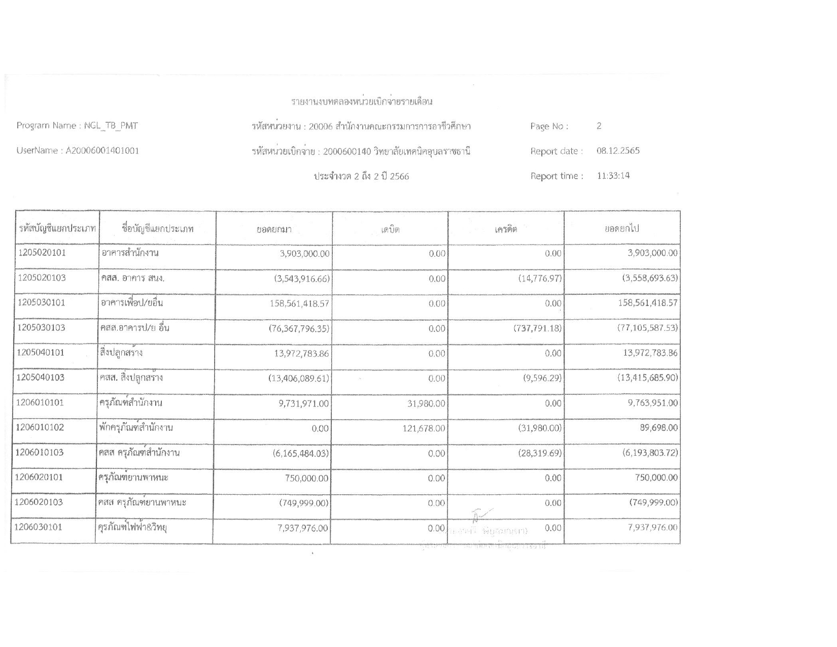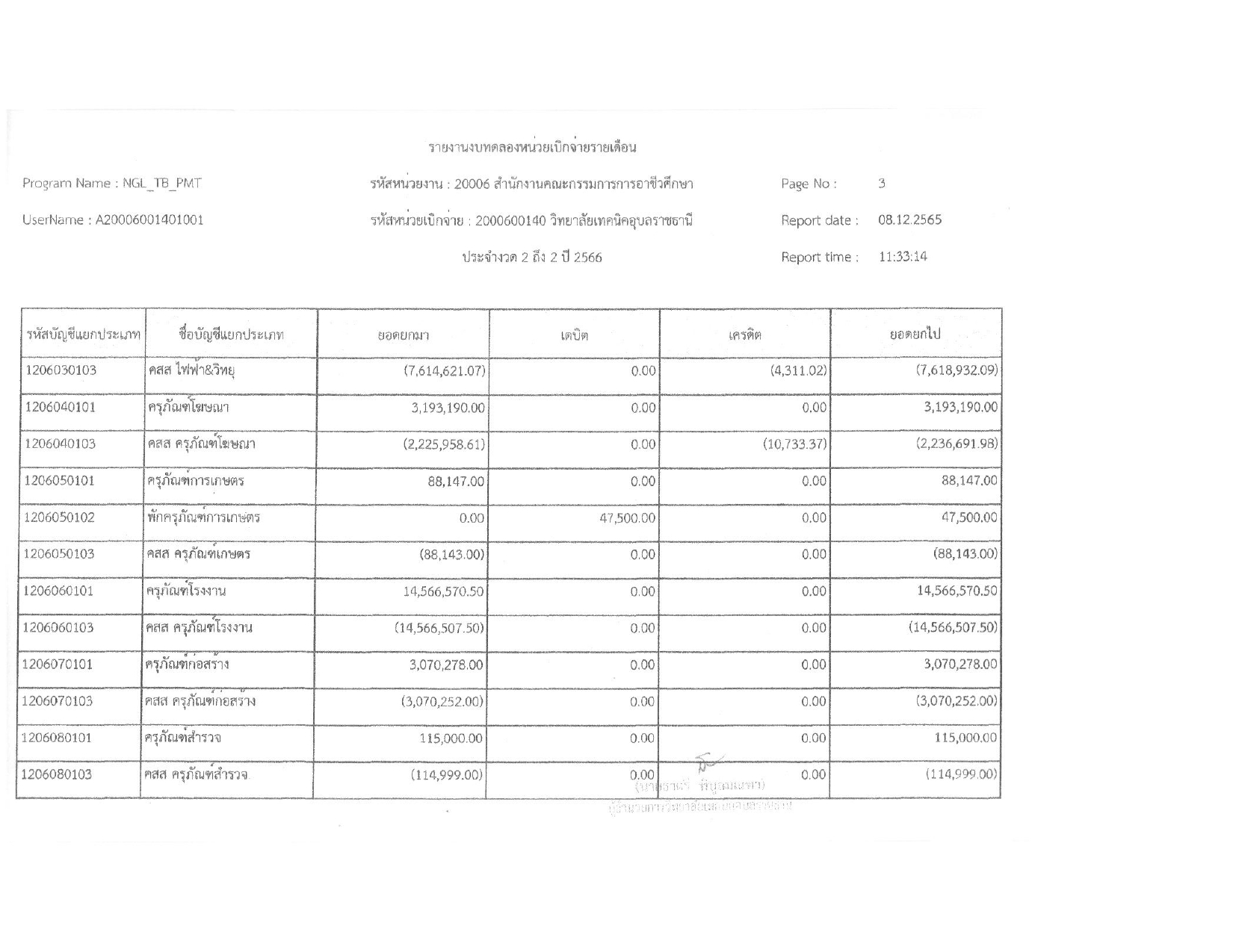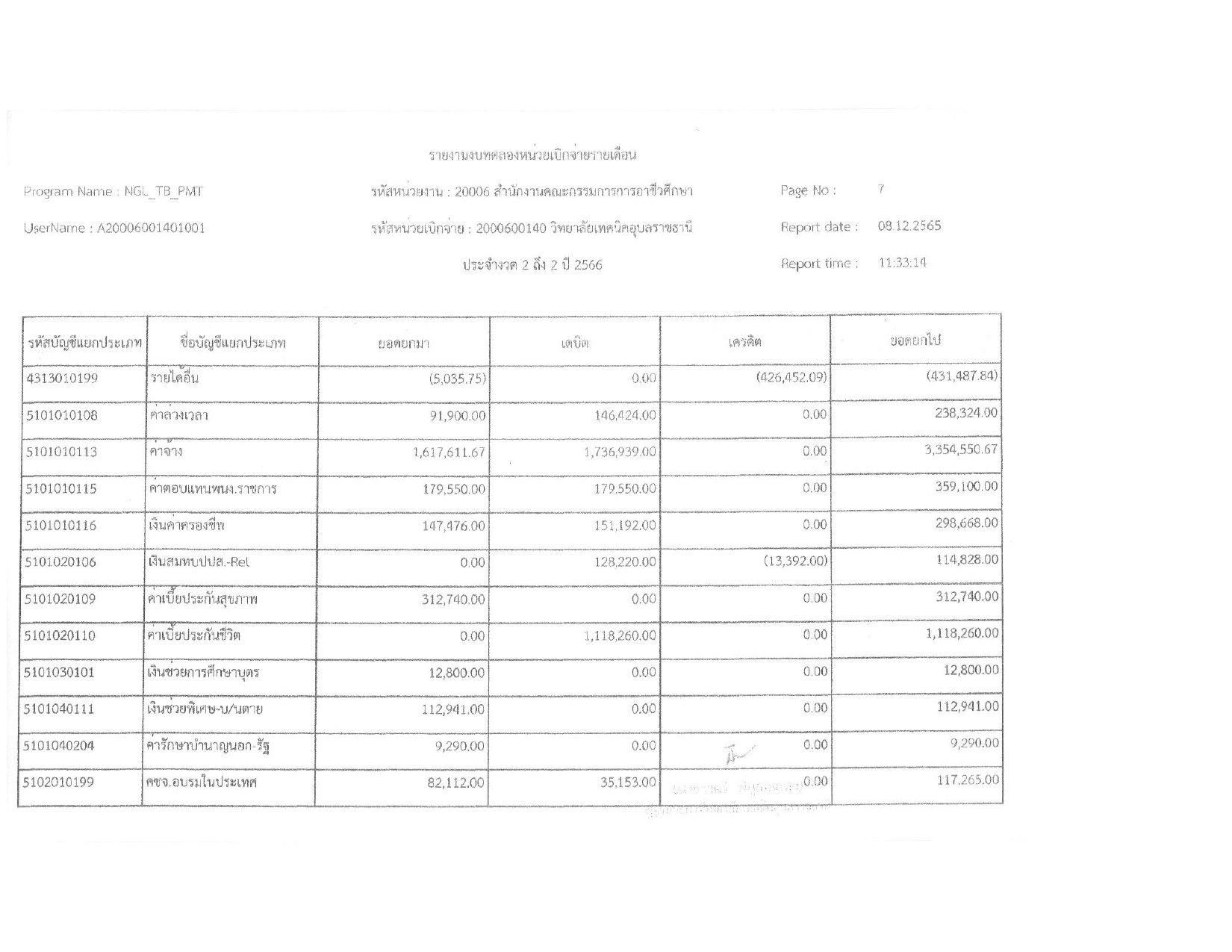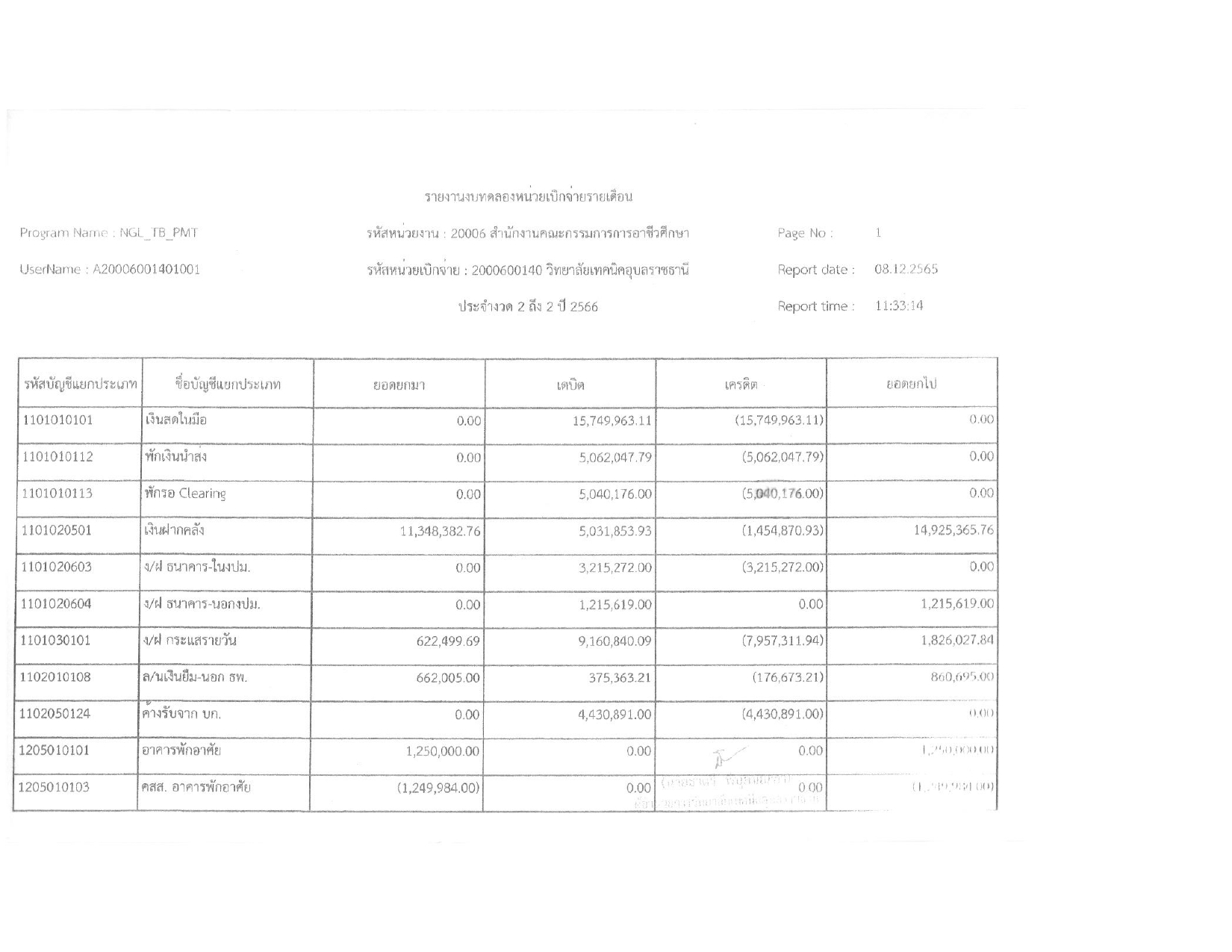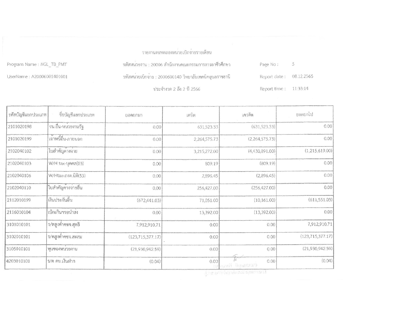 รายงานงบทดลองประจำเดือน พฤศจิกายน 2565